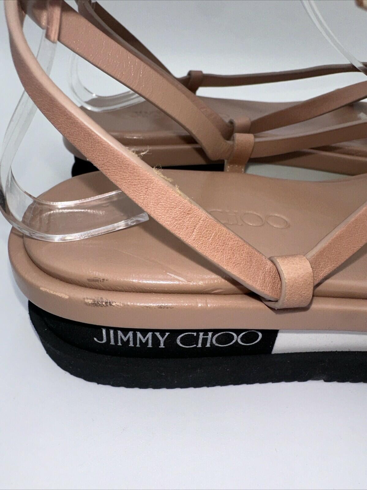 Jimmy Choo Women’s Brown Pine Flat Sandals Ankle Strap Size 37.5 - Very Good