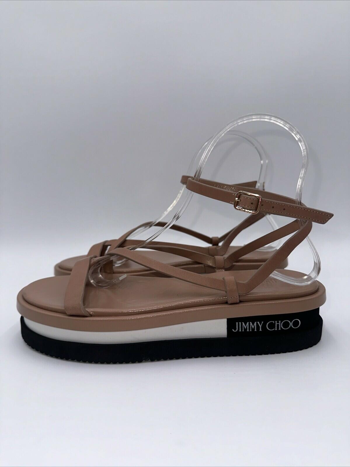 Elevate your shoe game with these stylish Jimmy Choo Women's Brown Pine Flat Sandals. Crafted from high-quality leather, these sandals feature an open toe design and ankle strap with buckle closure for a secure fit. The low heel style makes them perfect for all-day wear while the solid pattern and logo accents add a touch of sophistication.These sandals are a must-have for any fashion-forward woman and can be dressed up or down to suit any occasion. Whether you're going for a gladiator look or simply running errands, these Jimmy Choo sandals will complete any outfit. Add them to your shoe collection today!