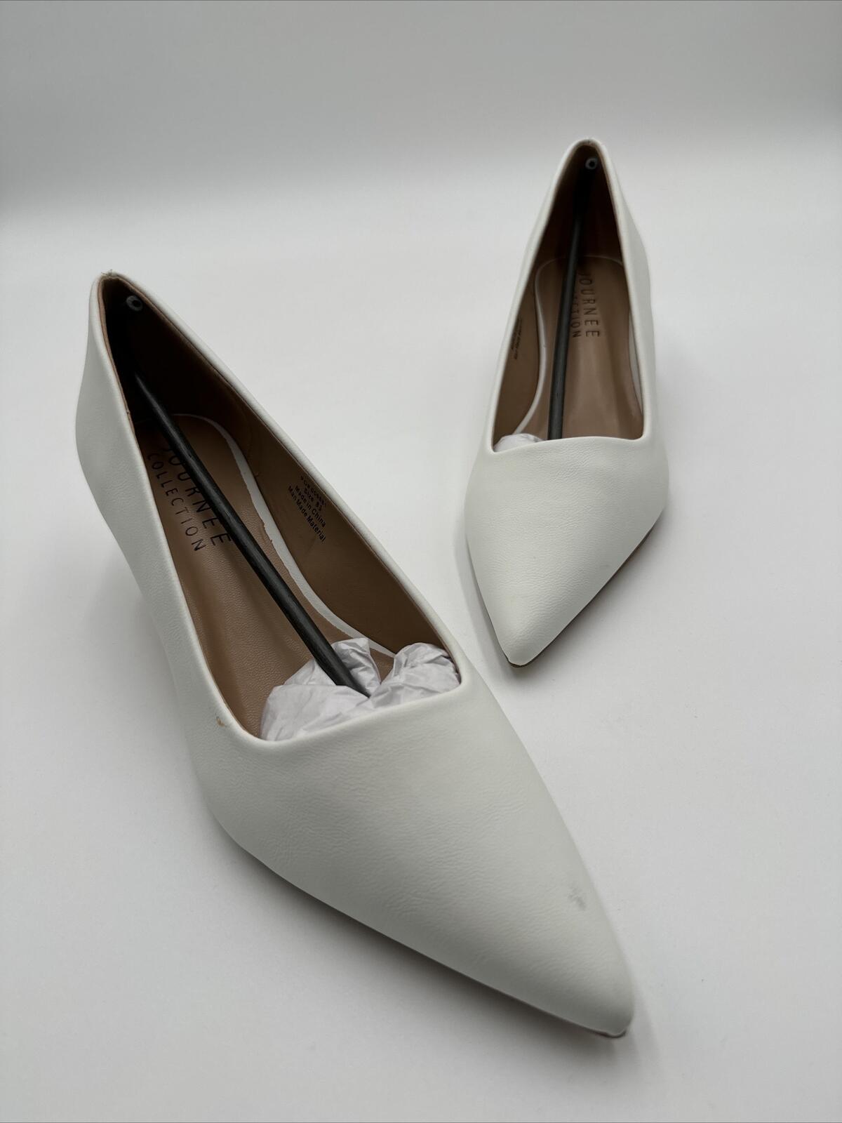 Journee Collection CELICA White Faux Leather Pointed Toe Heels Size 8.5 - Very Good - Ufashion