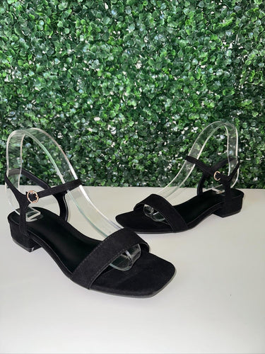 Elevate your wardrobe with these Journee Collection Women's Beyla Heels. These strappy open-toe heels feature a square-shaped design that will add a touch of sophistication to any outfit. The sleek black suede upper material with a 7M size ensures a perfect fit for your feet.