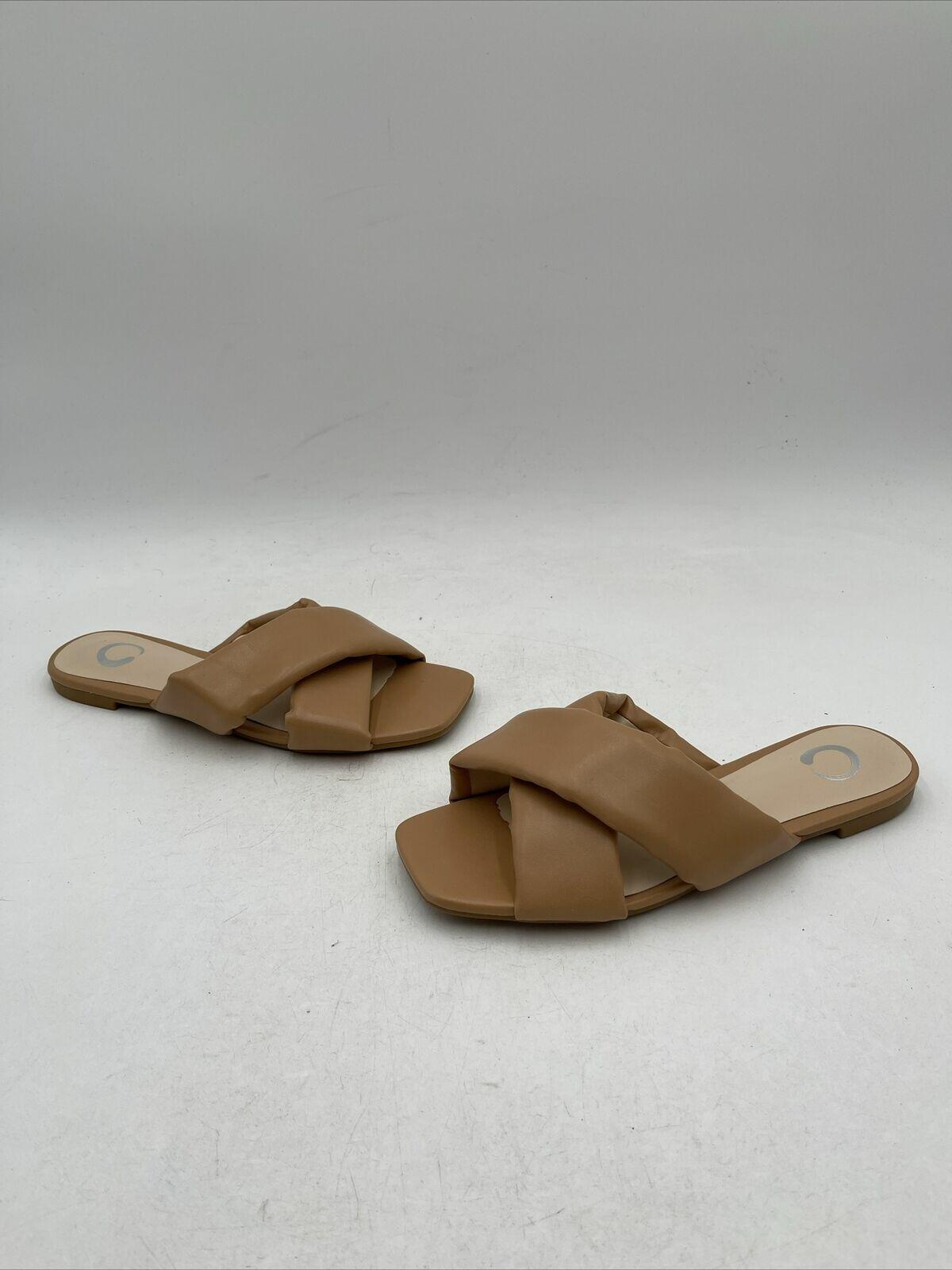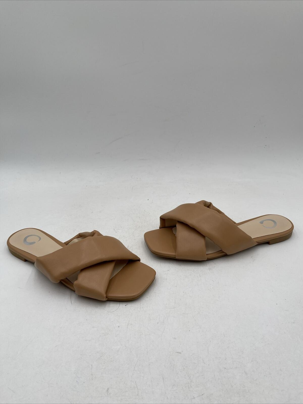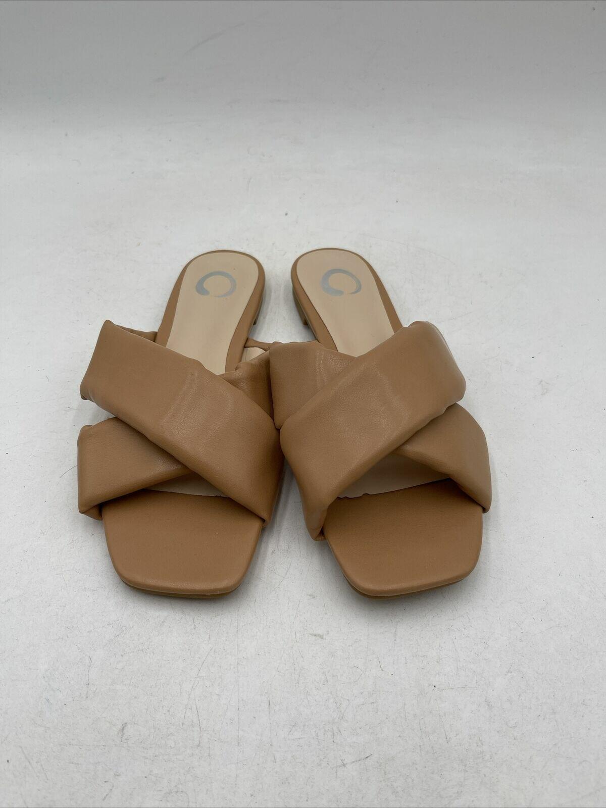 Journee Collection Women's Carlotta Slide Sandals Tan Size 6.5 - Very Good