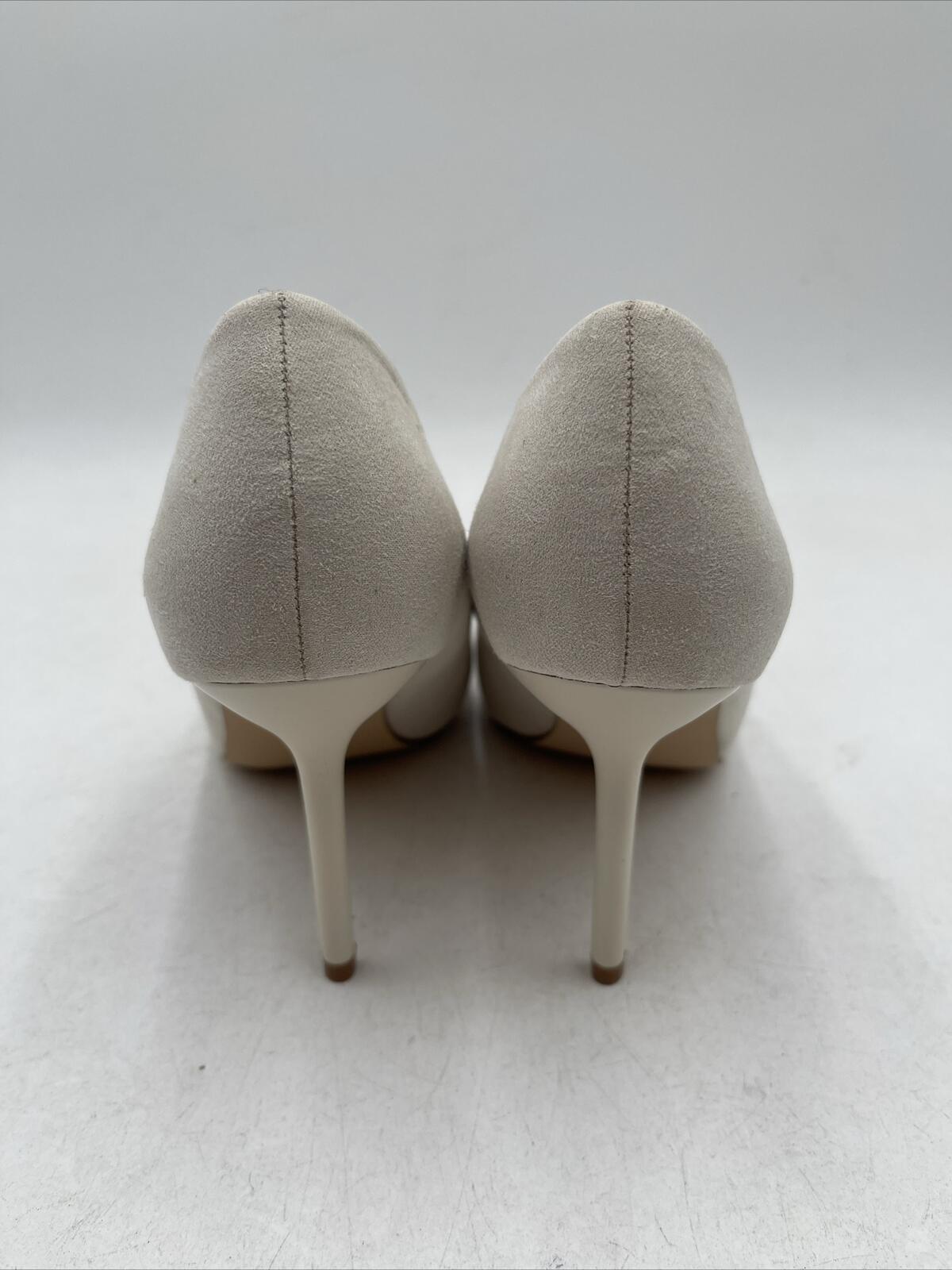 Journee Collection Women's Marcie Pointed Toe Stiletto Heels are a stylish and comfortable choice for a night out. The beige faux suede upper material is accented with a glittery bow and rhinestones, adding a touch of glamour to the solid pattern. The slip-on closure makes them easy to wear, while the high stiletto heel provides a flattering lift. These heels are available in size 9 and are perfect for any woman looking to add some sparkle to her outfit.