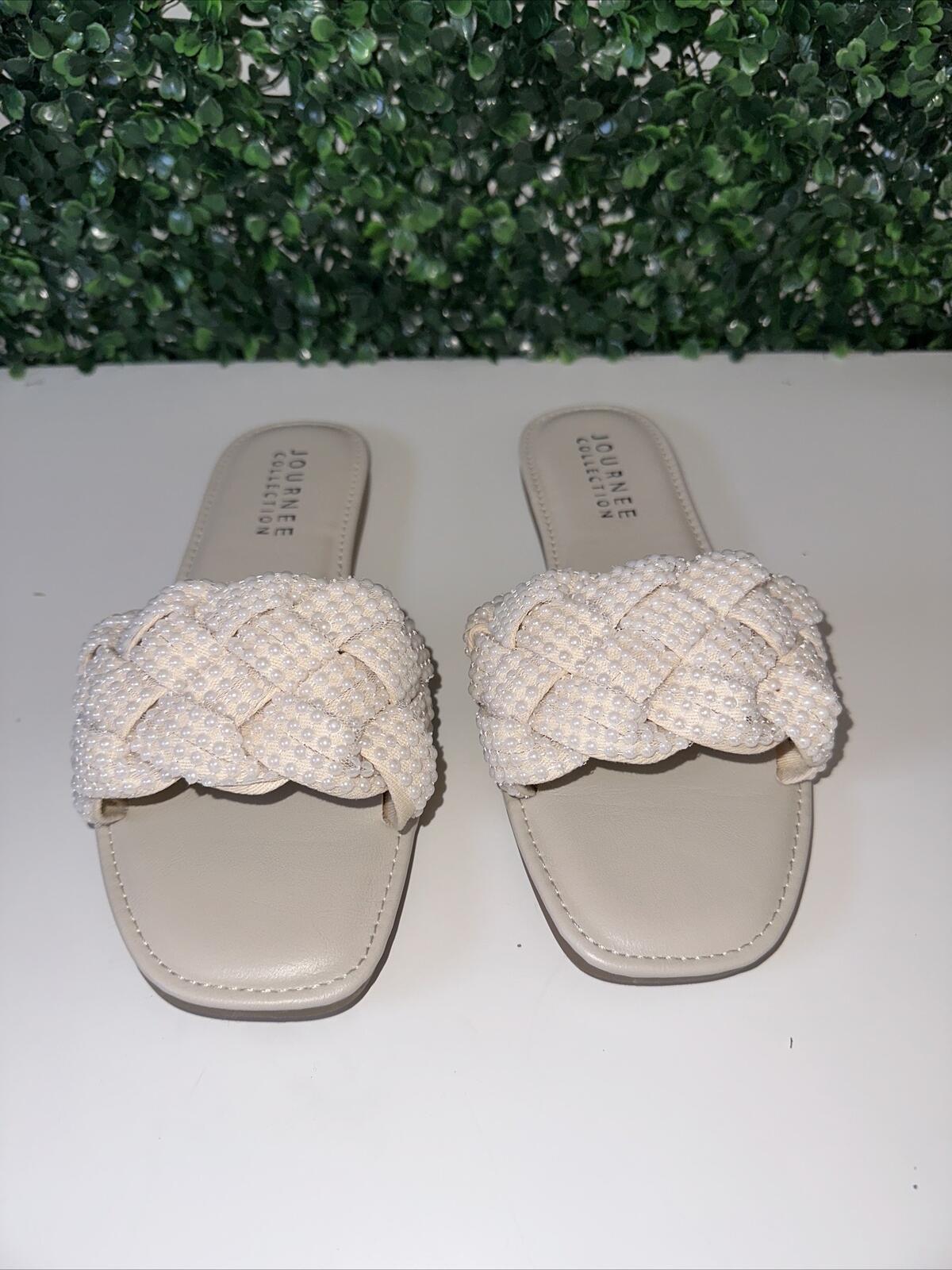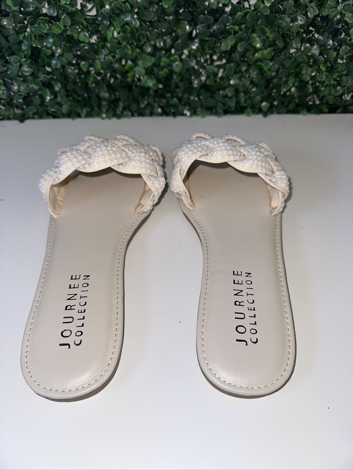 Step out in style with these Journee Collection Railley Sandals, perfect for any occasion. These flip flops feature a comfortable Tru Comfort Foam insole and come in a beautiful ivory color. The upper material is made of fabric and the shoe also features a foam insole for added comfort.With a brand name you can trust and a size of 10 M, these sandals are perfect for any woman looking for a stylish and comfortable addition to their wardrobe. Don't miss out on this opportunity to add these Journee Collection flip flops to your shoe collection!
