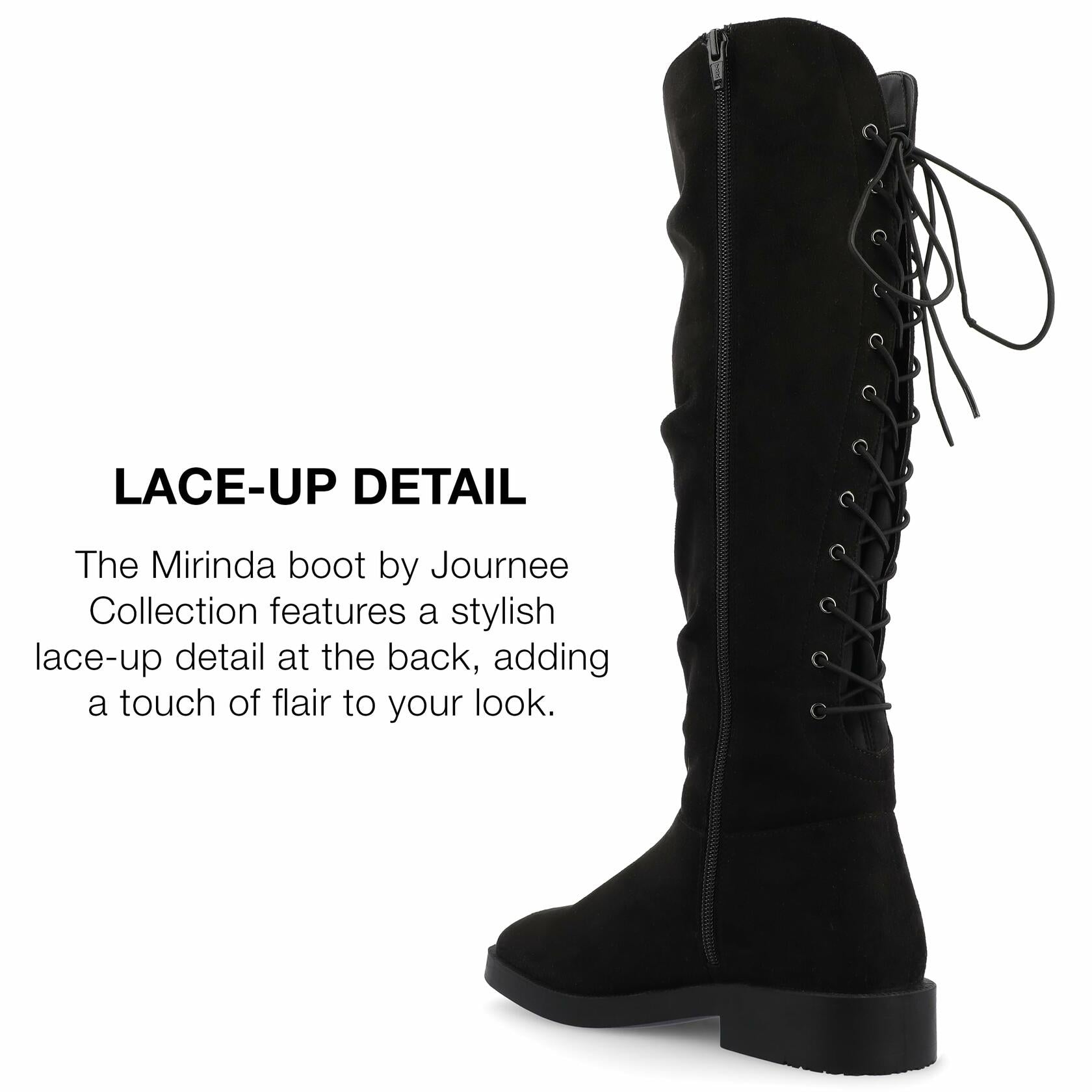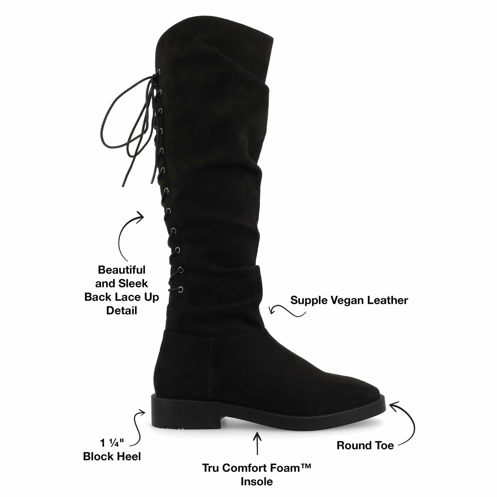 • MIRINDA KNEE HIGH BOOT: Introducing the Mirinda by Journee Collection, the boots have been created for both style and comfort. Vegan leather gives them a sleek look, while the stretch and back lace Up design and inside zip entry ensure a secure fit. These boots are ideal for any occasion with a trendy block heel and a cozy round toe. The 4 mm Tru Comfort Foam insole makes them a delight to wear all day.