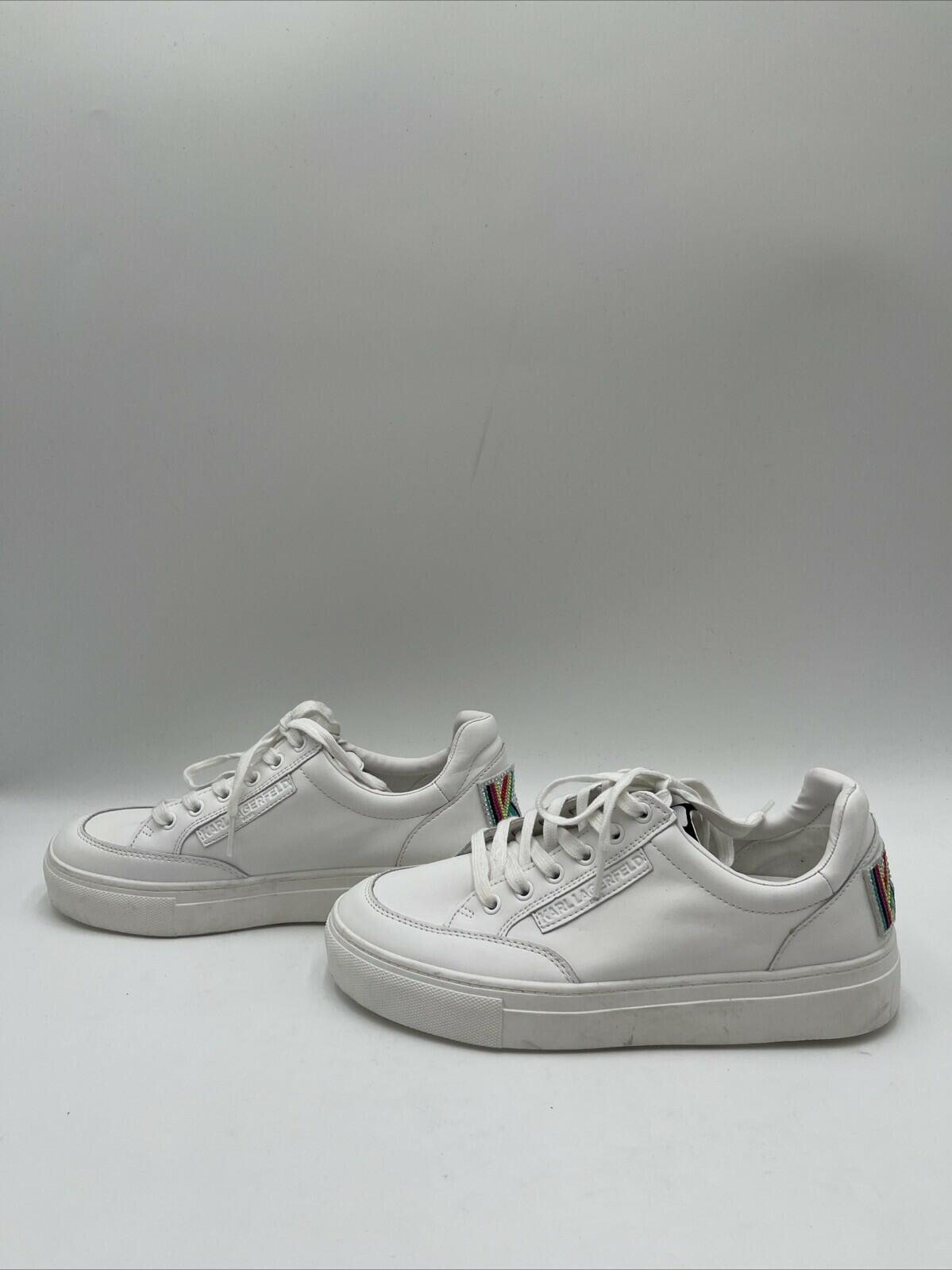 These sneakers are adorned with an embroidered patch of the iconic Karl Lagerfeld Paris Calico design, adding a touch of elegance to your outfit. The shoes are available in US Shoe Size 7 and EU Shoe Size 37.5, with a medium width. Perfect for any casual occasion, these sneakers are sure to add a touch of style to your wardrobe.