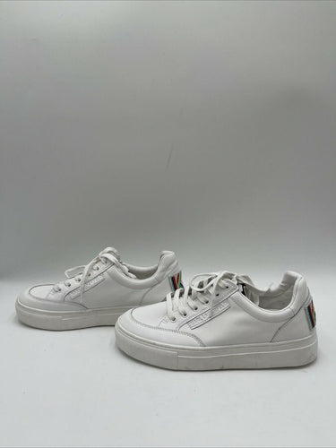 Karl Lagerfeld Paris Calico Patch Embroidered Mismatched Sneakers White 7M/37.5 - Very Good