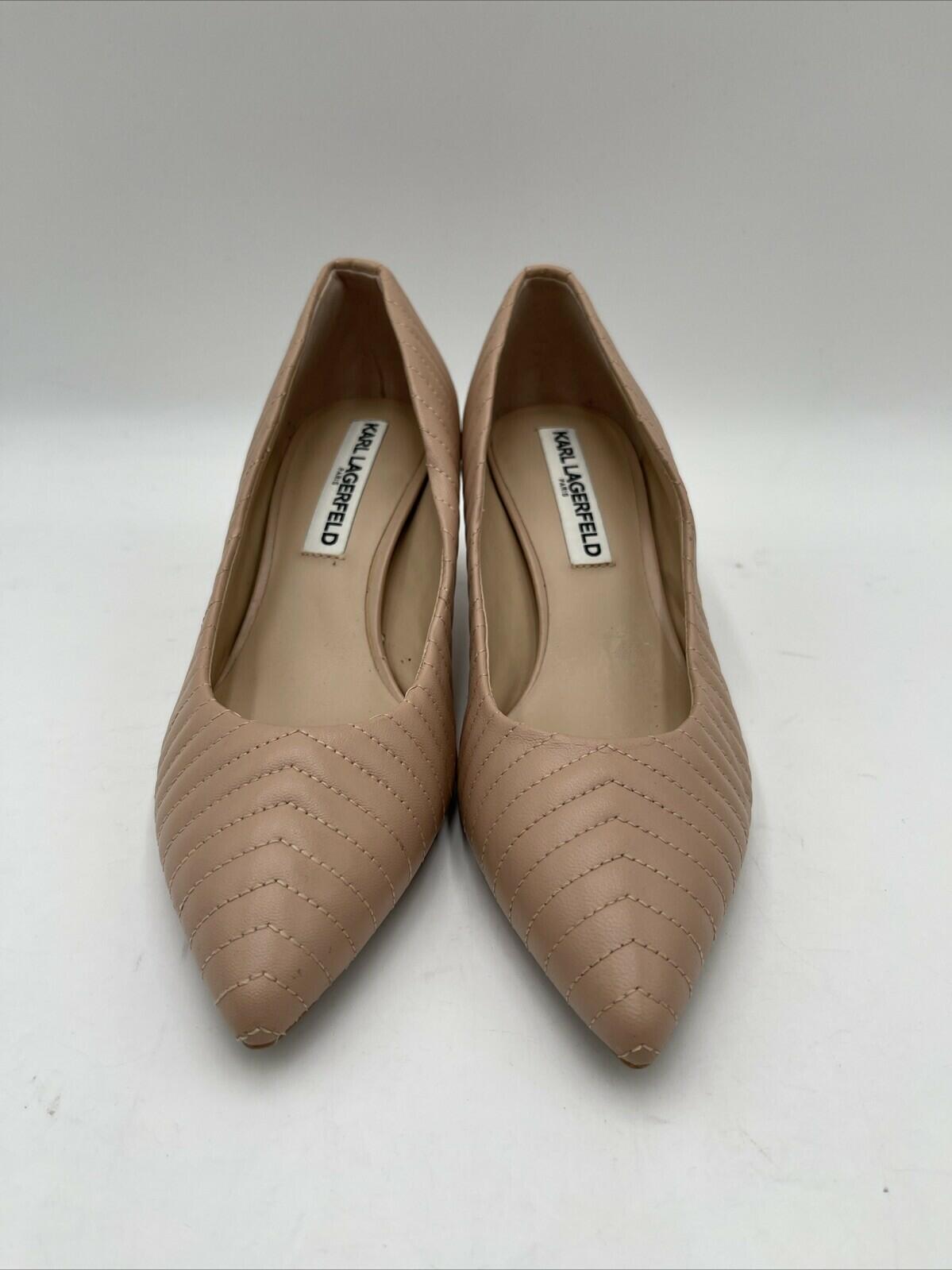 Karl Lagerfeld ROSETTE Beige Leather Pointy Toe Slip On High Heels Women’s 5.5 M - Very Good