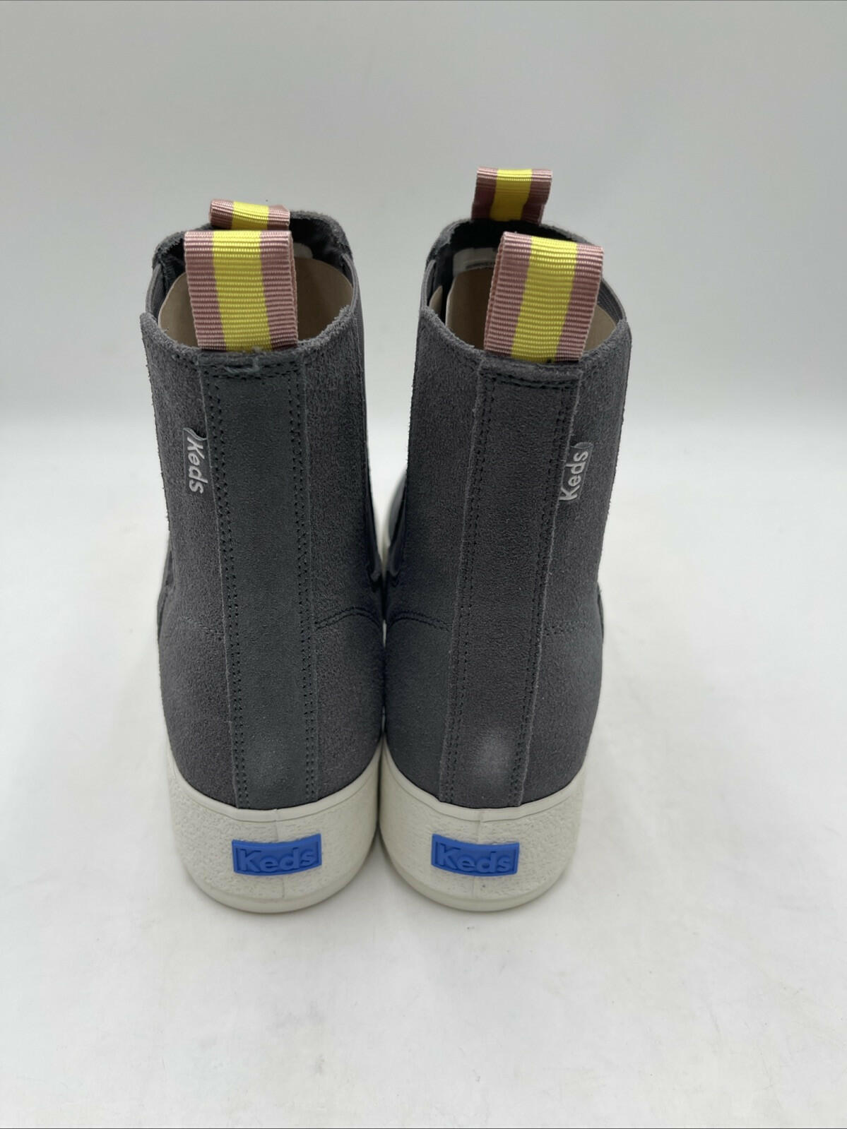 -Bottoms are barely wornThe Keds Women's Platform Chelsea Lug Boots in gray suede offer a stylish and trendy option for women in size 8. These boots feature a platform sole for added height and a lug outsole for traction. The Chelsea design provides a sleek and modern look, making them versatile for various outfits and occasions. Perfect for those looking for a fashionable and comfortable boot option, these Keds boots are sure to make a statement.