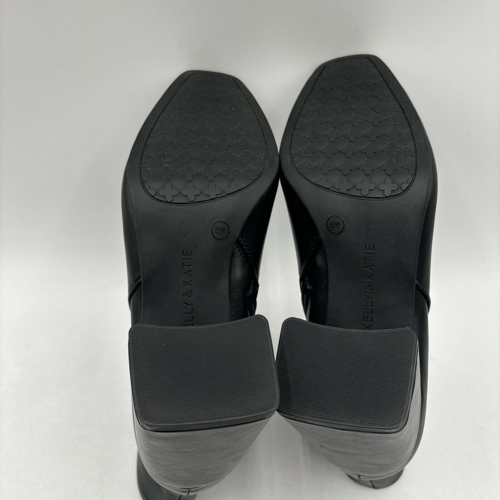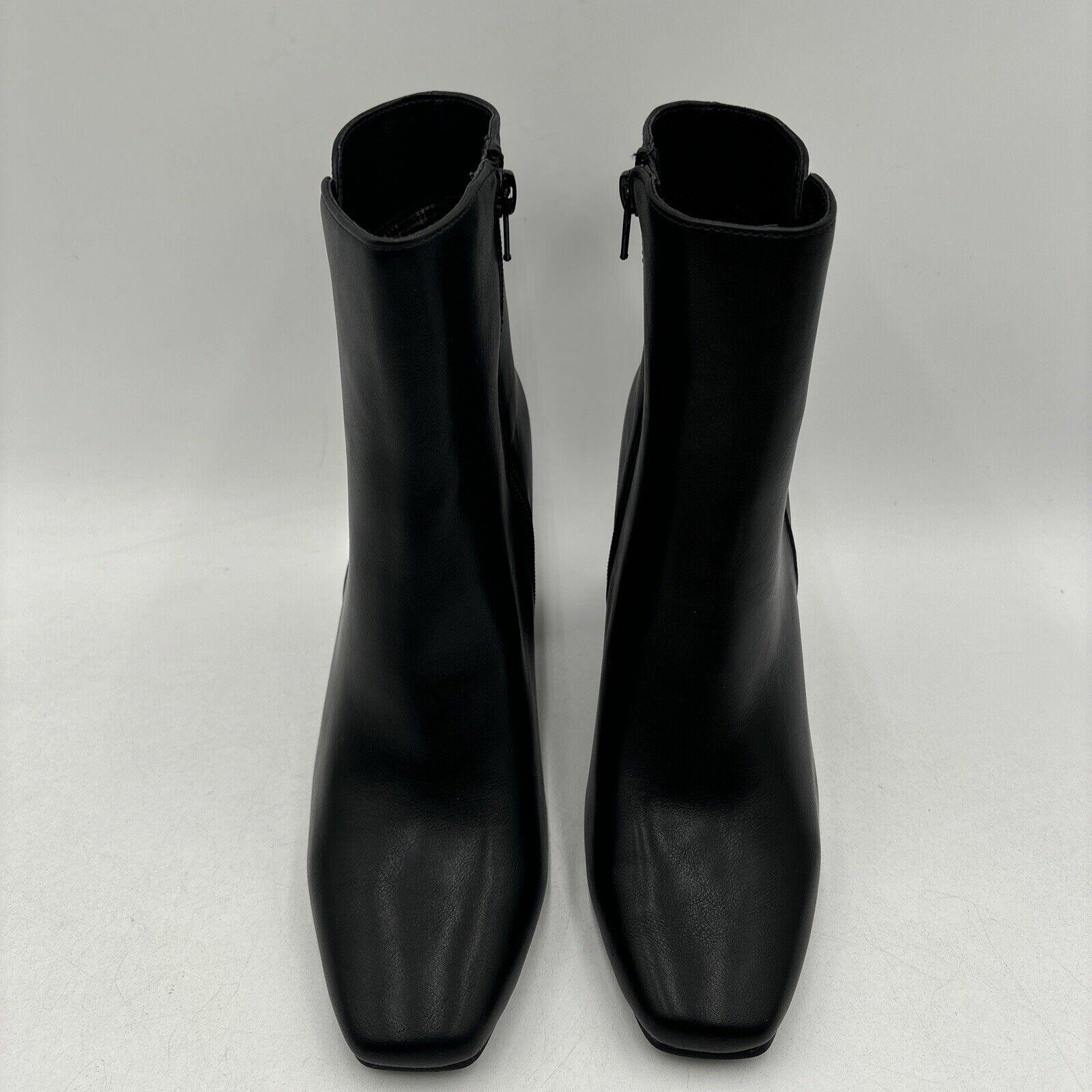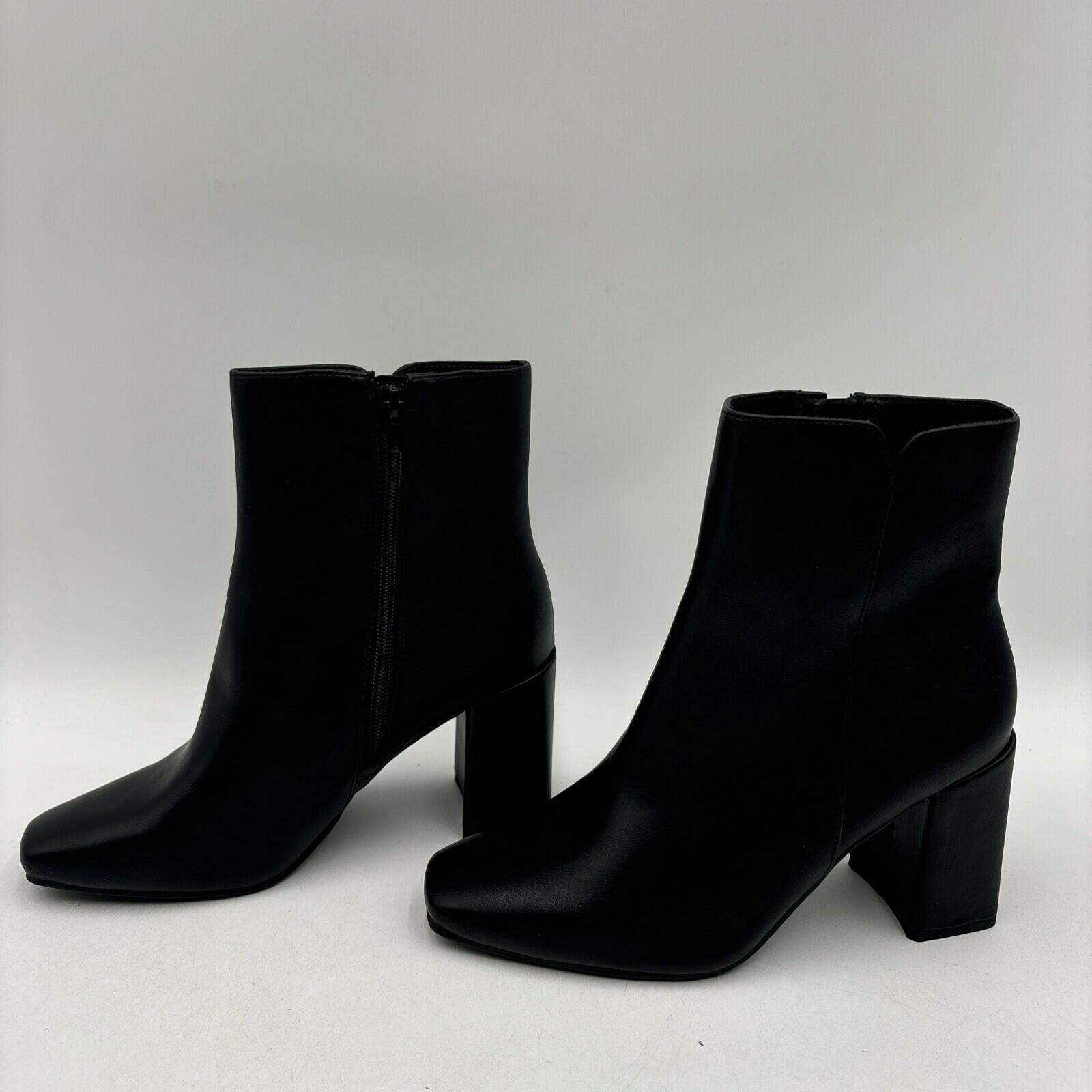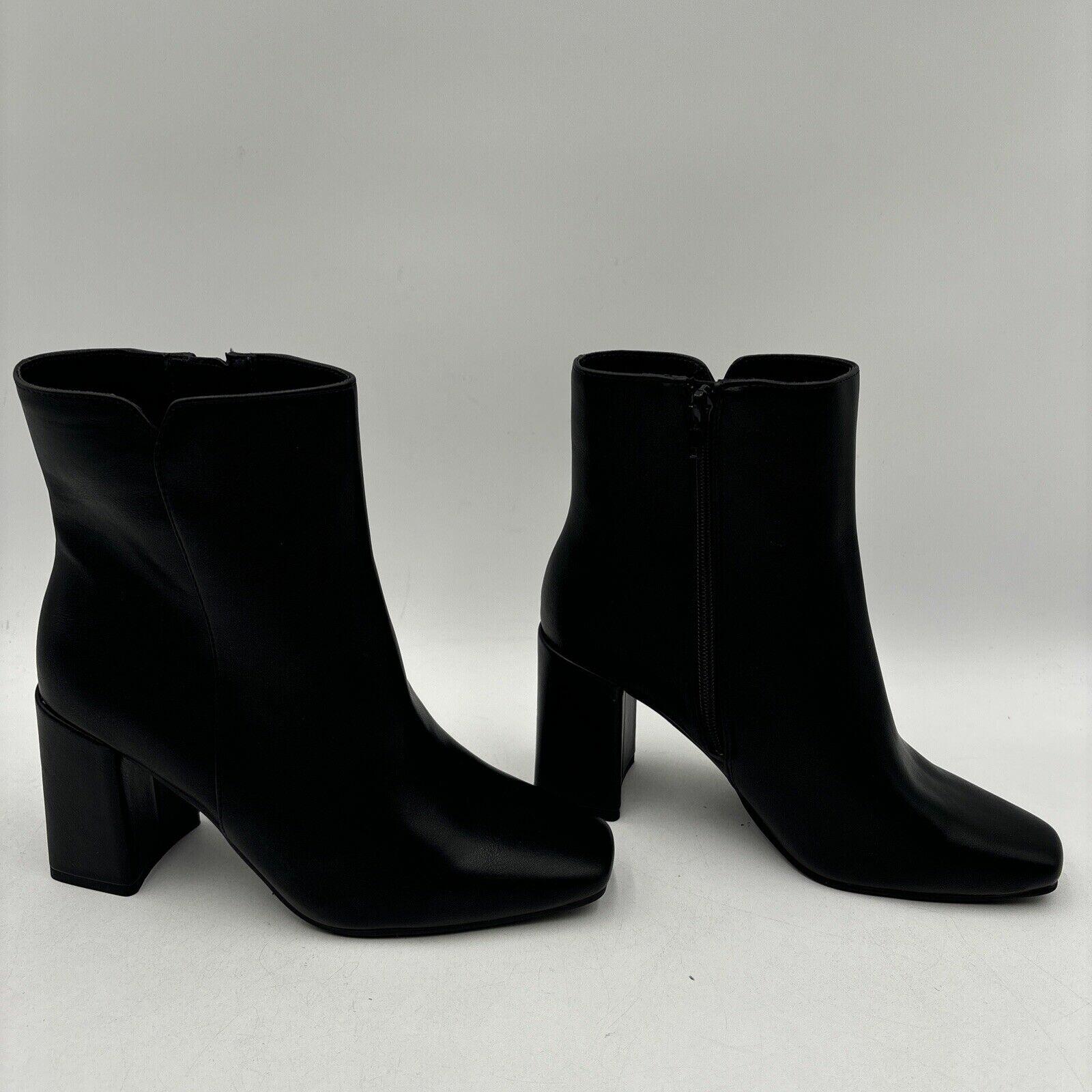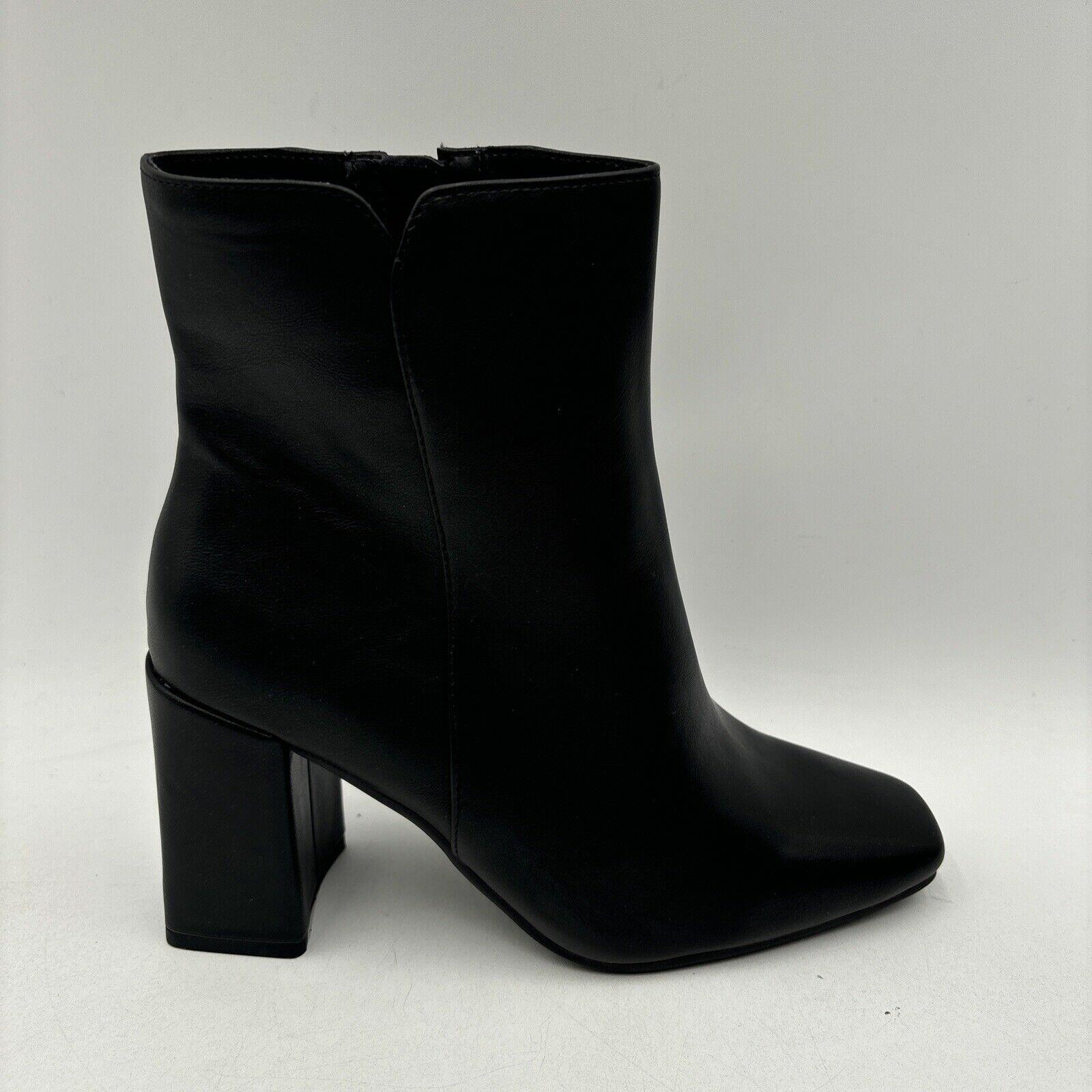 Kelly & Katie FENI Black Synthetic Square Toe Side Zip Ankle Boots, Size 8W - Very Good