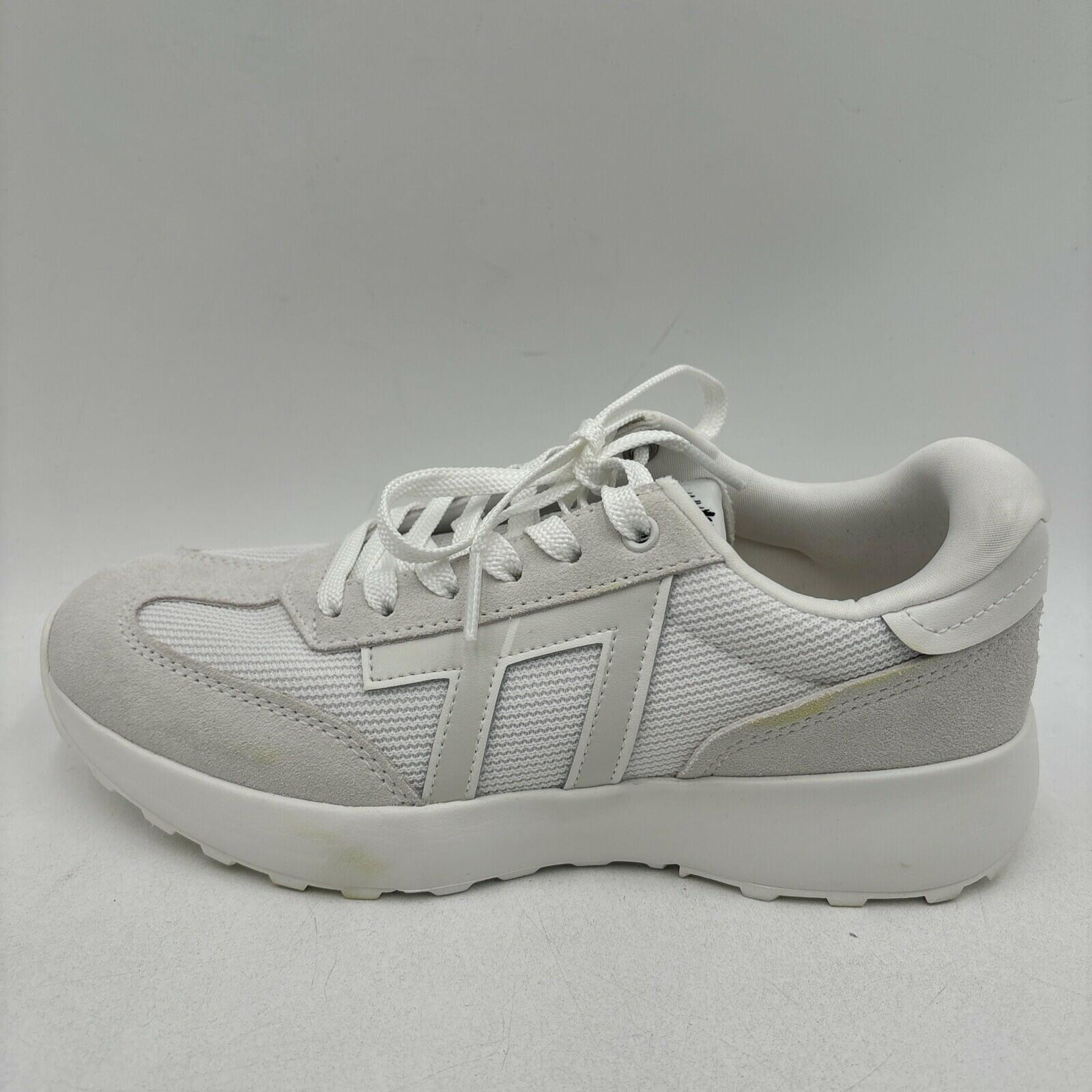 Le TIGRE Baxter White Leather/Textile Round Toe Low Top Lace Up Sneakers Size 7M - Very Good