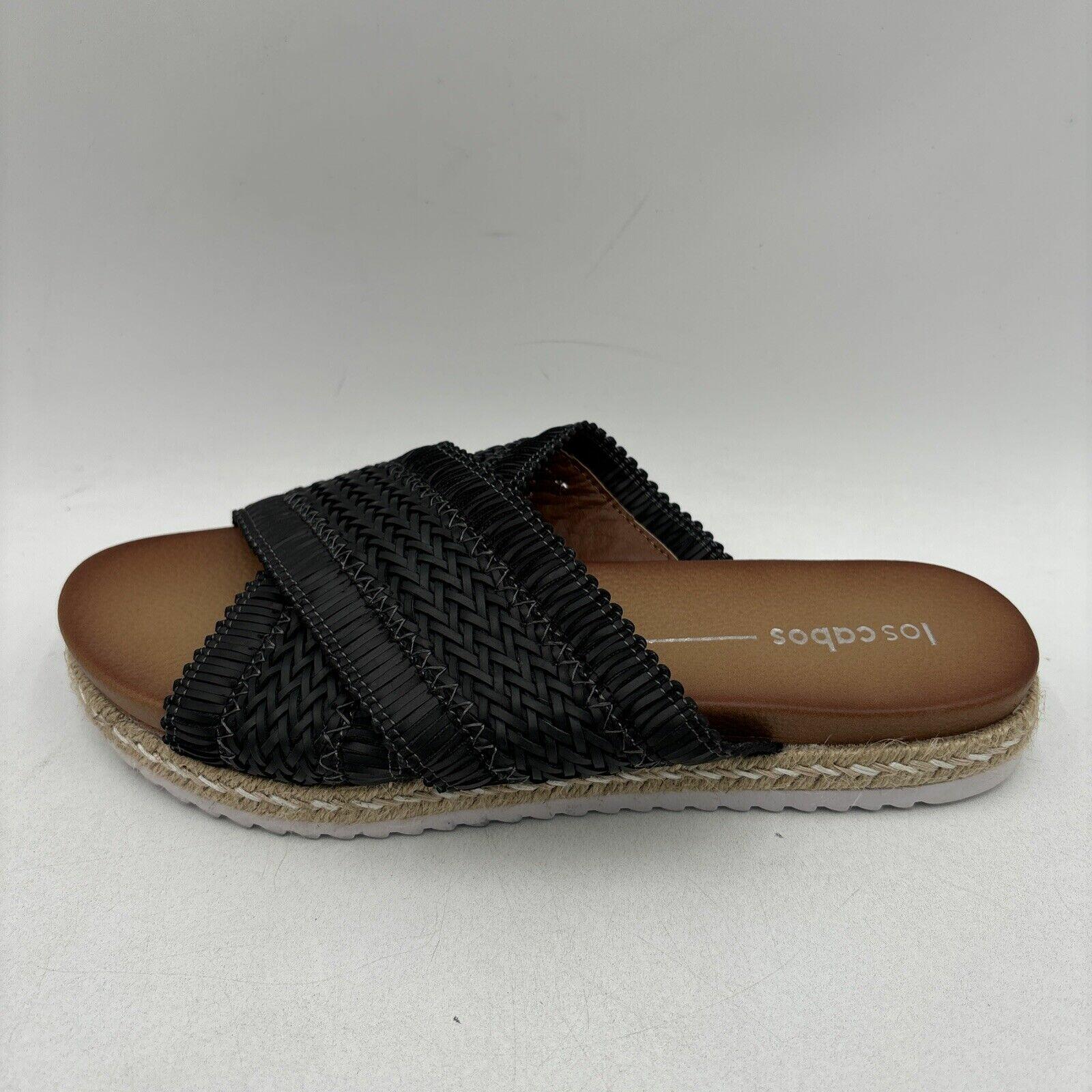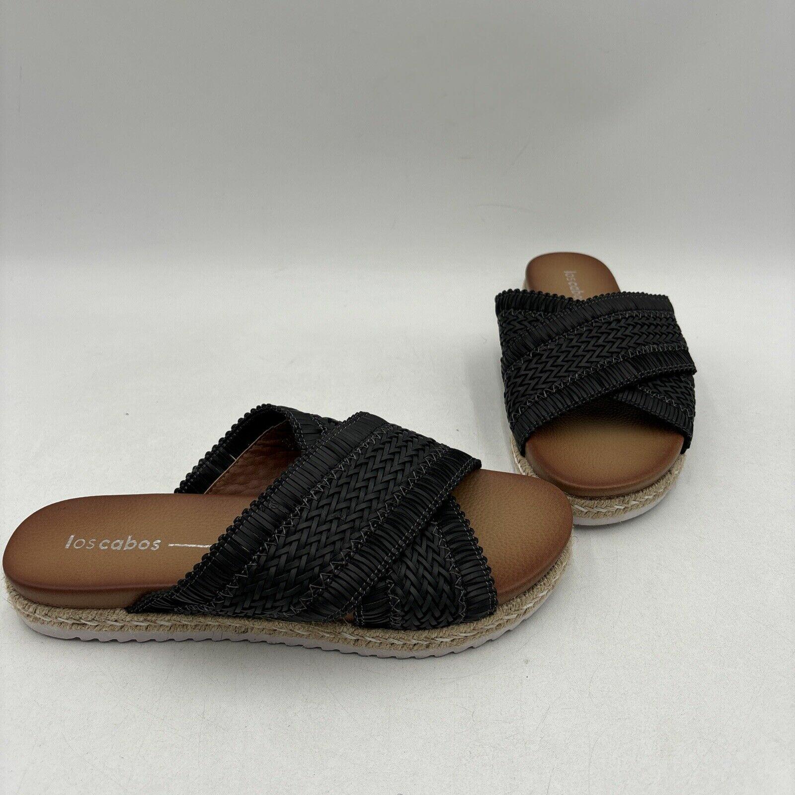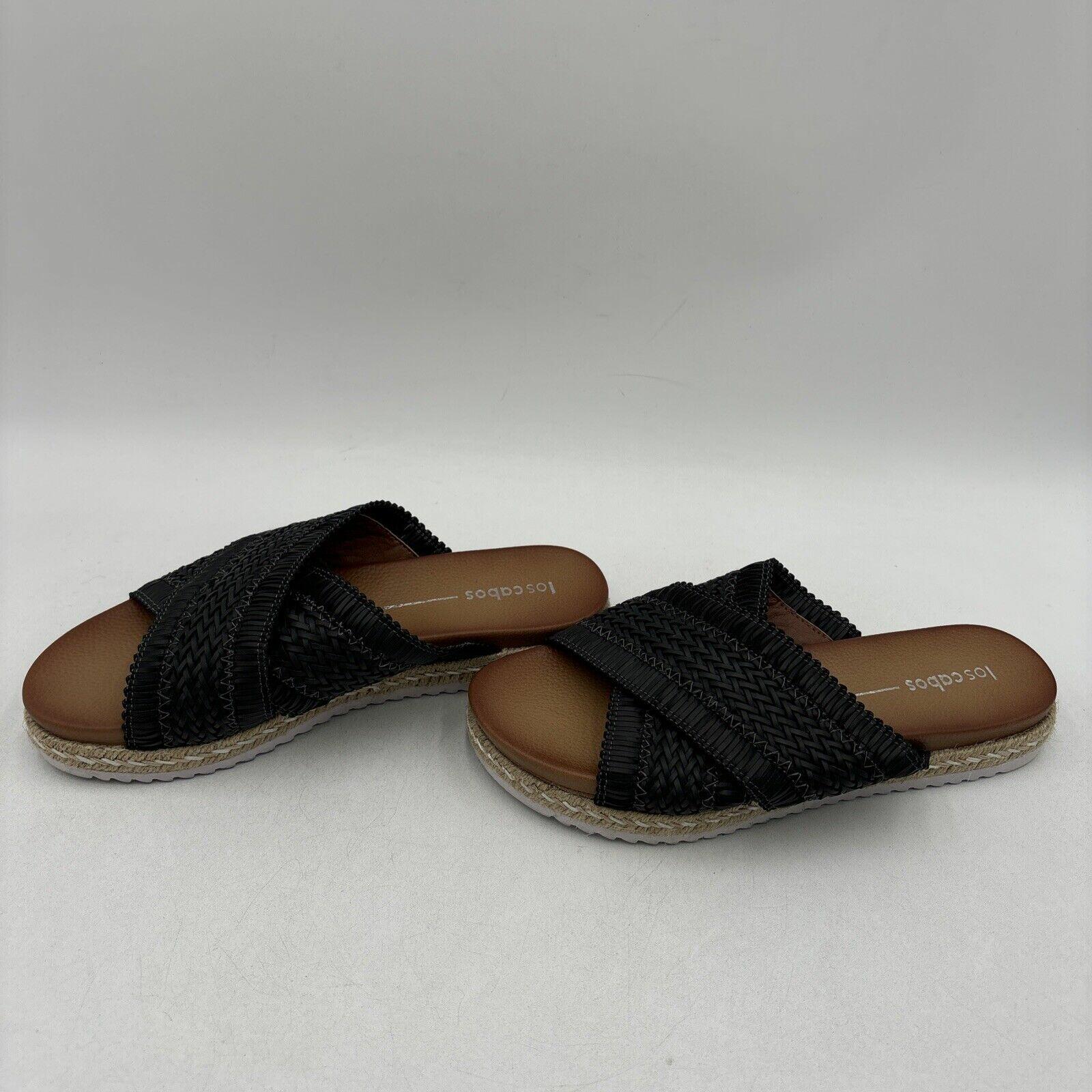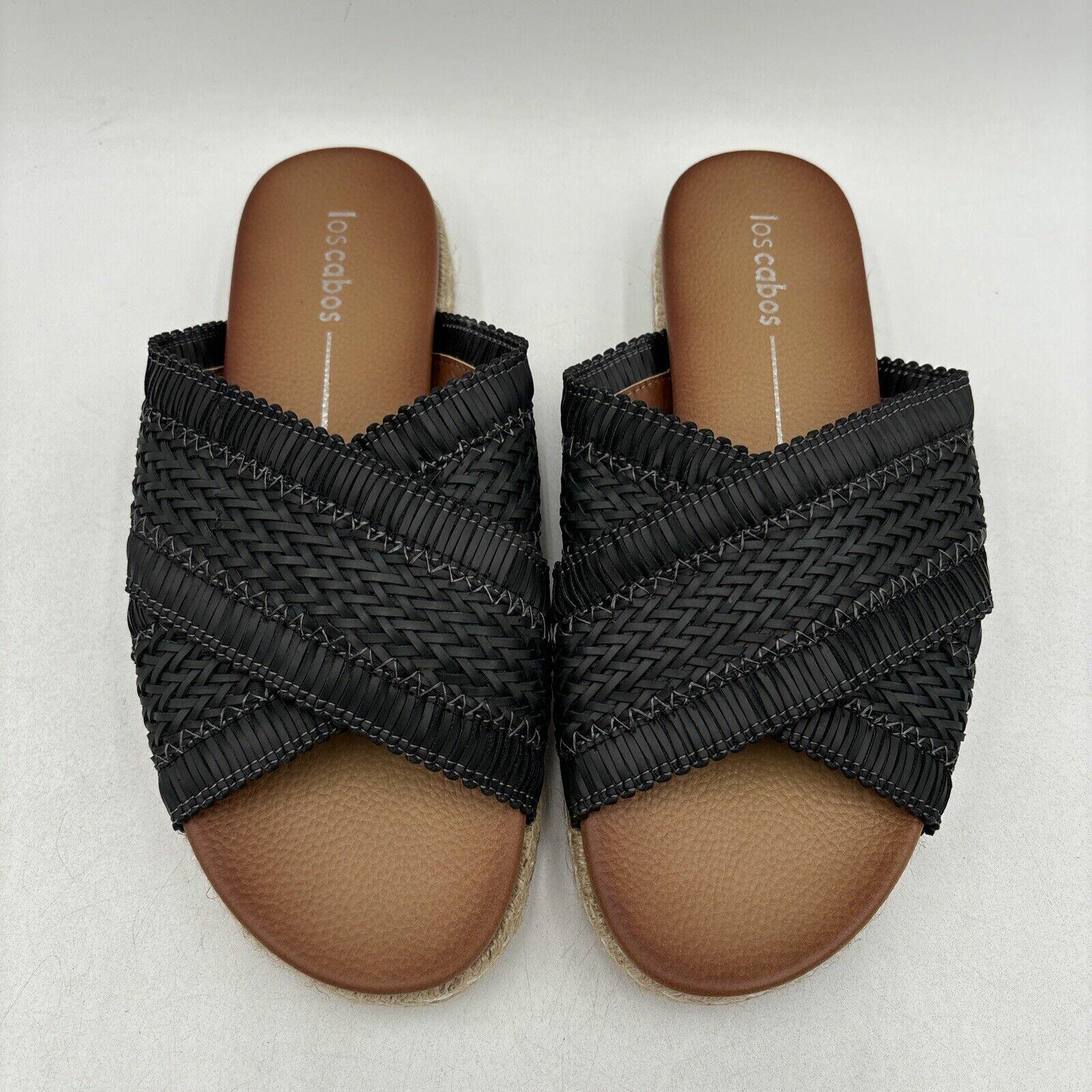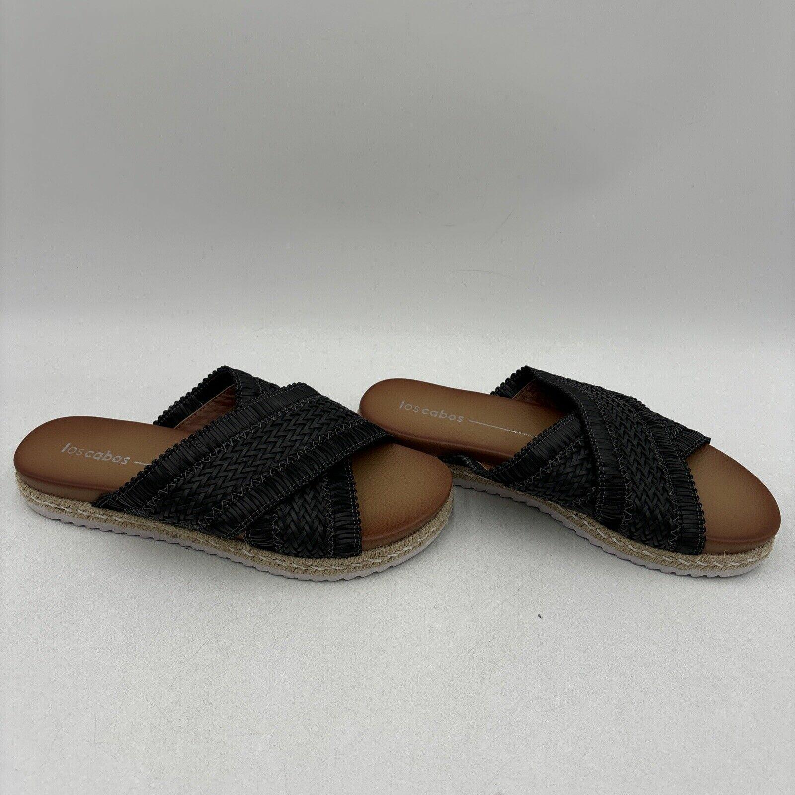 Los Cabos TINNY Black Synthetic Woven Open Toe Crisscross Slide Sandals, Size 39 - Very Good