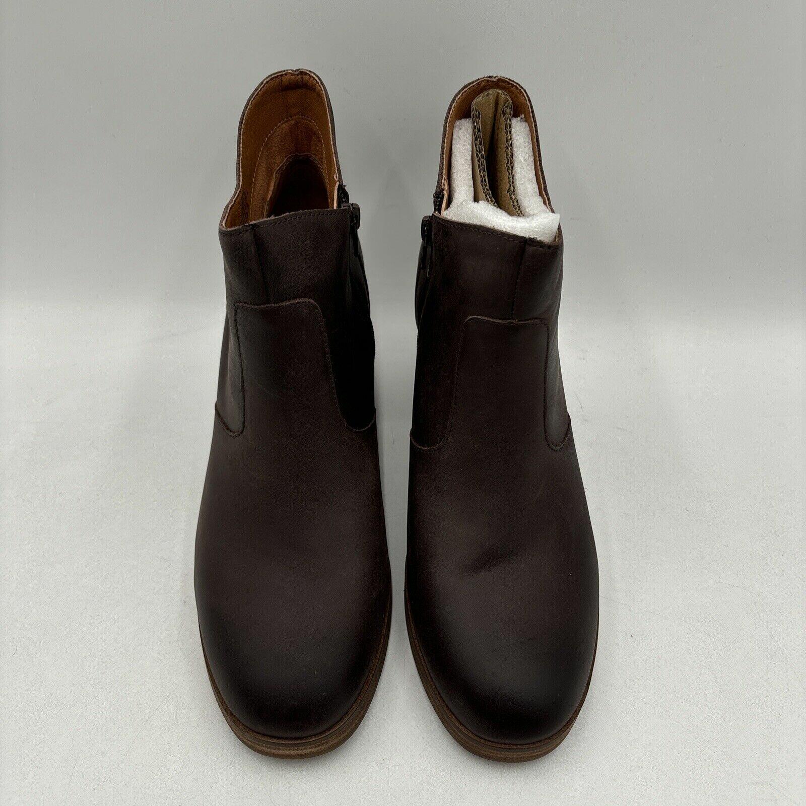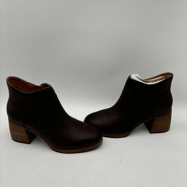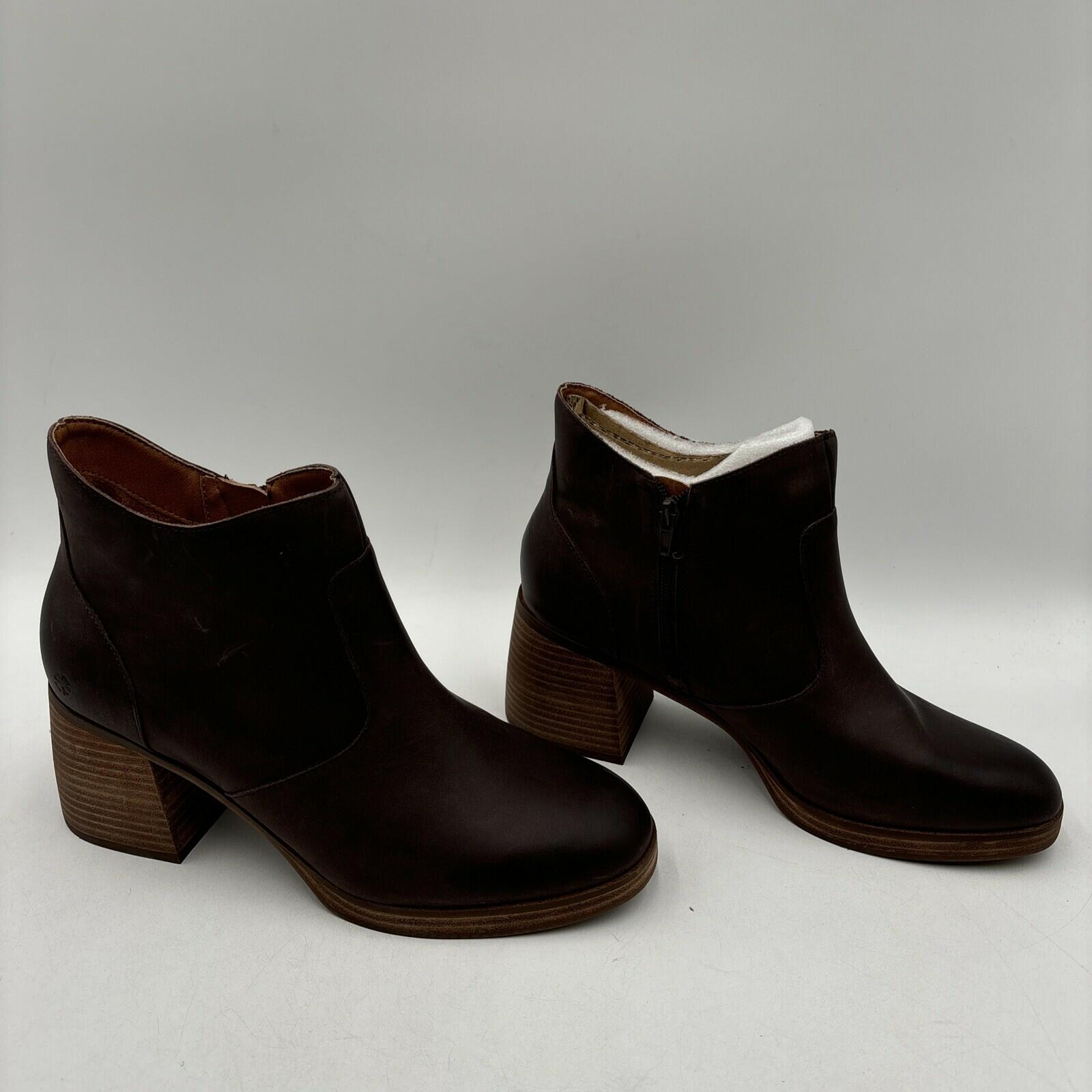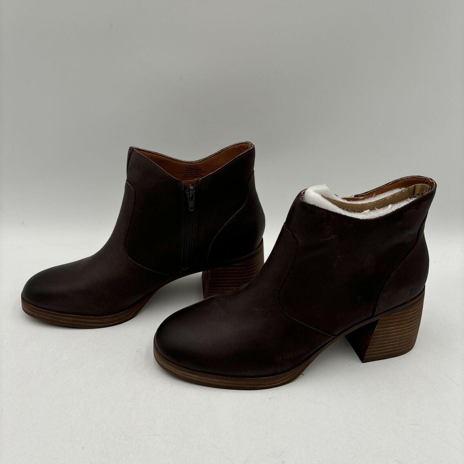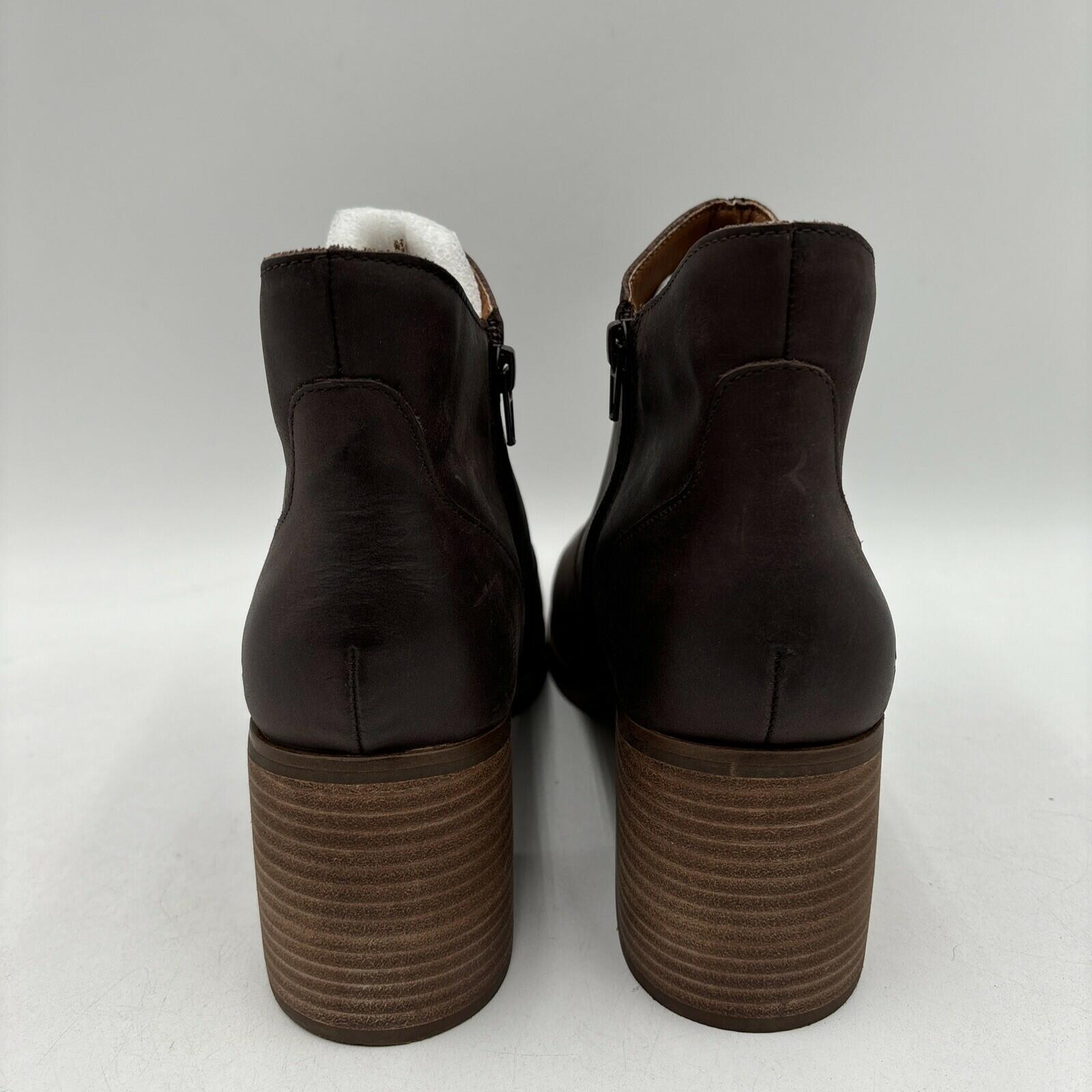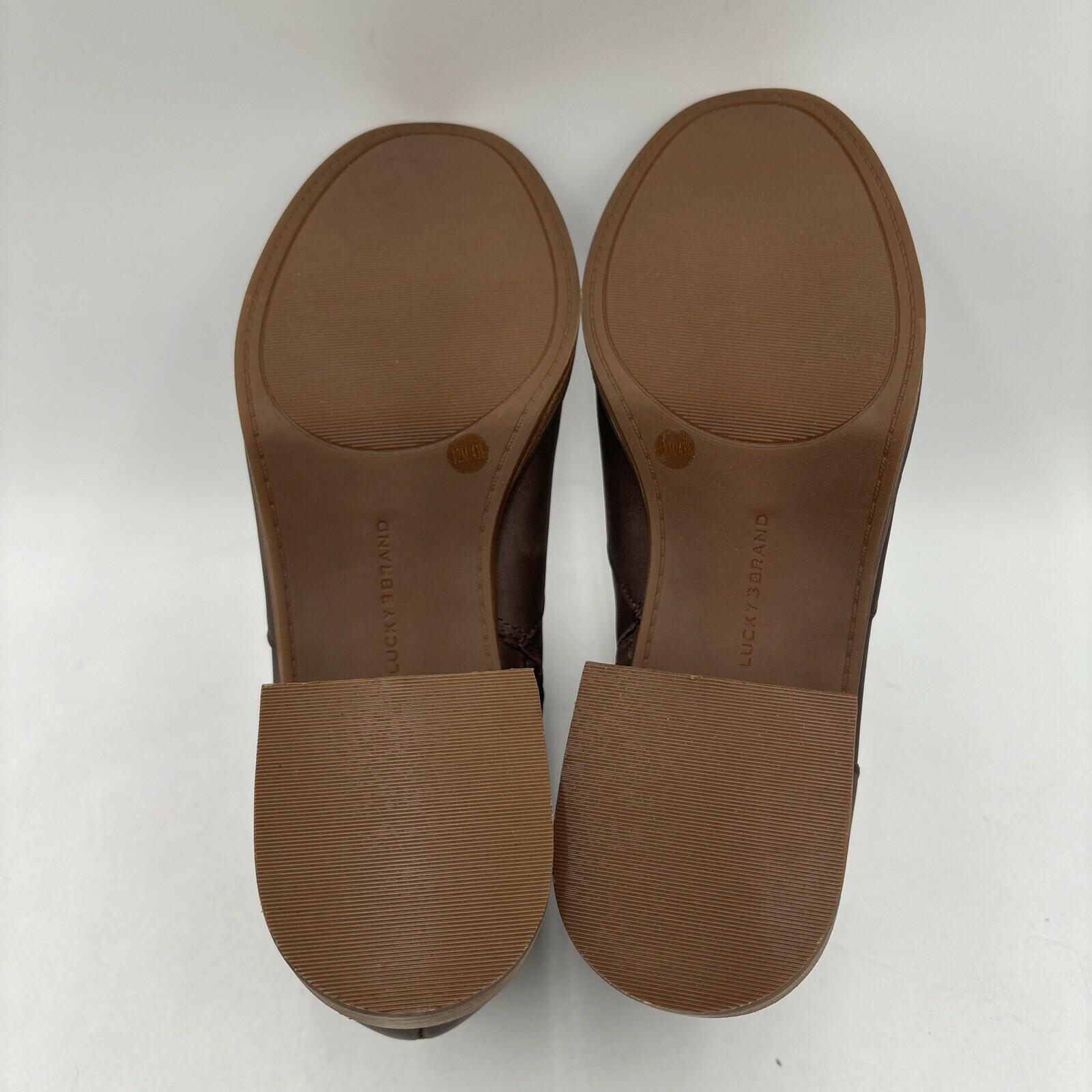 Lucky Brand QUINLEE Brown Leather Round Toe Block Heel Side Zip Boots, Size 12M - Very Good