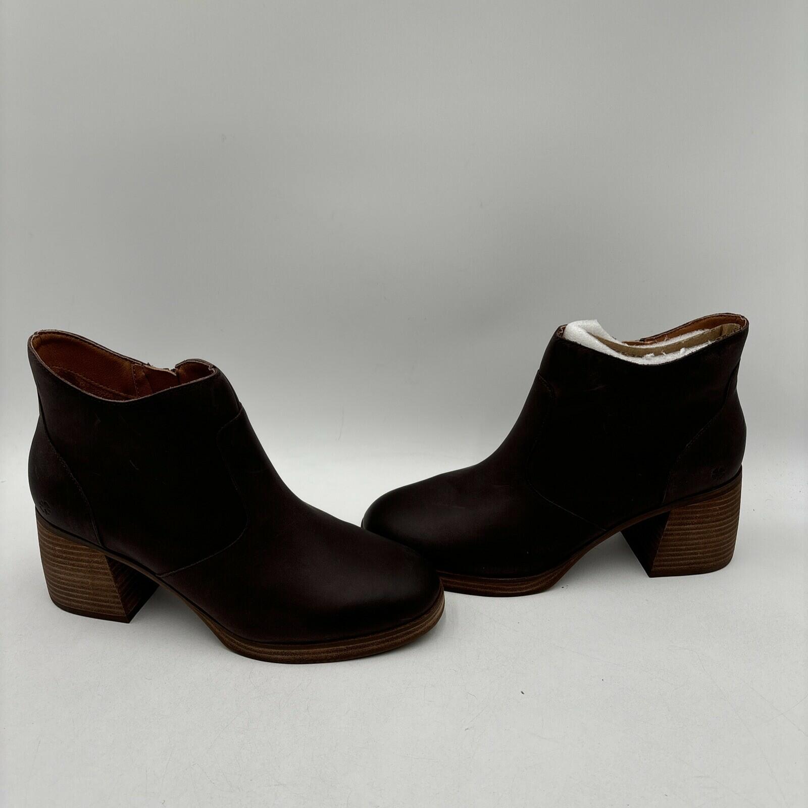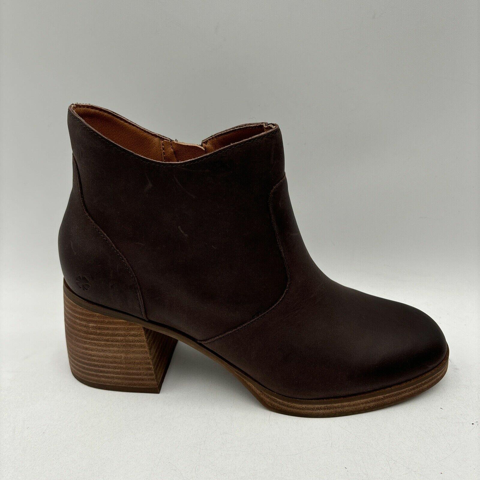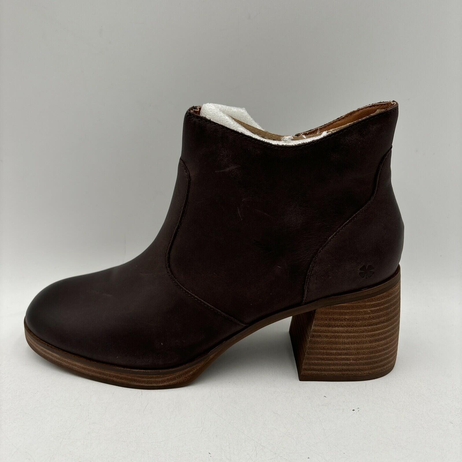 Elevate your casual style with these Lucky Brand QUINLEE ankle boots. The brown leather upper, round toe, and mid-height block heel make them a versatile addition to your wardrobe. The side zip closure and textile lining add a touch of comfort, while the bohemian theme and vintage-inspired design give them a unique flair. Perfect for any occasion, these boots are a must-have for any fashion-forward woman. Available in size 12M.Upper material is in good condition. Insoles are in good condition. Bottom soles are in good condition.