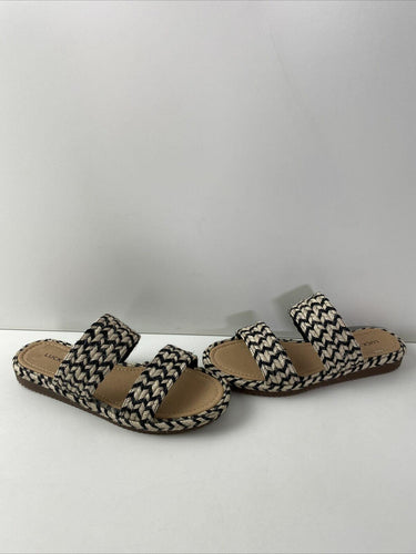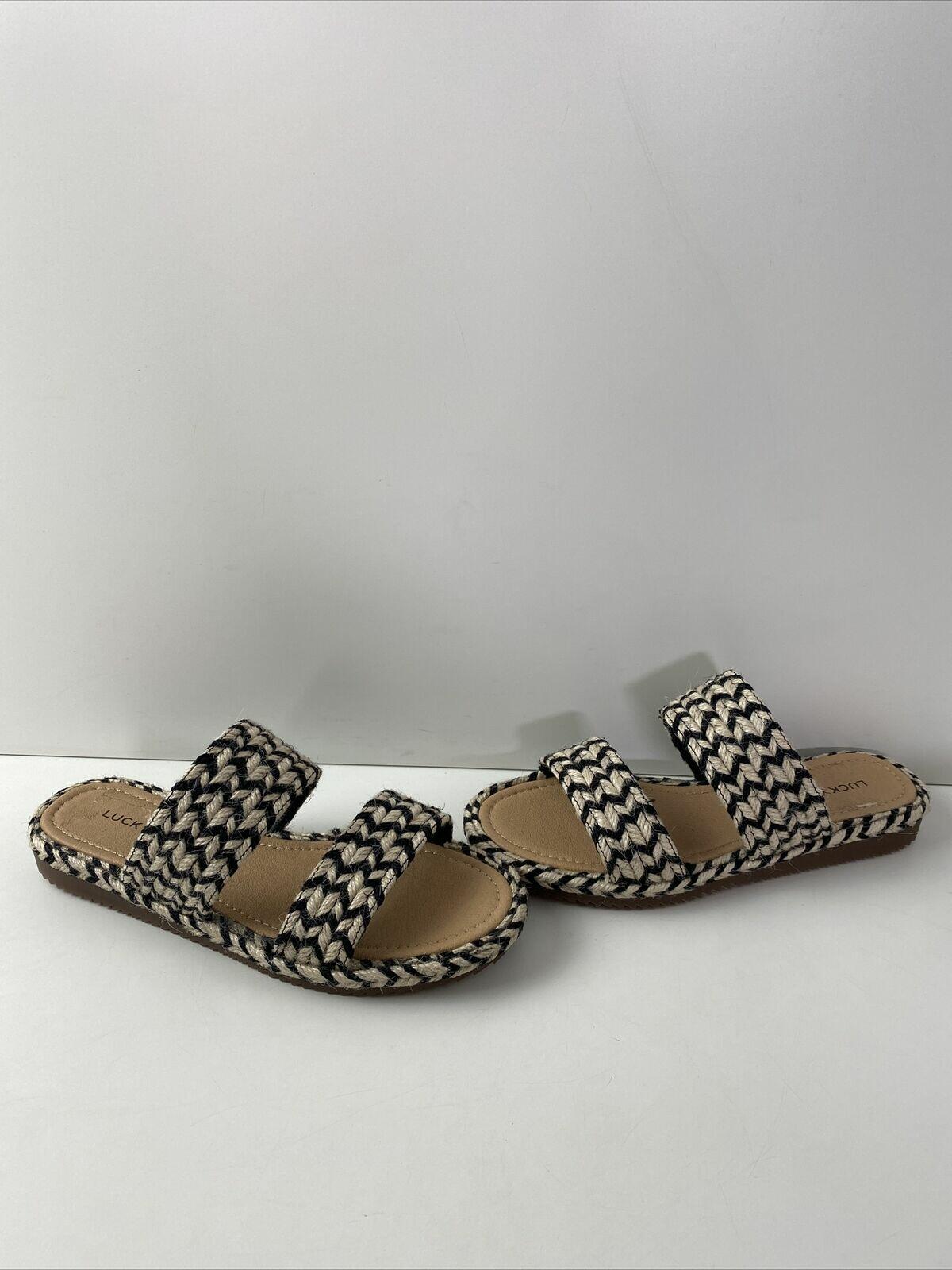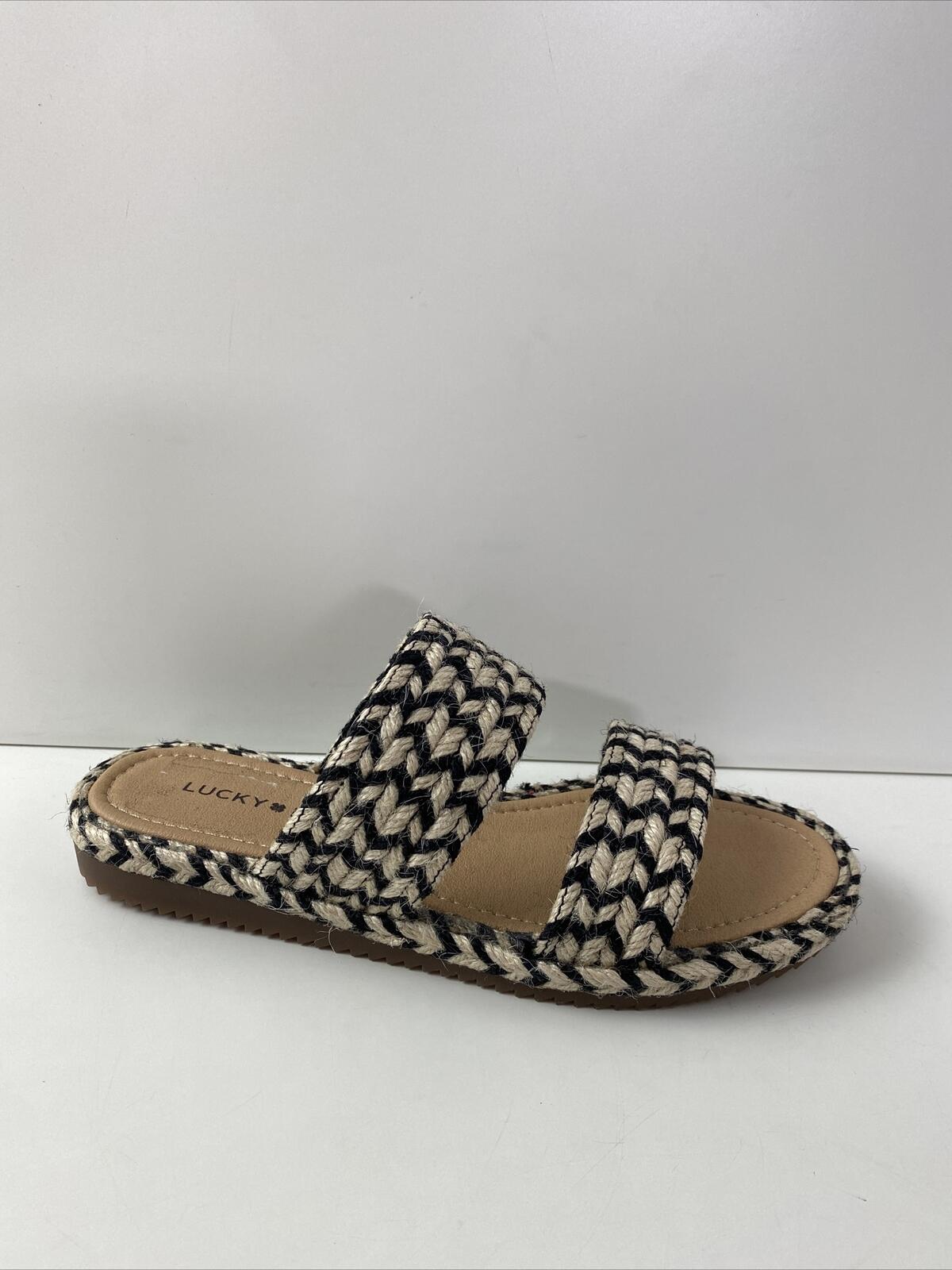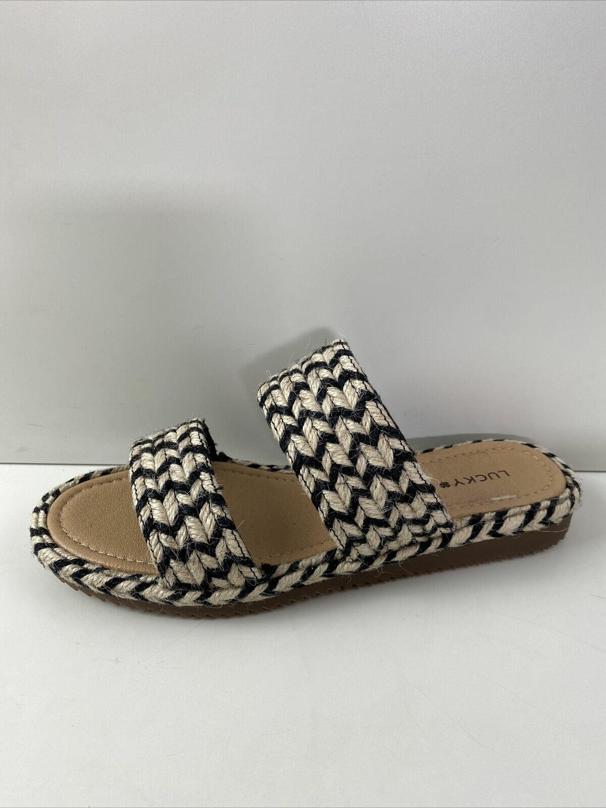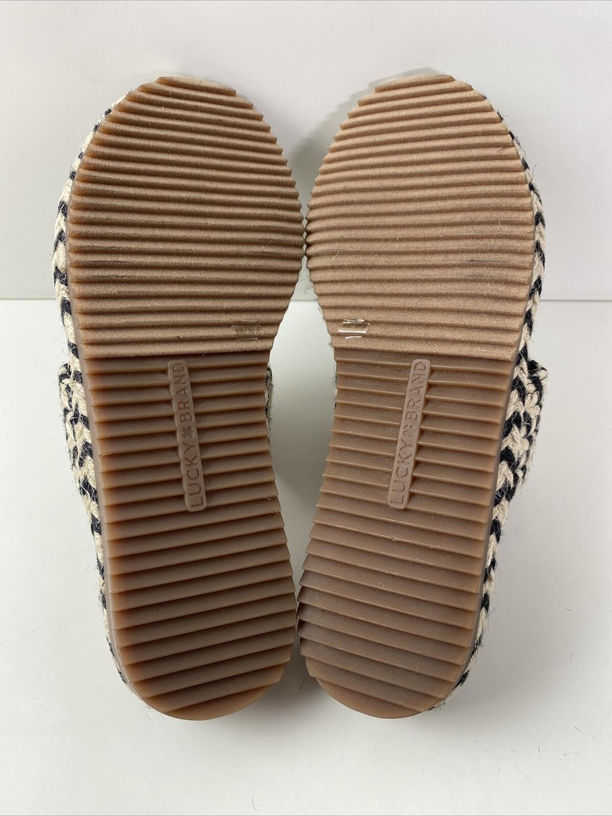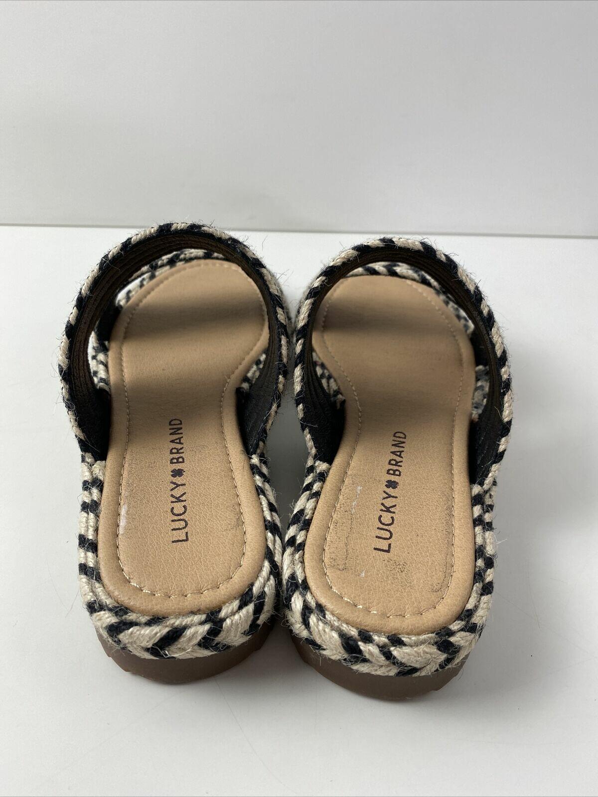Lucky Brand WYNTOR Black/White Textile Strap Wedge Slide Sandals Women’s Size 6M