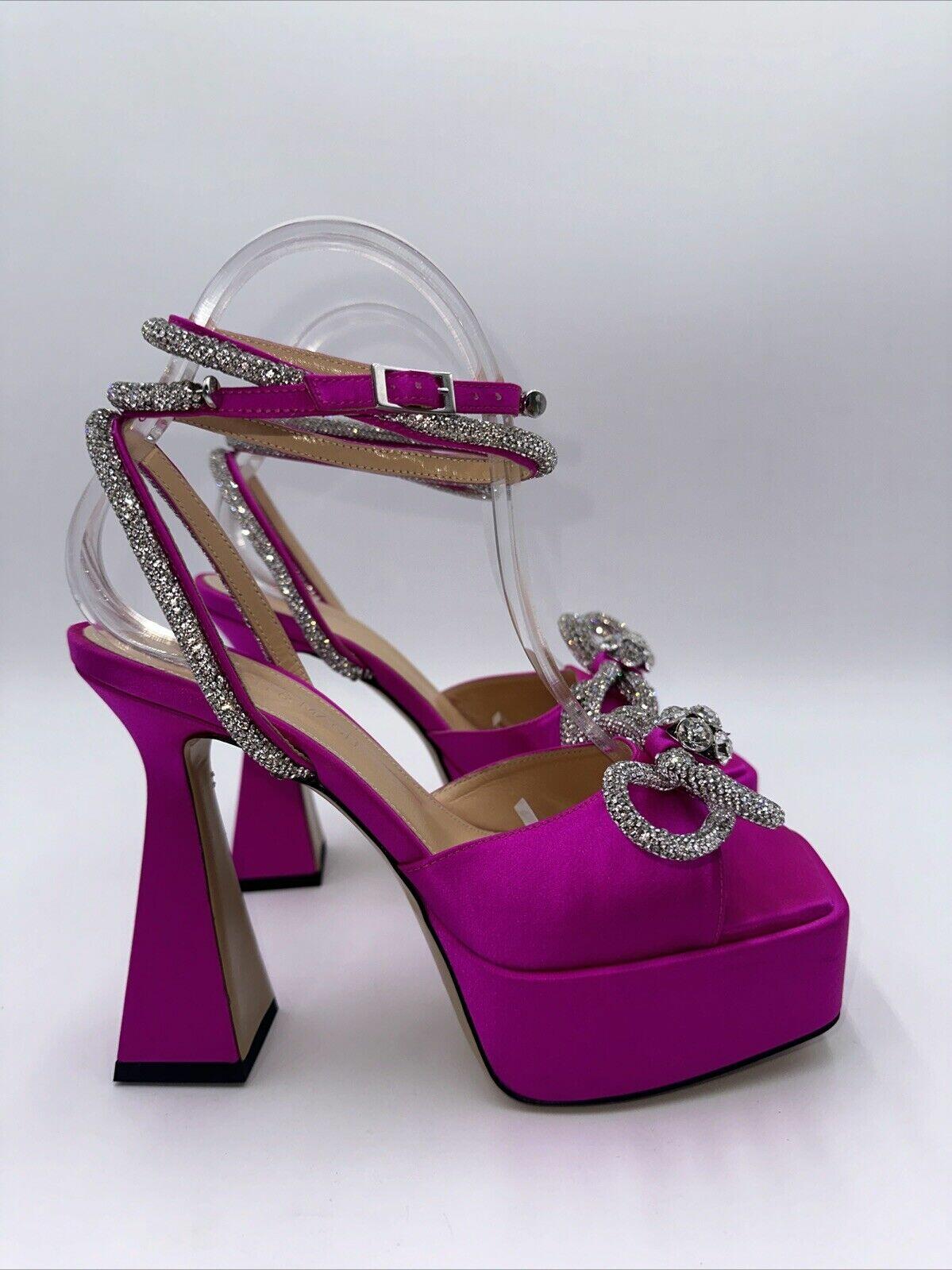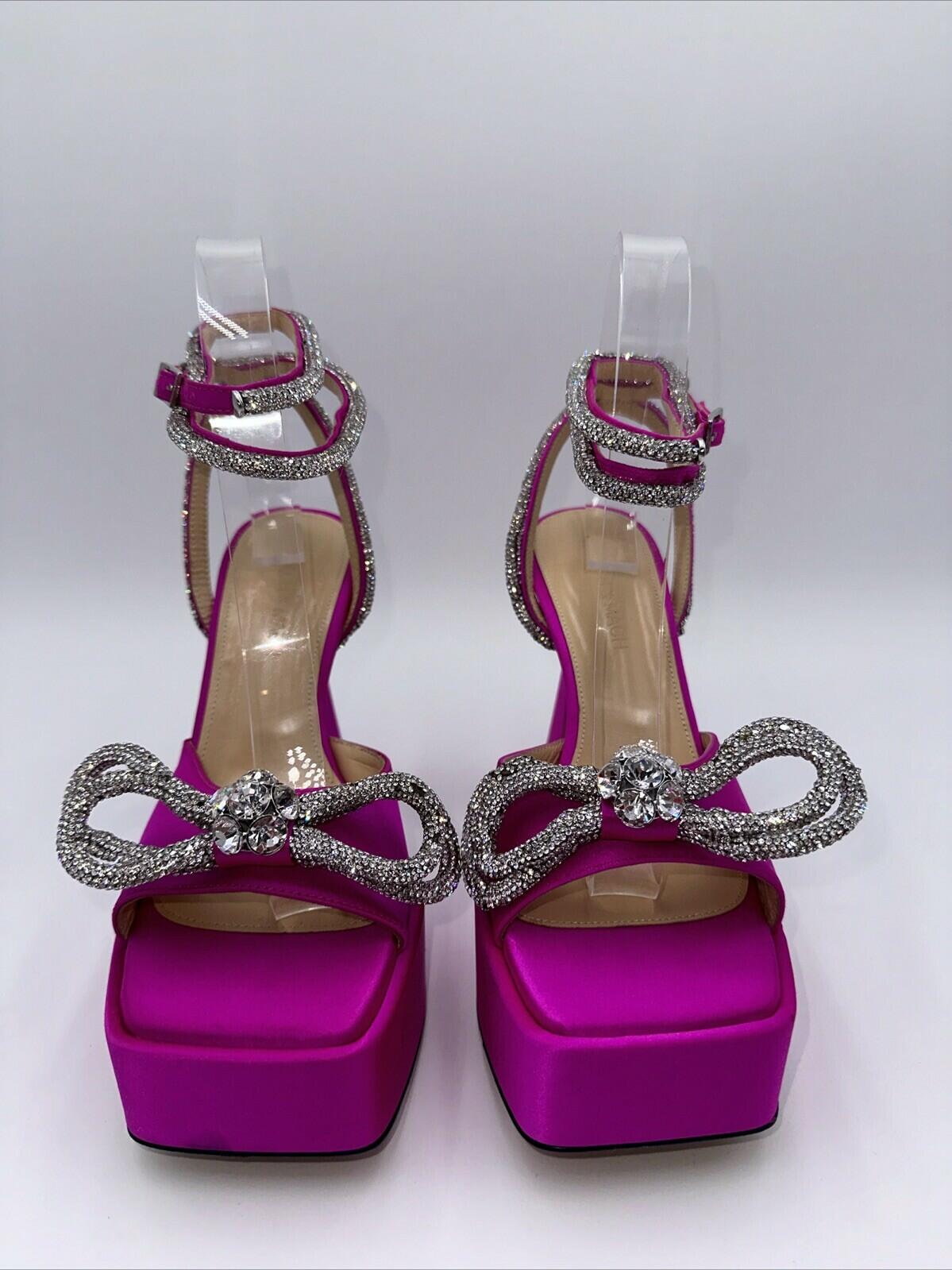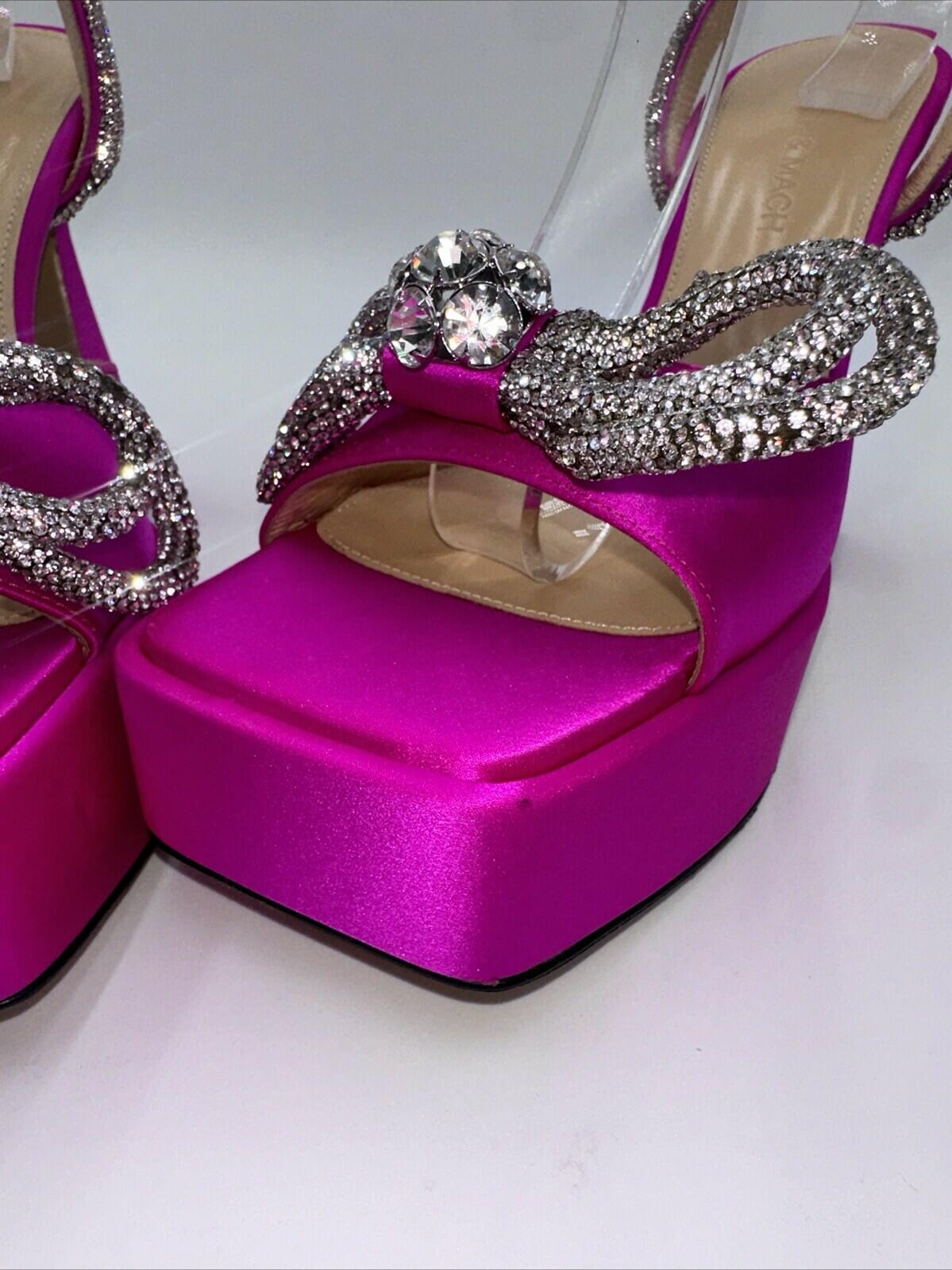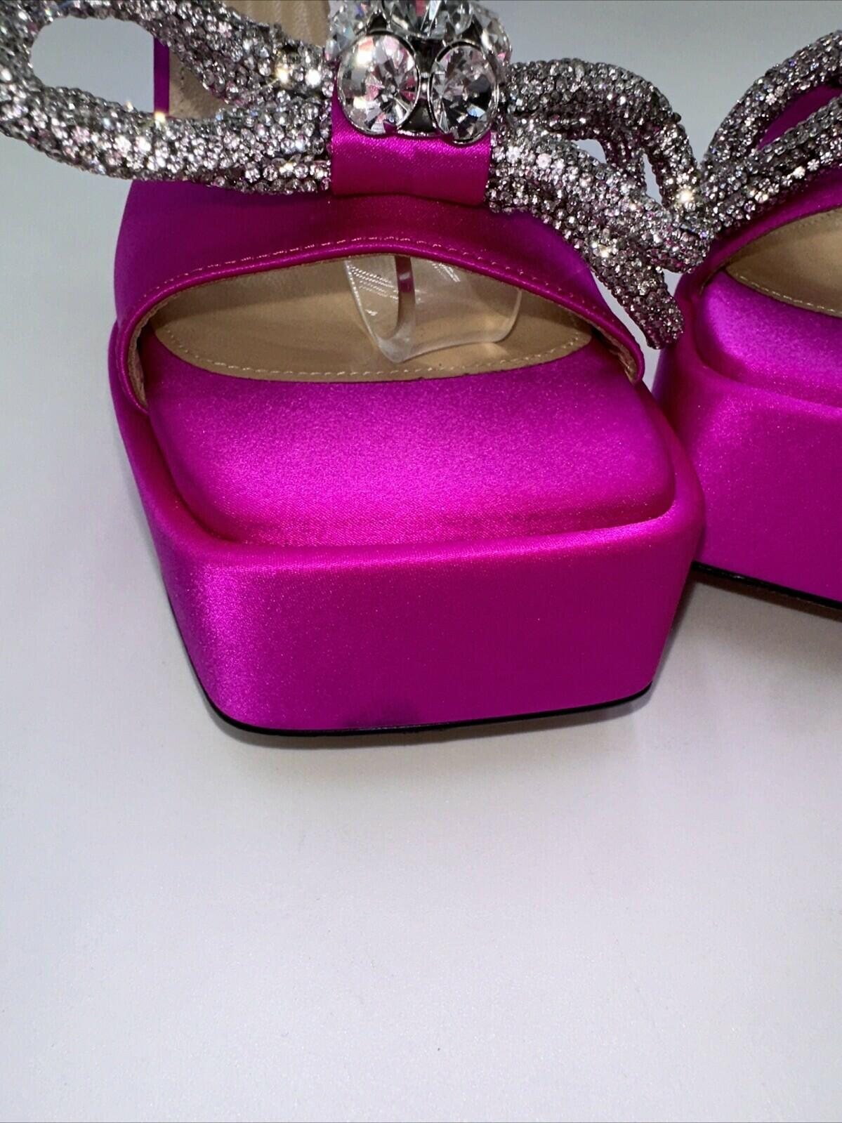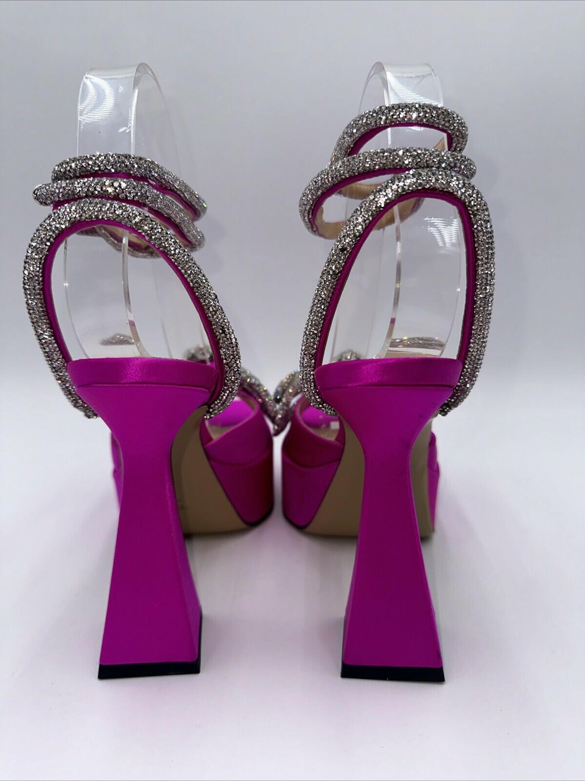 Mach & Mach 140 Crystal Embellished Satin Platform Sandals Fuchsia Size 37.5