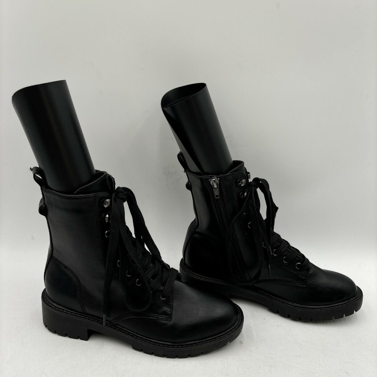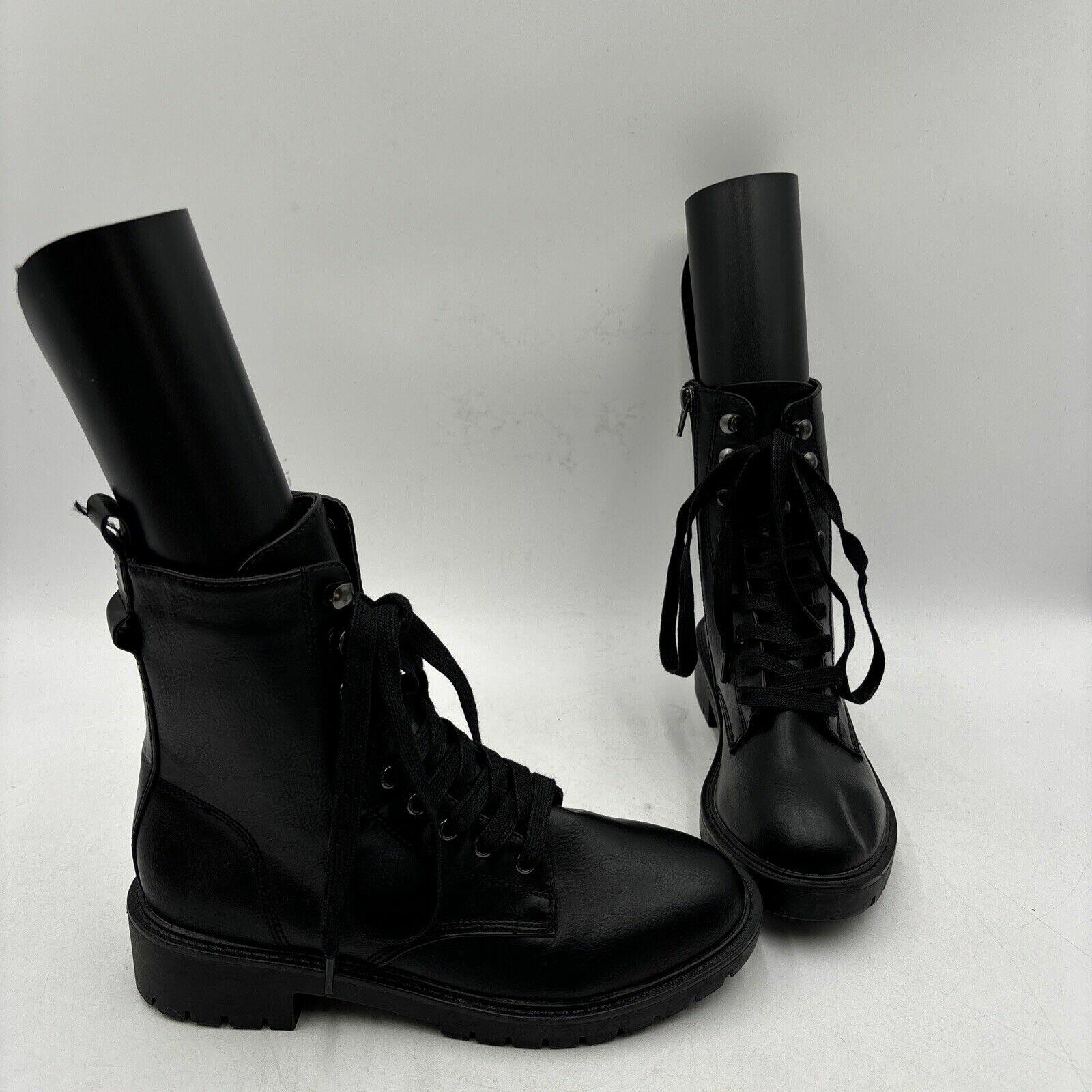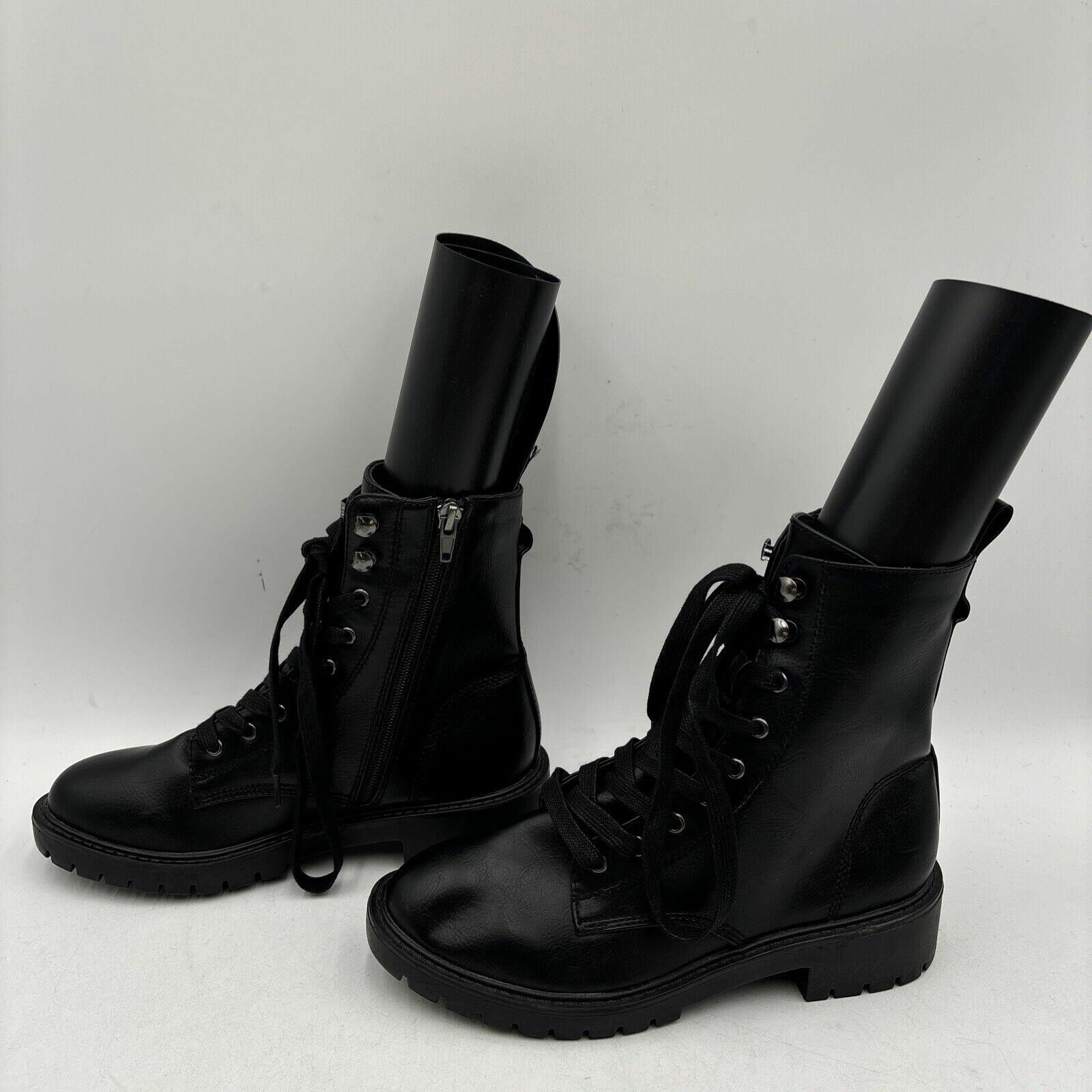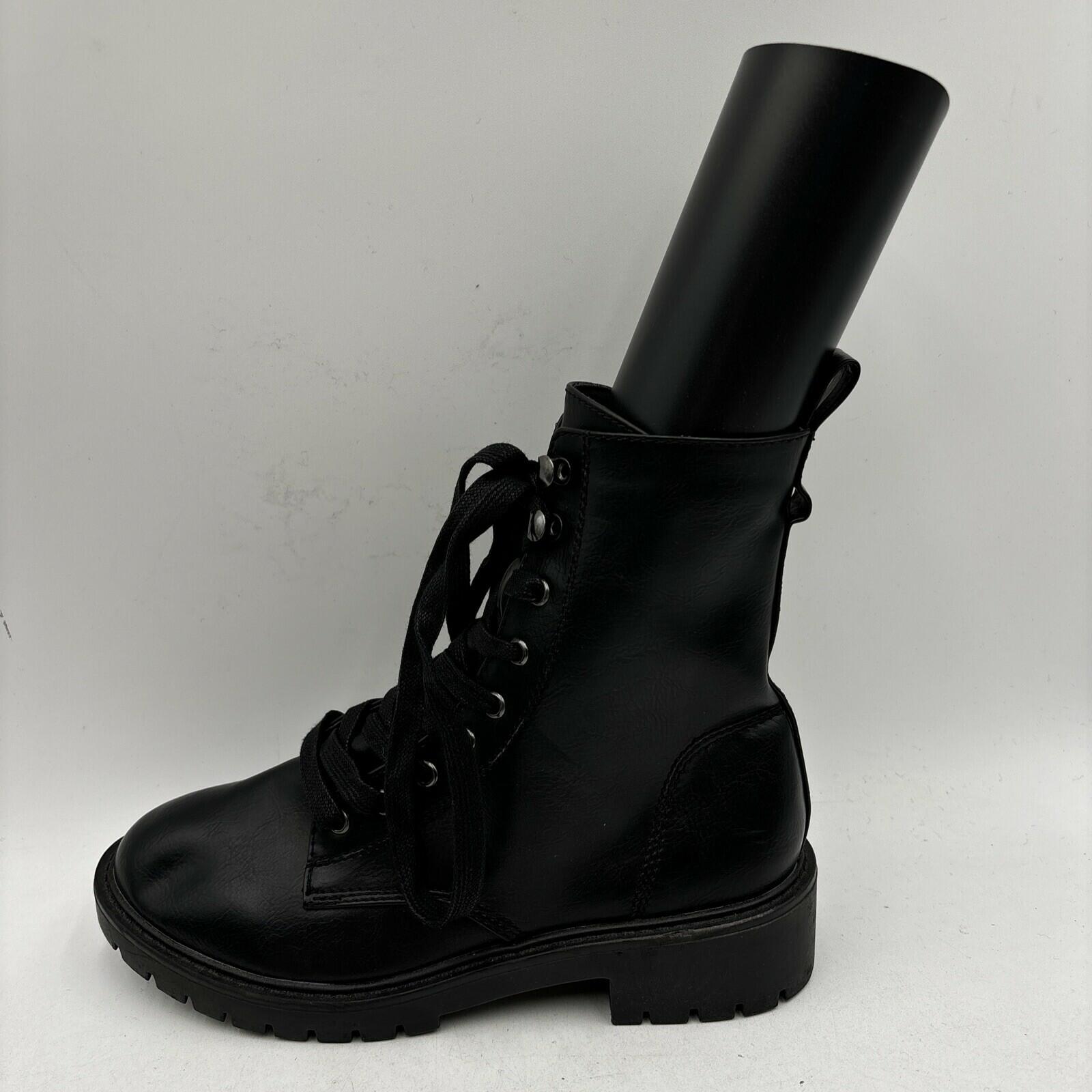 Madden Girl PARKER Black Faux Leather Lace Up/Side Zip Ankle Boots Women’s 7 M - Very Good