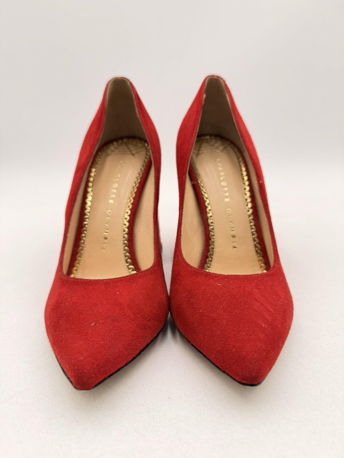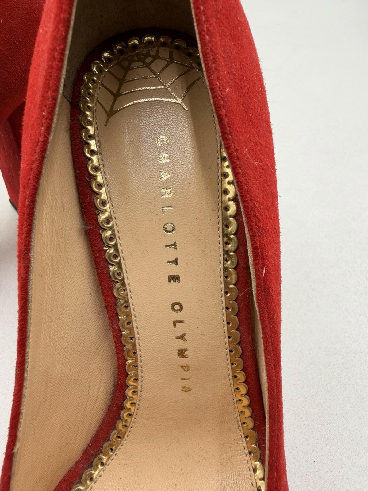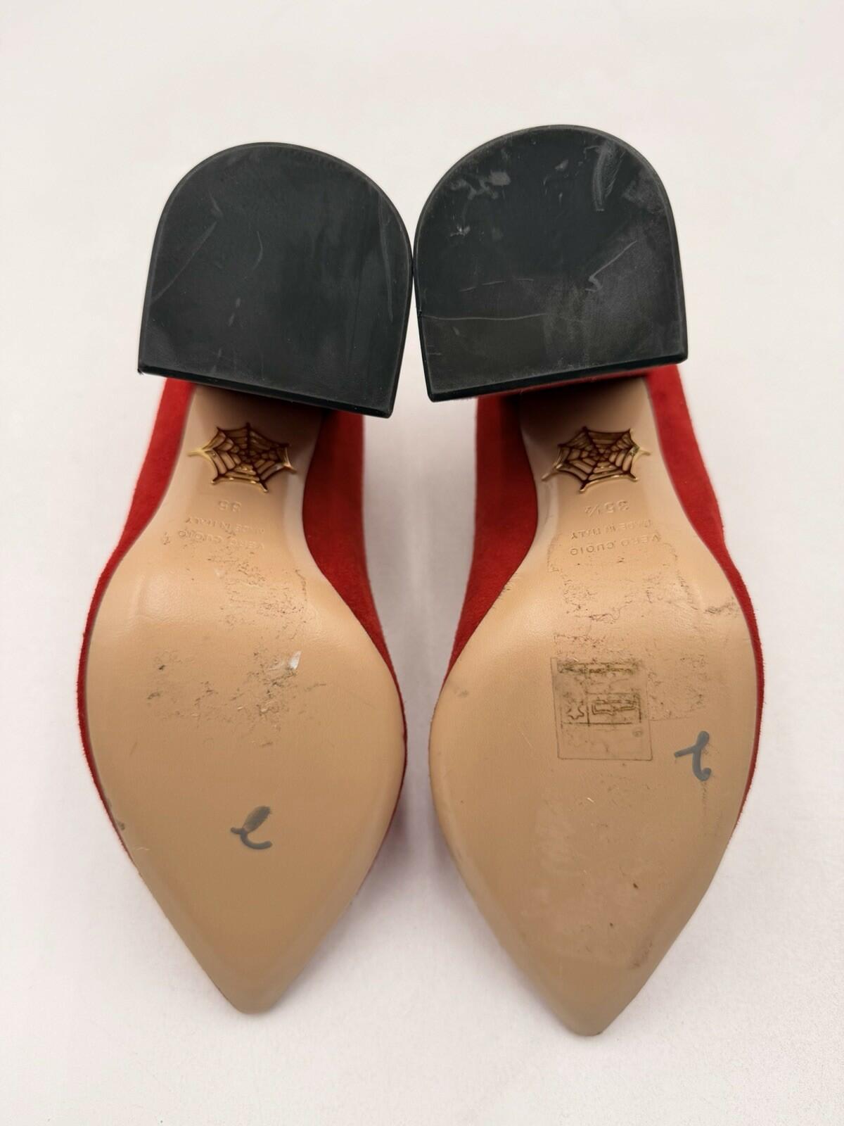 Charlotte Olympia AMANDA Red Suede Block Heel Pointy Toe Slip On Heels Size 35.5 - Very Good