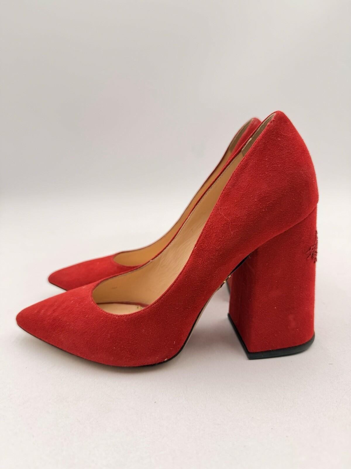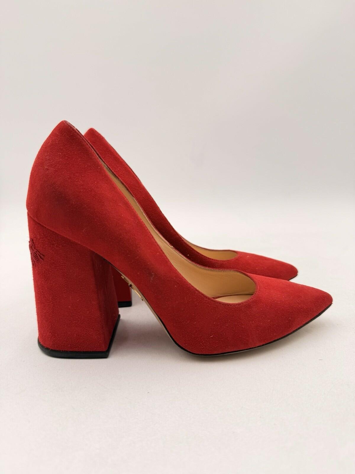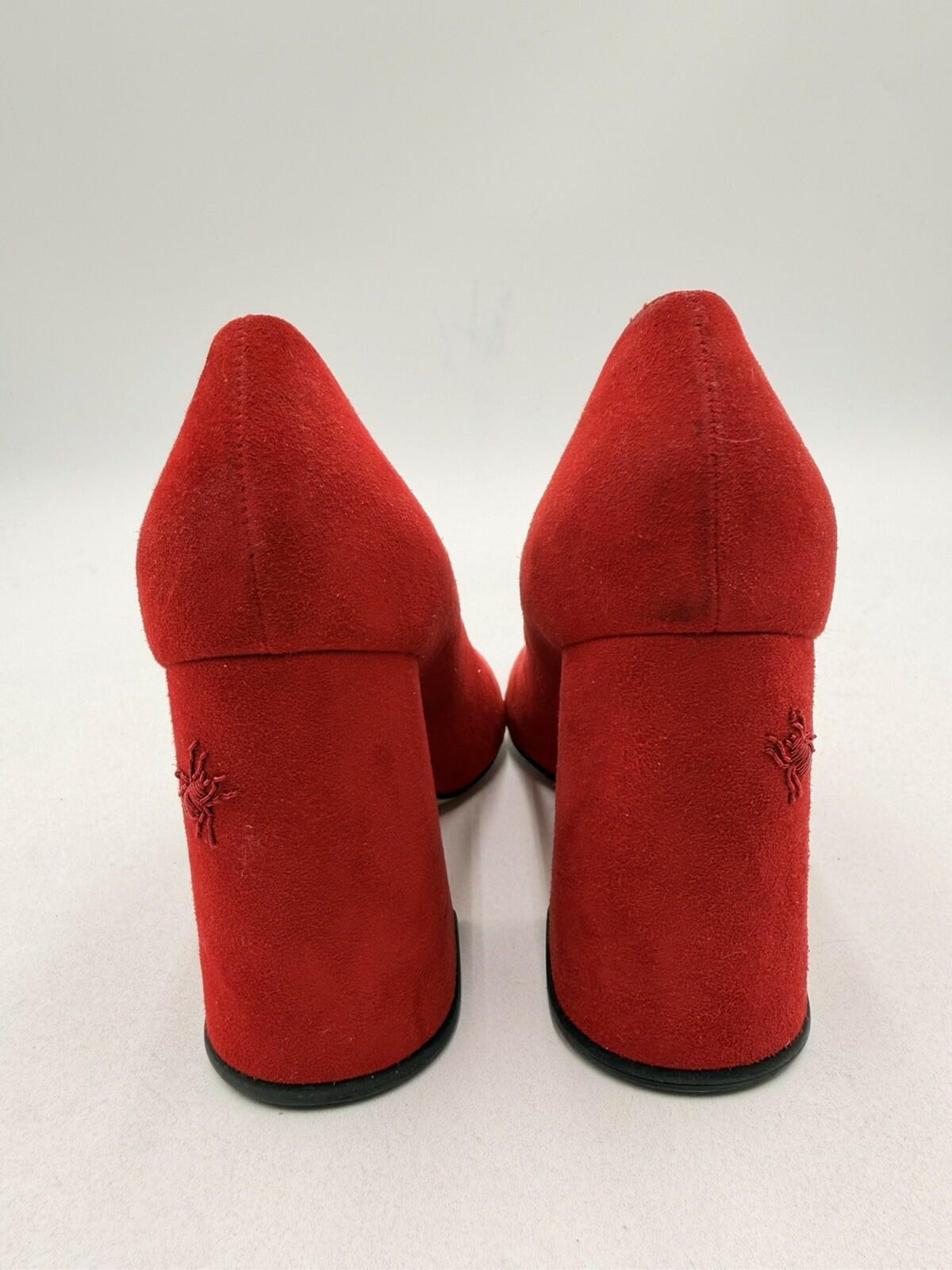 Charlotte Olympia AMANDA Red Suede Block Heel Pointy Toe Slip On Heels Size 35.5 - Very Good