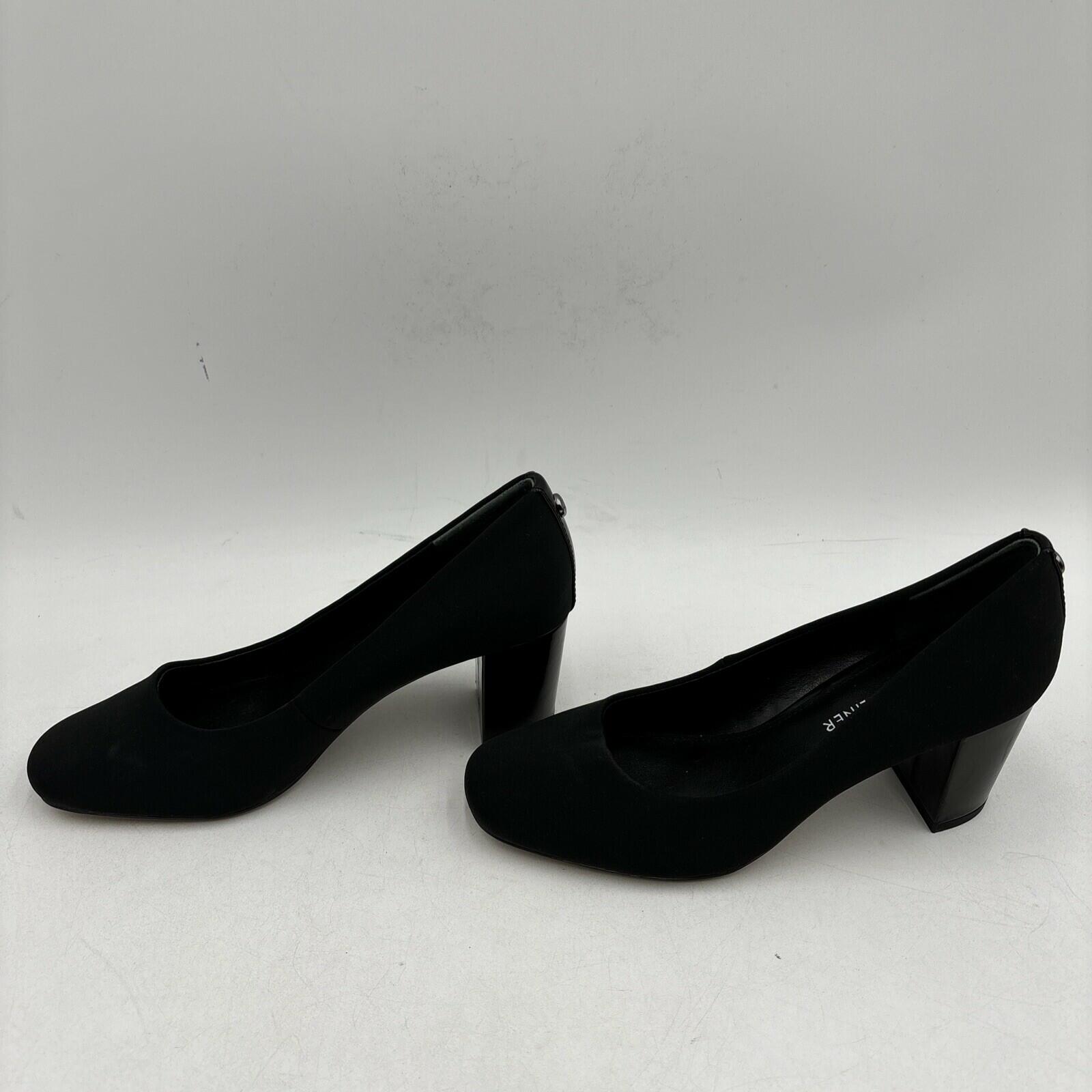 Donald Pliner PARRIS Black Textile Round Toe Slip On Block Heel Pumps Size 5.5M - Very Good