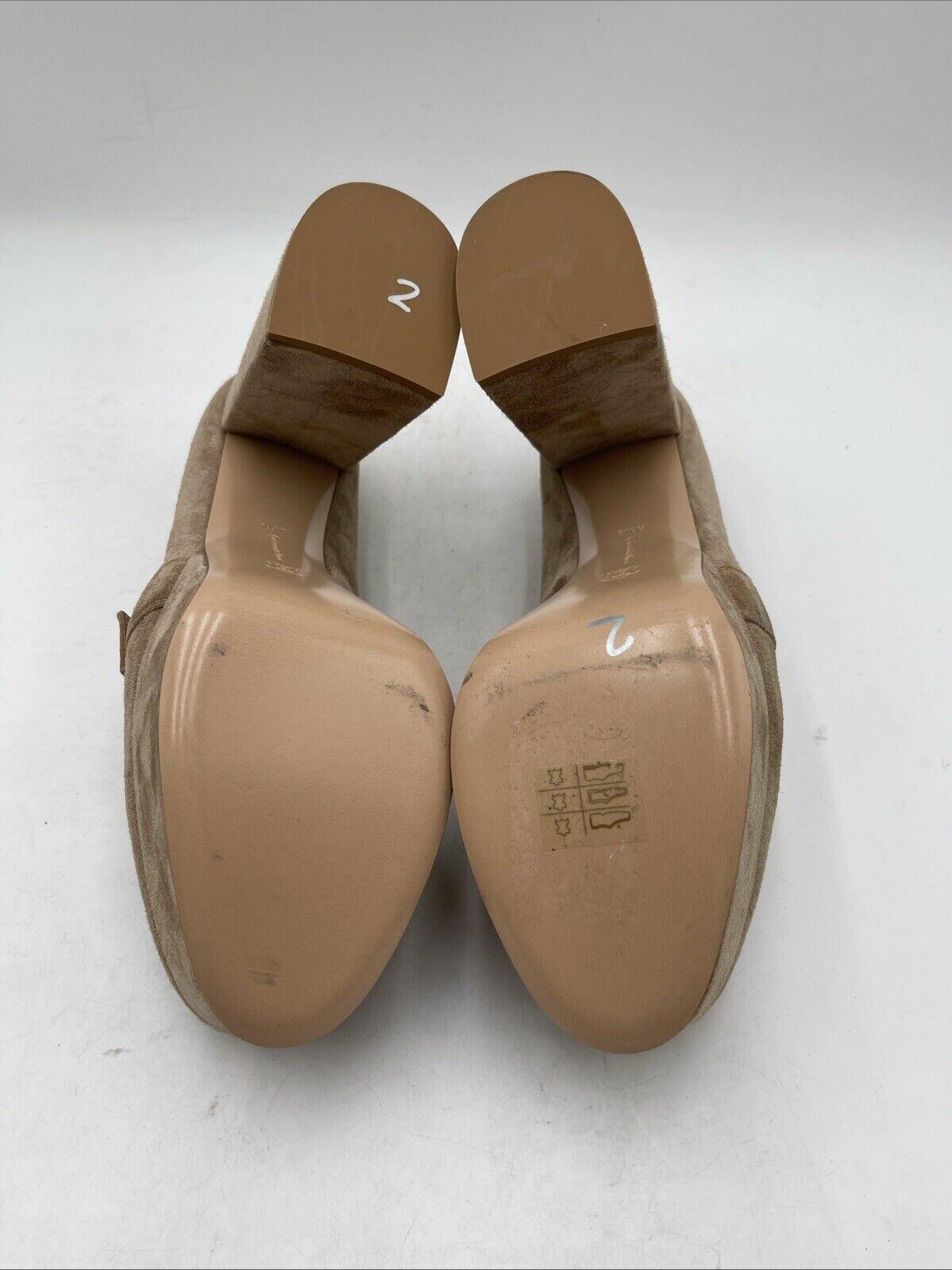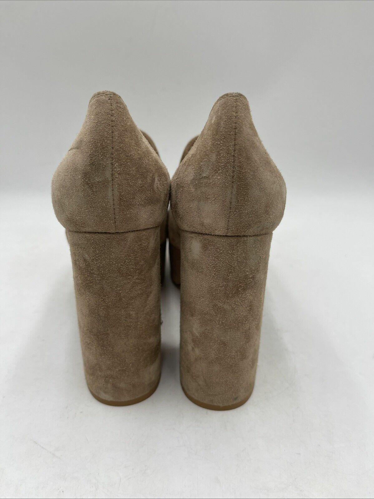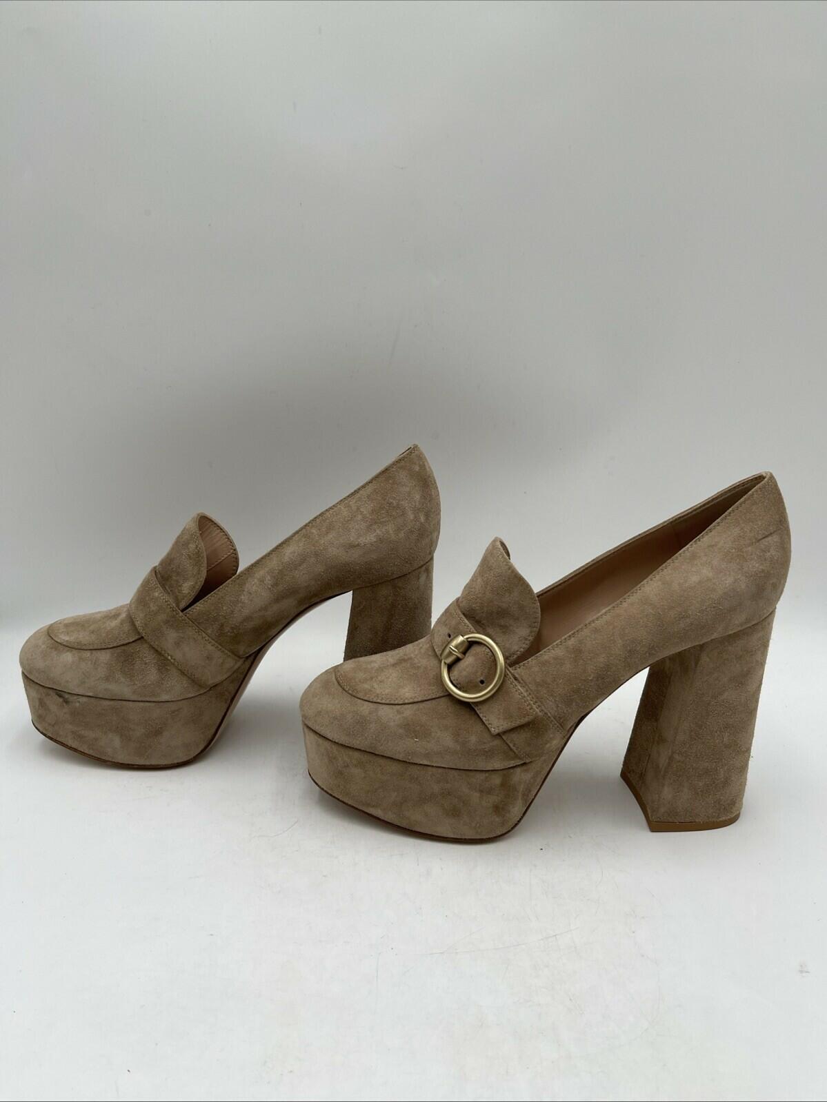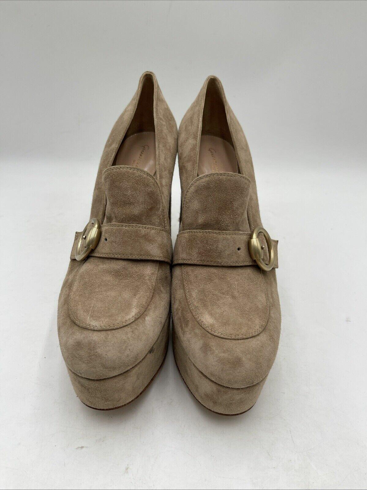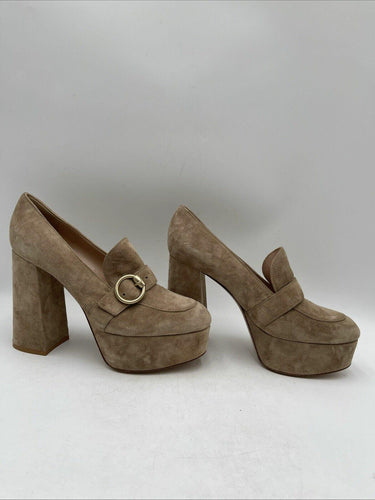 Gianvito Rossi Beige Suede Round Toe Block Heel Platform Loafers Women Size 40.5 - Very Good
