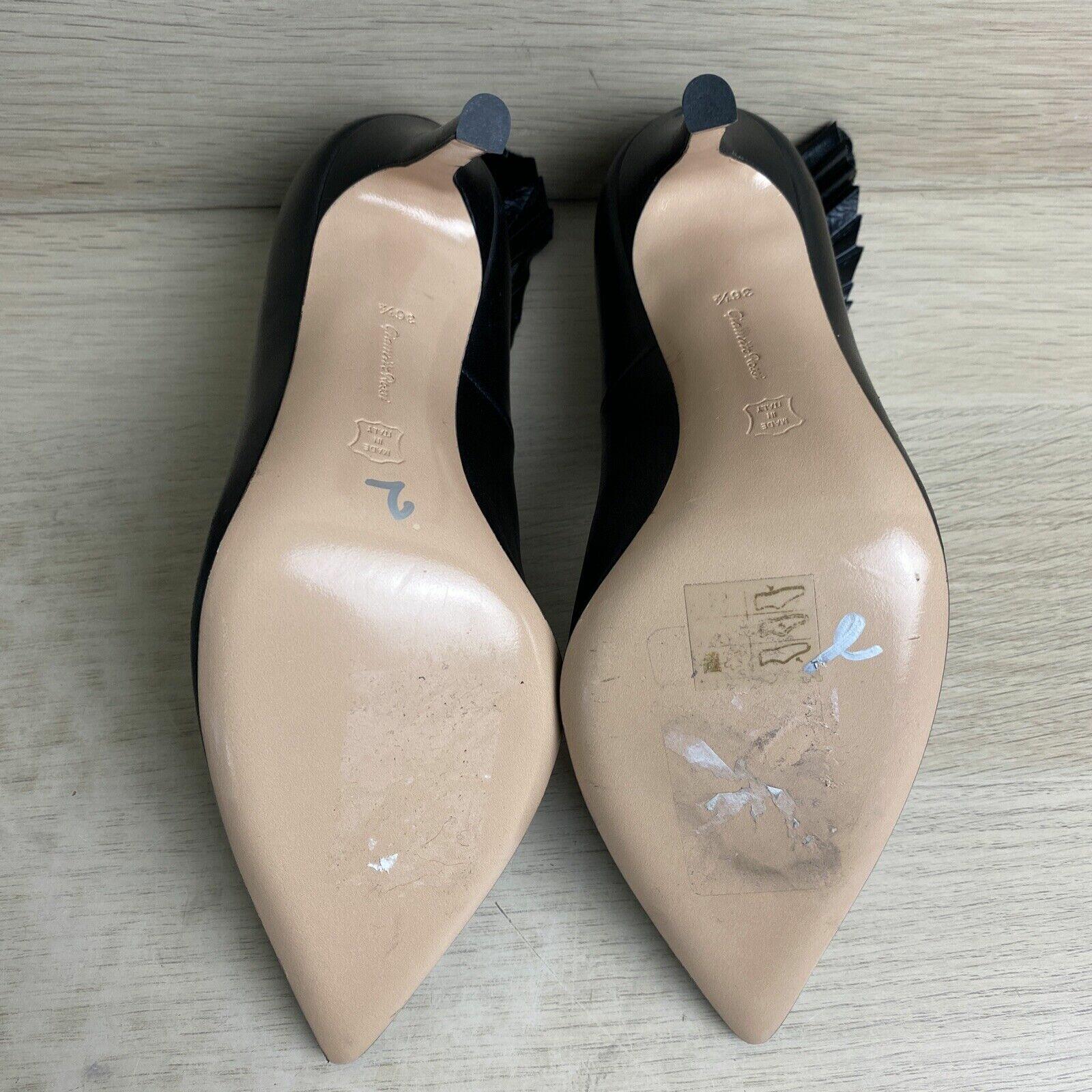 Gianvito Rossi Black Leather Flared Detail Point Toe Slip On Pumps, Women’s 36.5 - Very Good