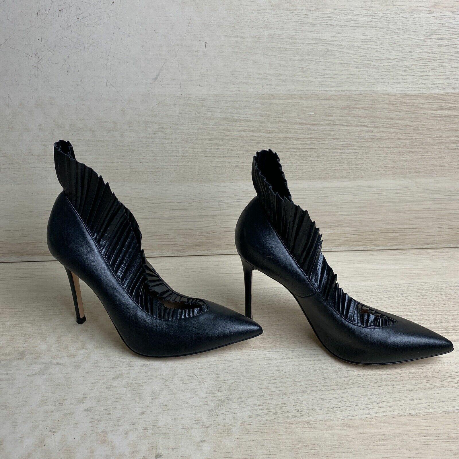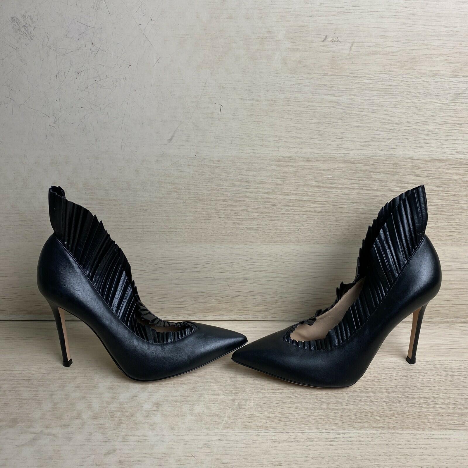 Gianvito Rossi Black Leather Flared Detail Point Toe Slip On Pumps, Women’s 36.5 - Very Good - Ufashion Gianvito Rossi Black Leather Flared Detail Point Toe Slip On Pumps, Women’s 36.5 - Very Good - Ufashion
