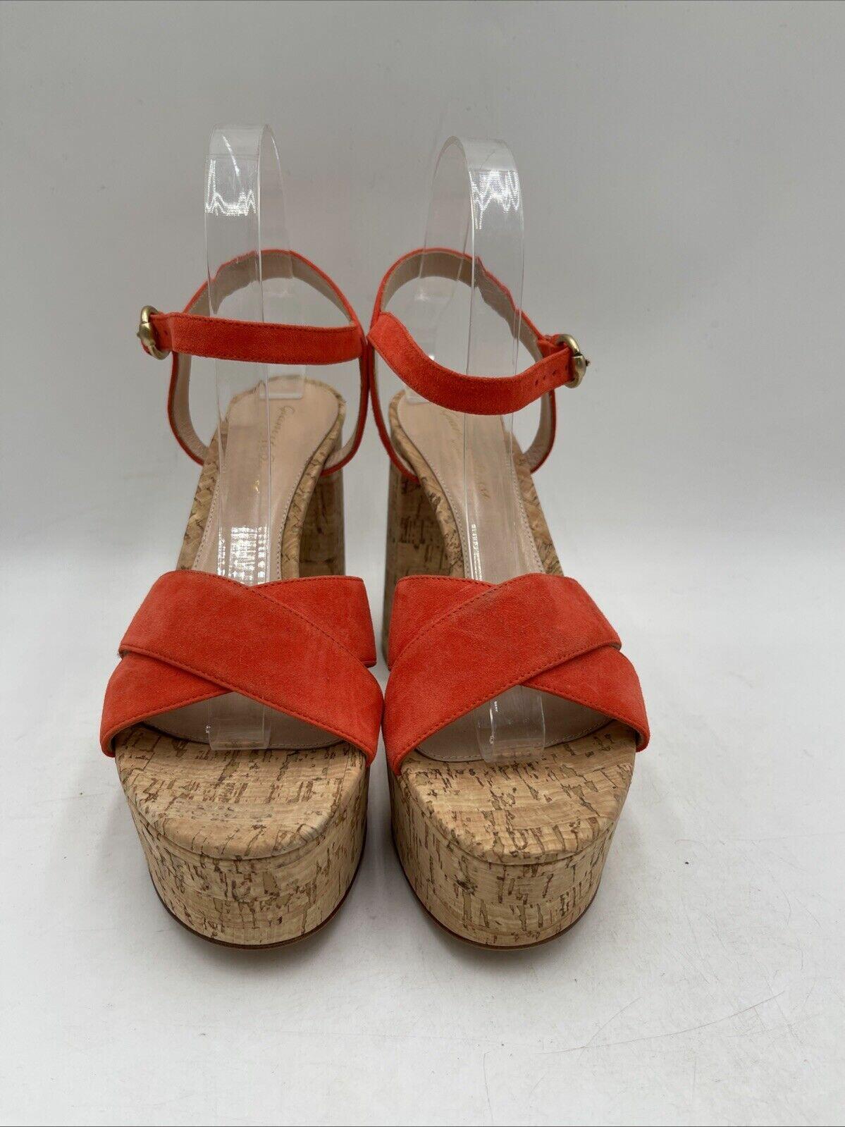 Gianvito Rossi Red Suede & Cork Open Toe Ankle Strap Platform Sandals Women 38 - Very Good