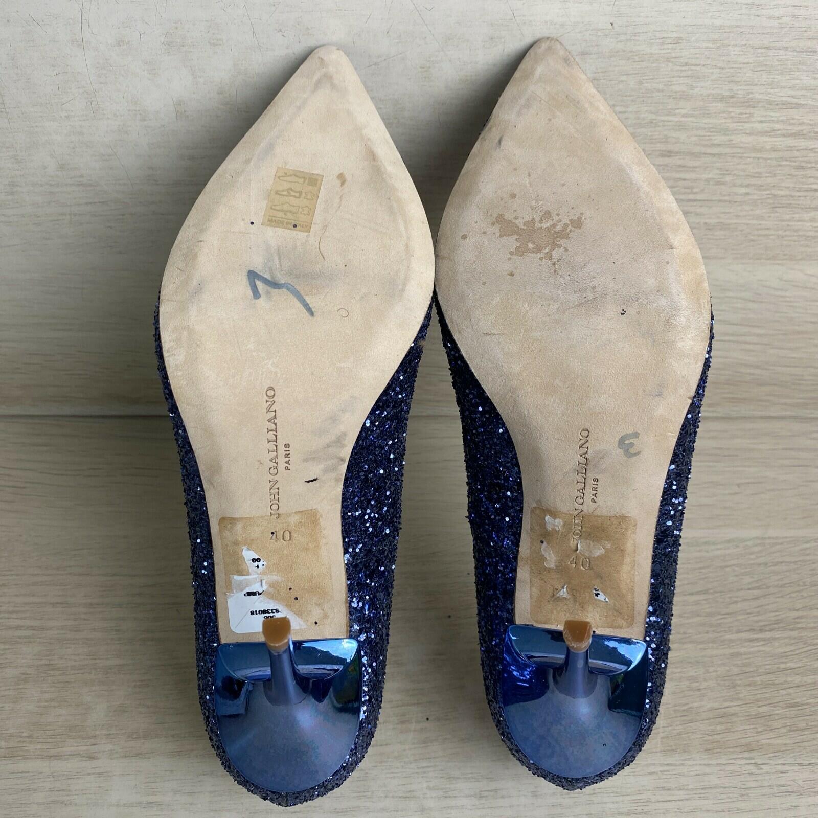 JOHN GALLIANO Blue Metallic Point Toe Slip On Glitter Pumps, Womens Size 40 - Very Good - Ufashion JOHN GALLIANO Blue Metallic Point Toe Slip On Glitter Pumps, Womens Size 40 - Very Good - Ufashion