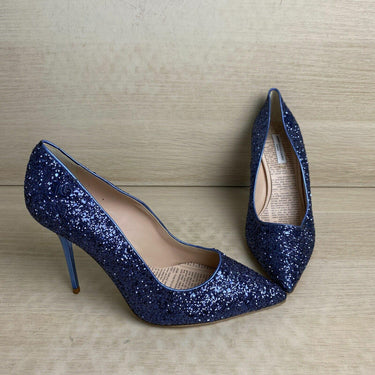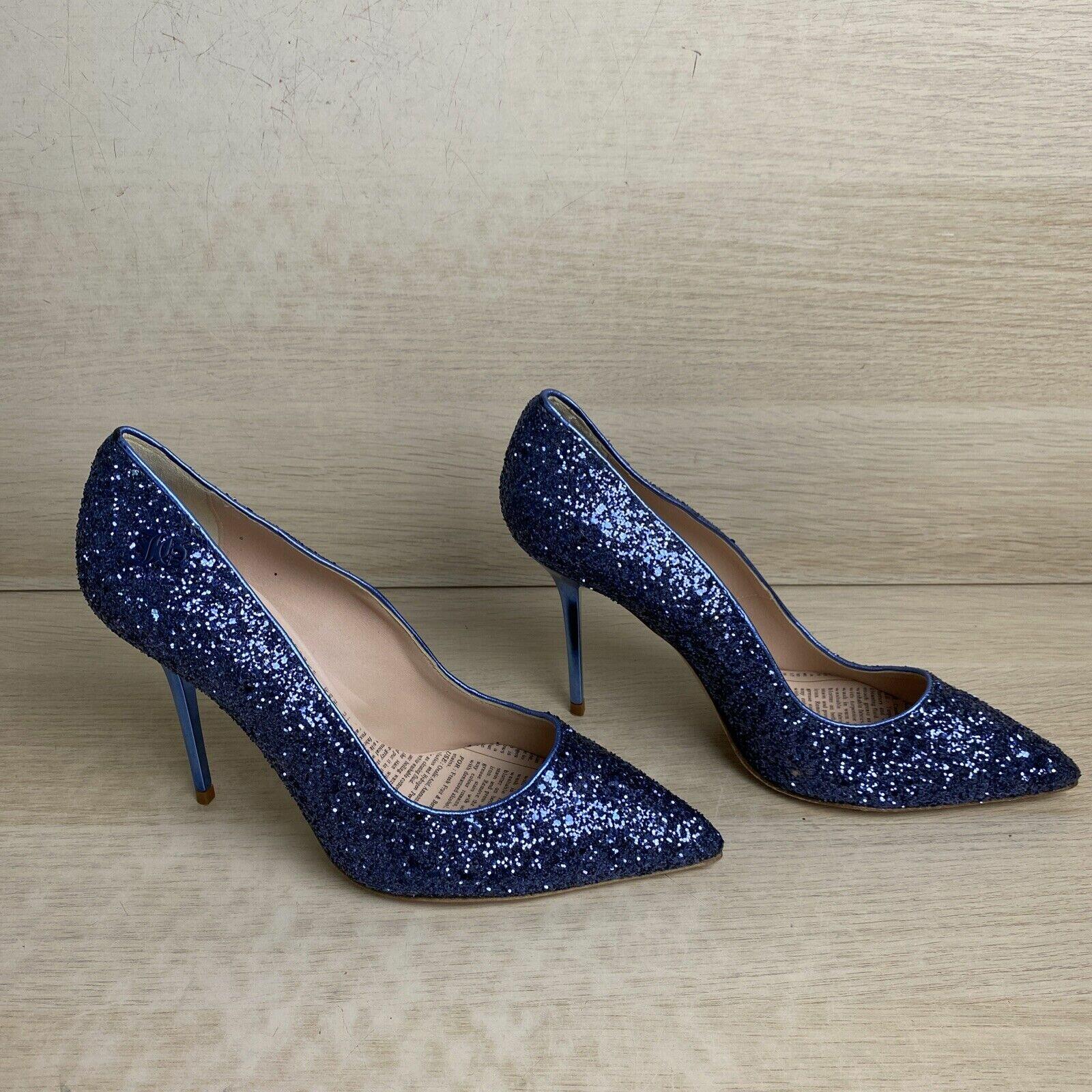 JOHN GALLIANO Blue Metallic Point Toe Slip On Glitter Pumps, Womens Size 40 - Very Good - Ufashion