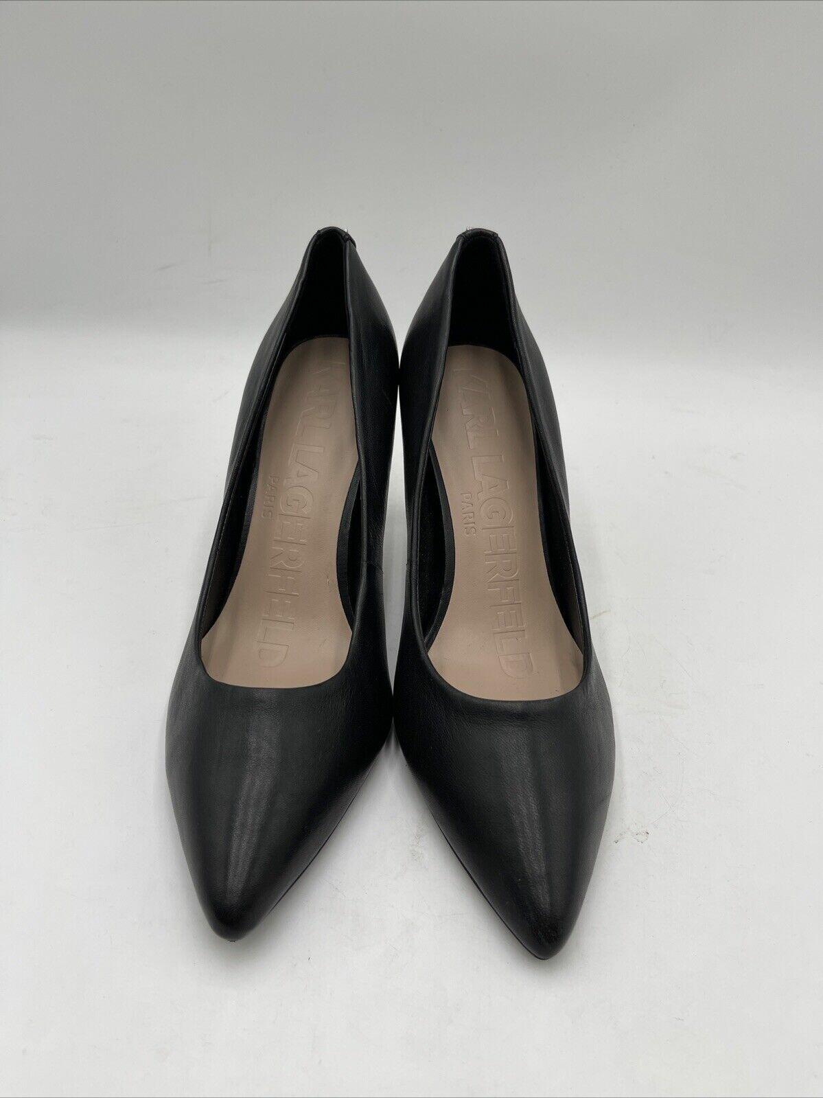 Karl Lagerfeld GLORA Black Leather Point Toe Slip On High Heel Pumps Size 6M/36 - Very Good