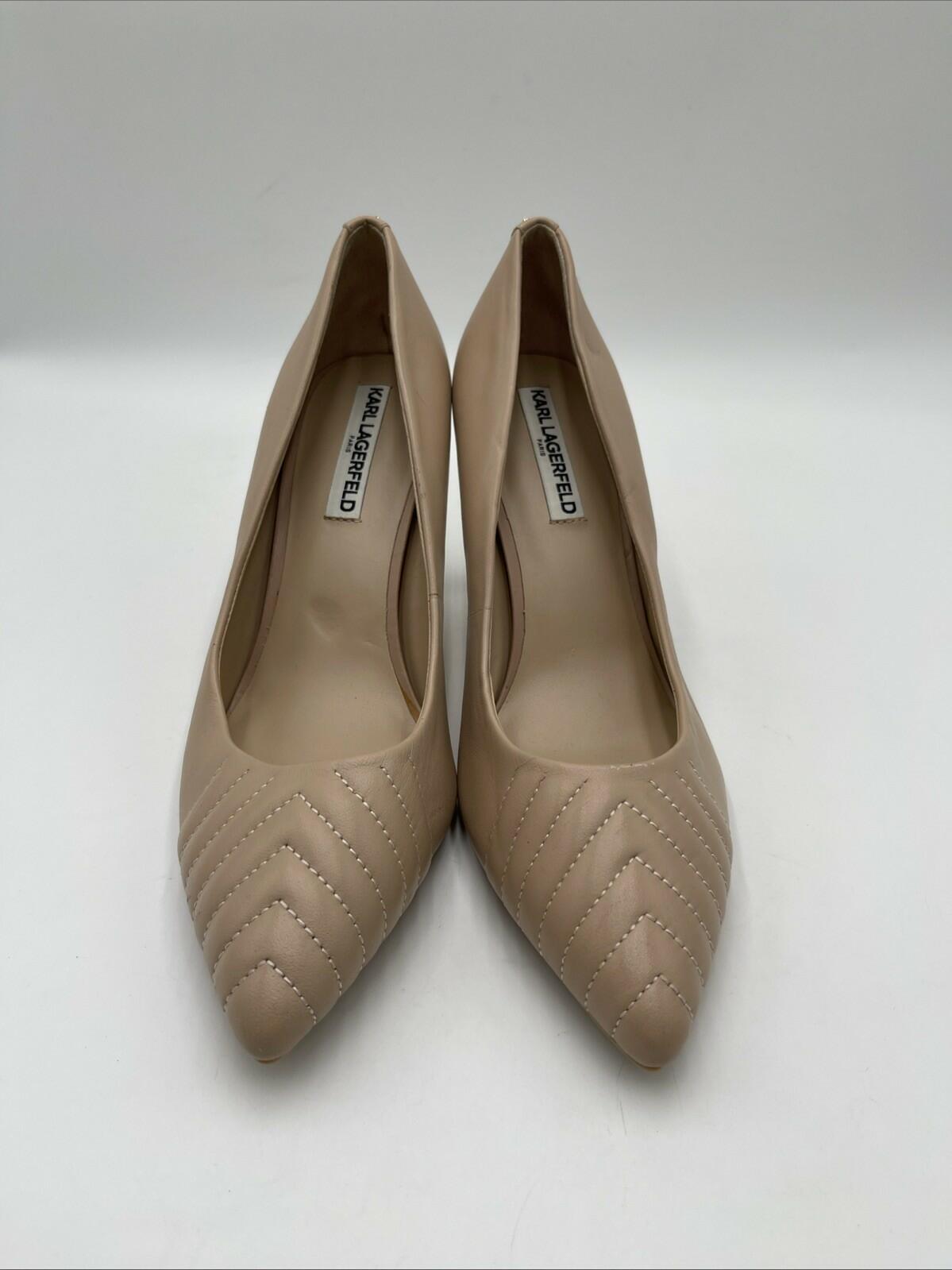 Karl Lagerfeld ROULLE Beige Leather Pointy Toe Slip On High Heels Women’s 10M/41 - Very Good - Ufashion