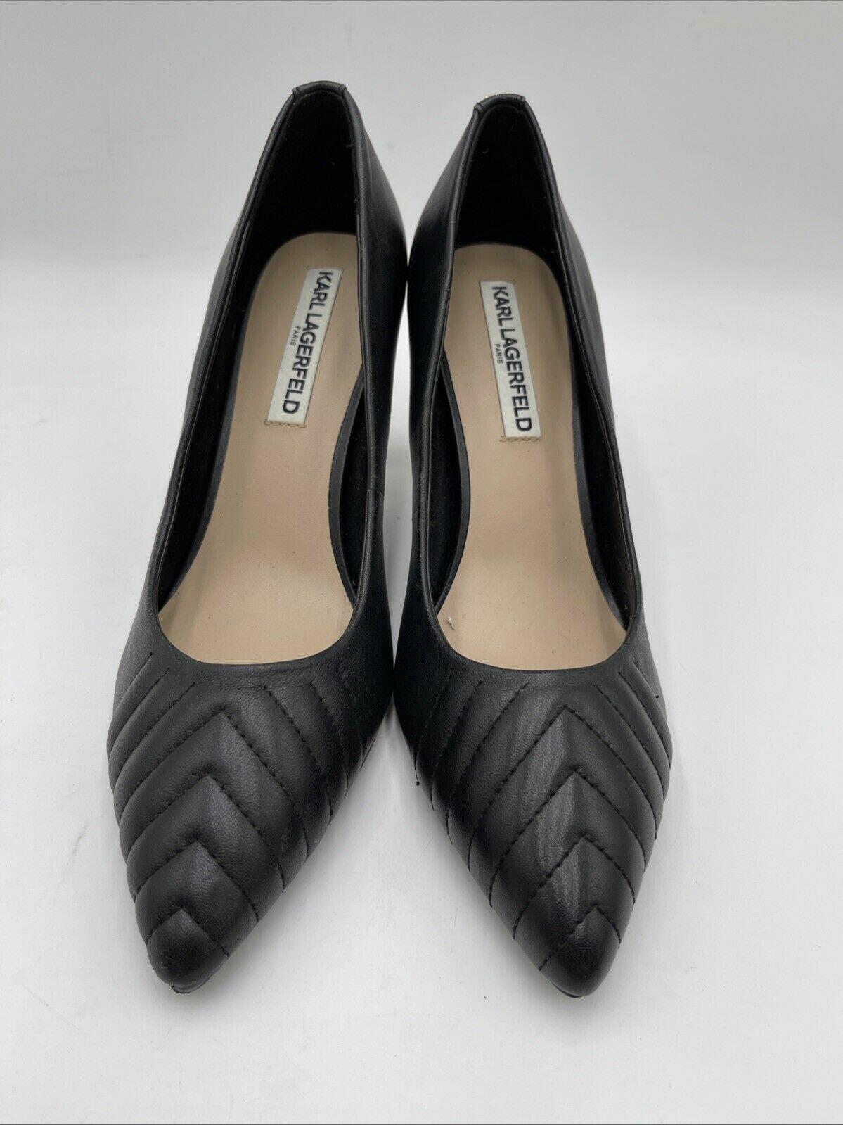 Karl Lagerfeld ROULLE Black Leather Pointy Toe Slip On High Heels Womens 8M/38.5 - Very Good - Ufashion Karl Lagerfeld ROULLE Black Leather Pointy Toe Slip On High Heels Womens 8M/38.5 - Very Good - Ufashion