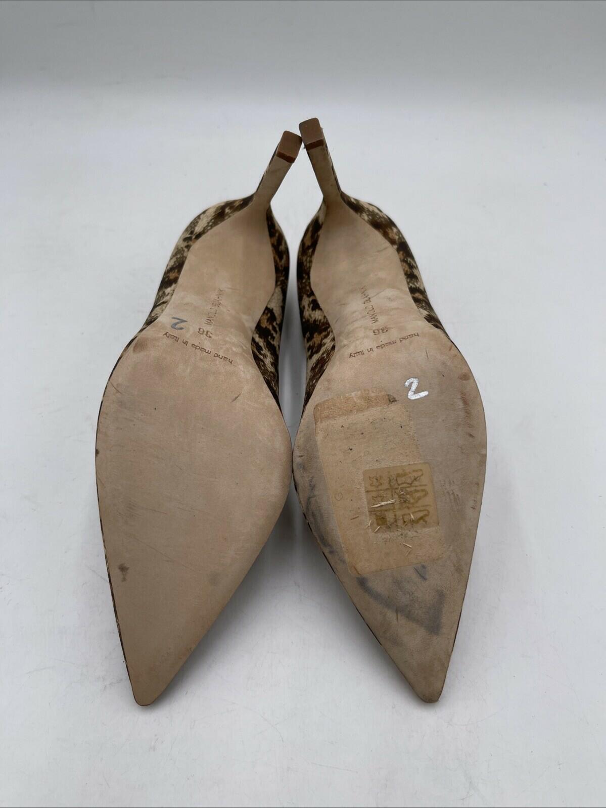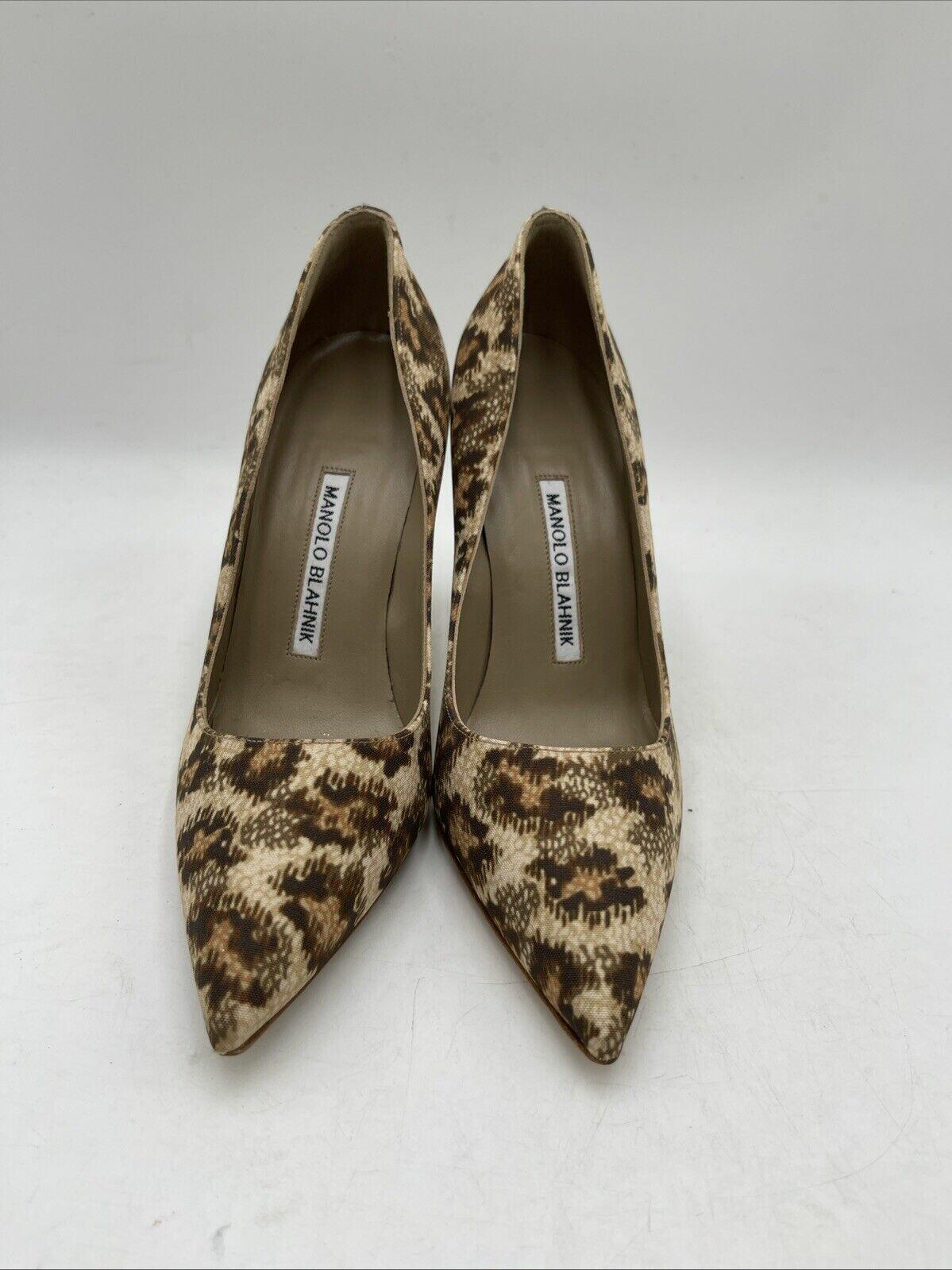 Manolo Blahnik BB 105 Leopard Print Fabric Pointed Toe High Heels Womens Size 36 - Very Good