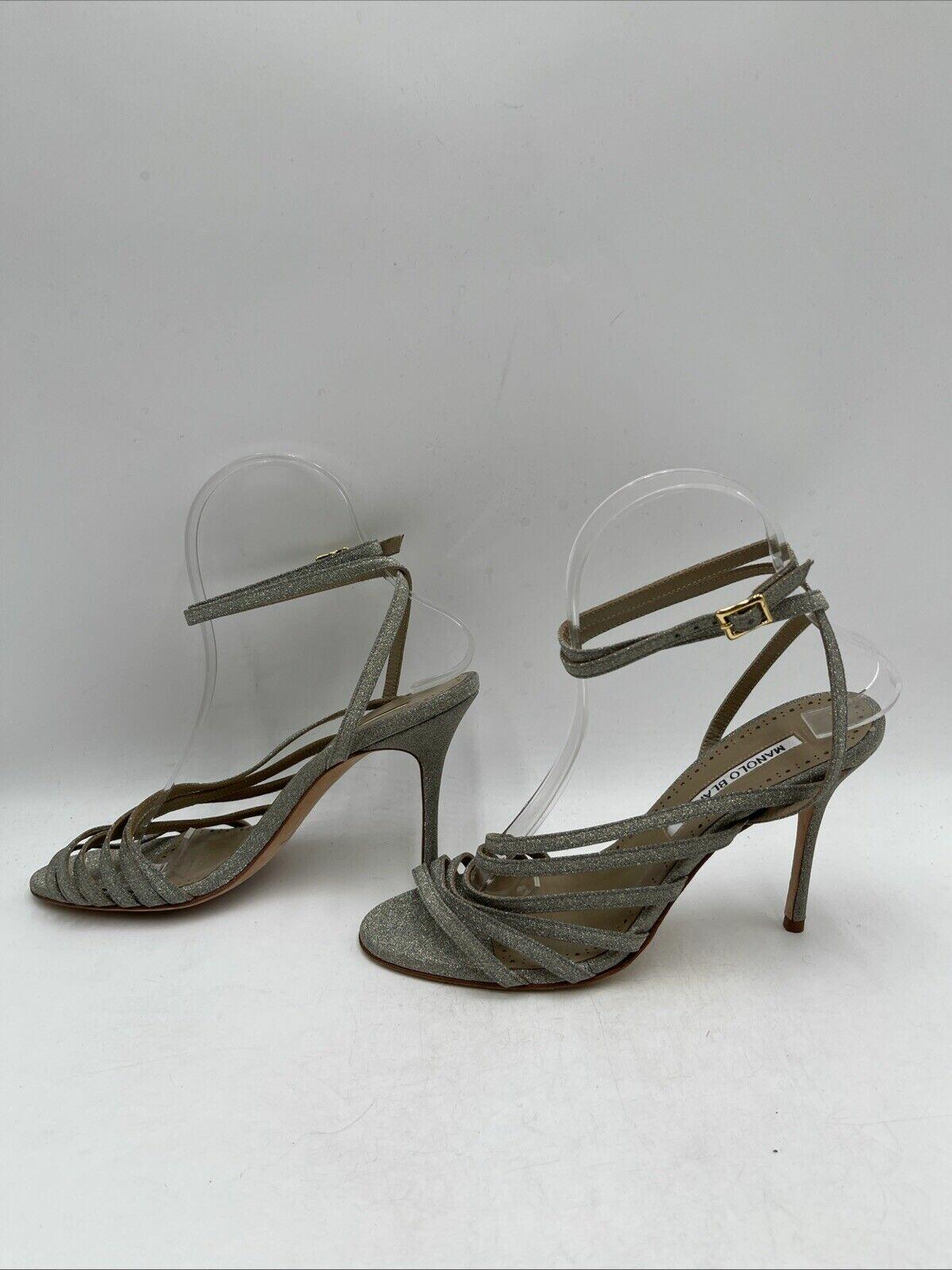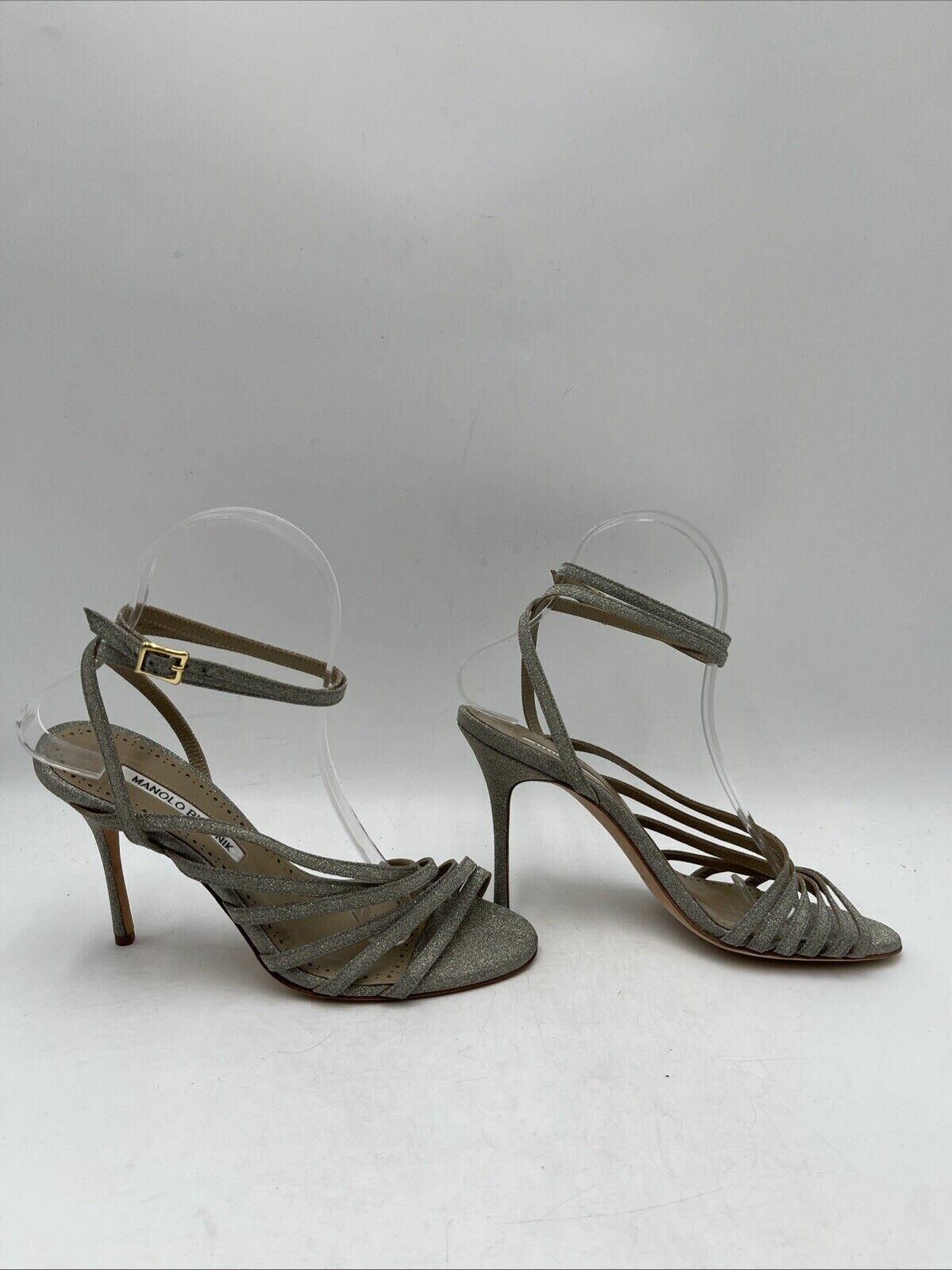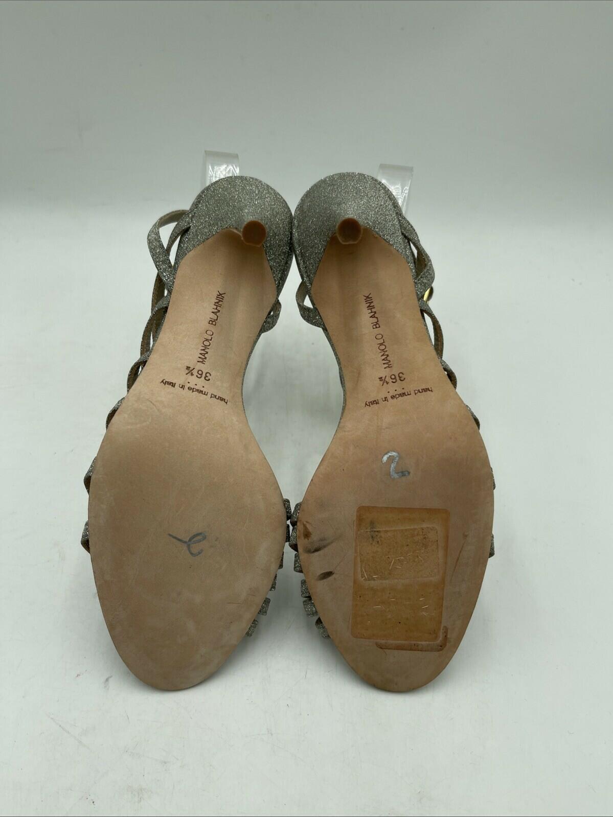 Manolo Blahnik Glitter Strappy Open Toe Ankle Strap High Heels Sandals 36.5 - Very Good