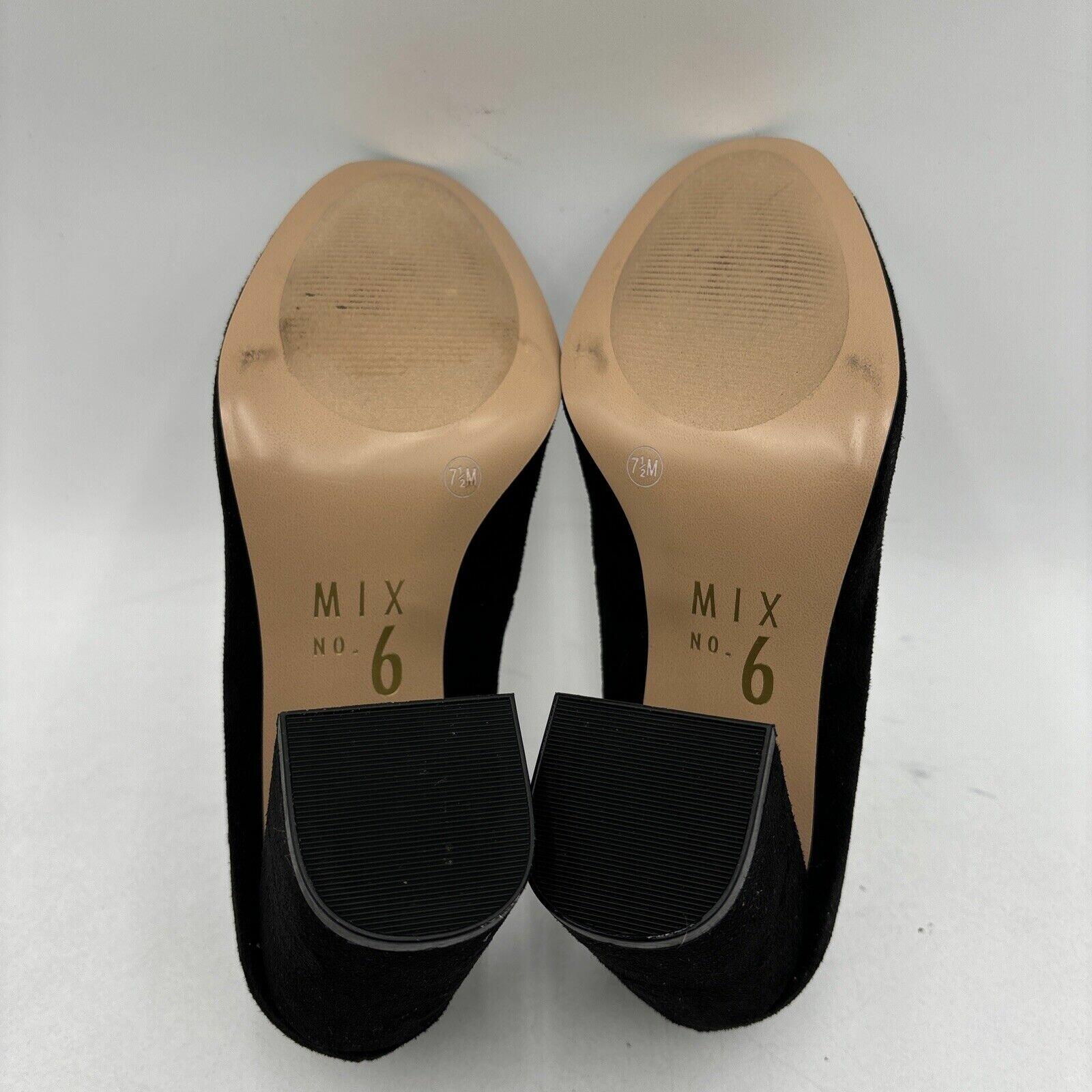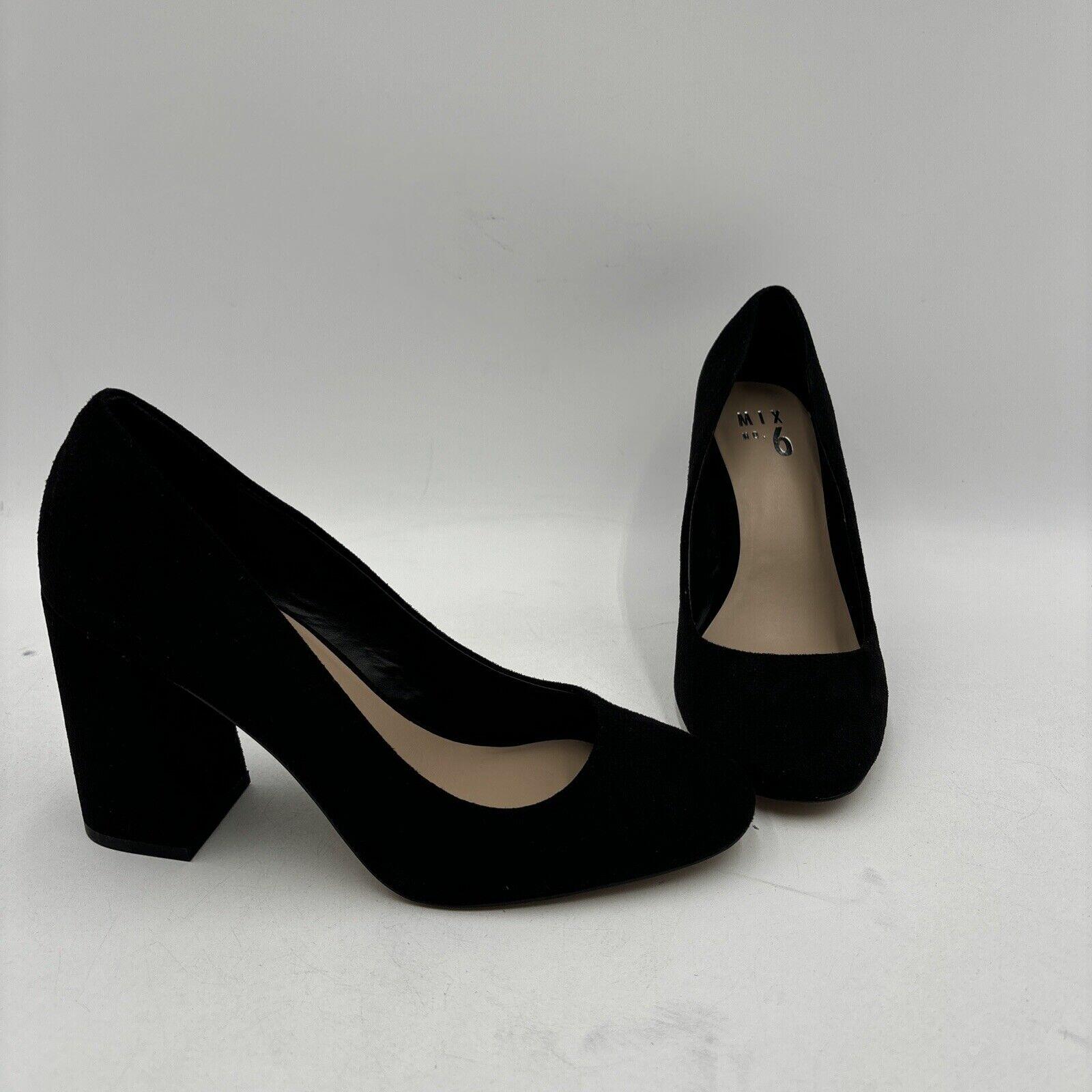 Elevate your shoe game with these stylish Mix No. 6 OMMI Black Textile Round Toe Block Heel Slip On Pumps. These designer pumps come in size 7.5M and feature a solid pattern, slip-on closure, and a high block heel measuring between 3-3.9 inches. The pumps are made with comfortable textile material and are perfect for any occasion.