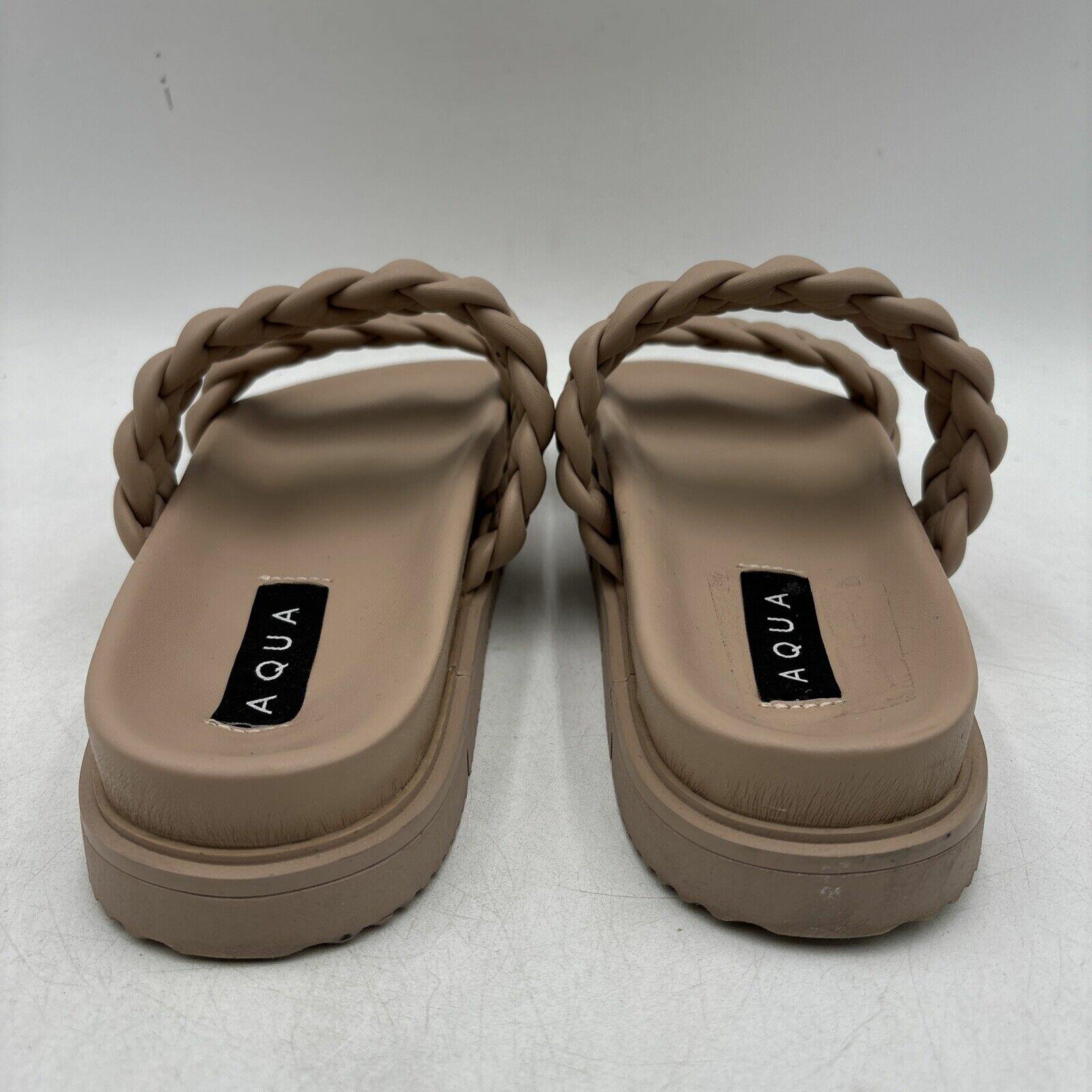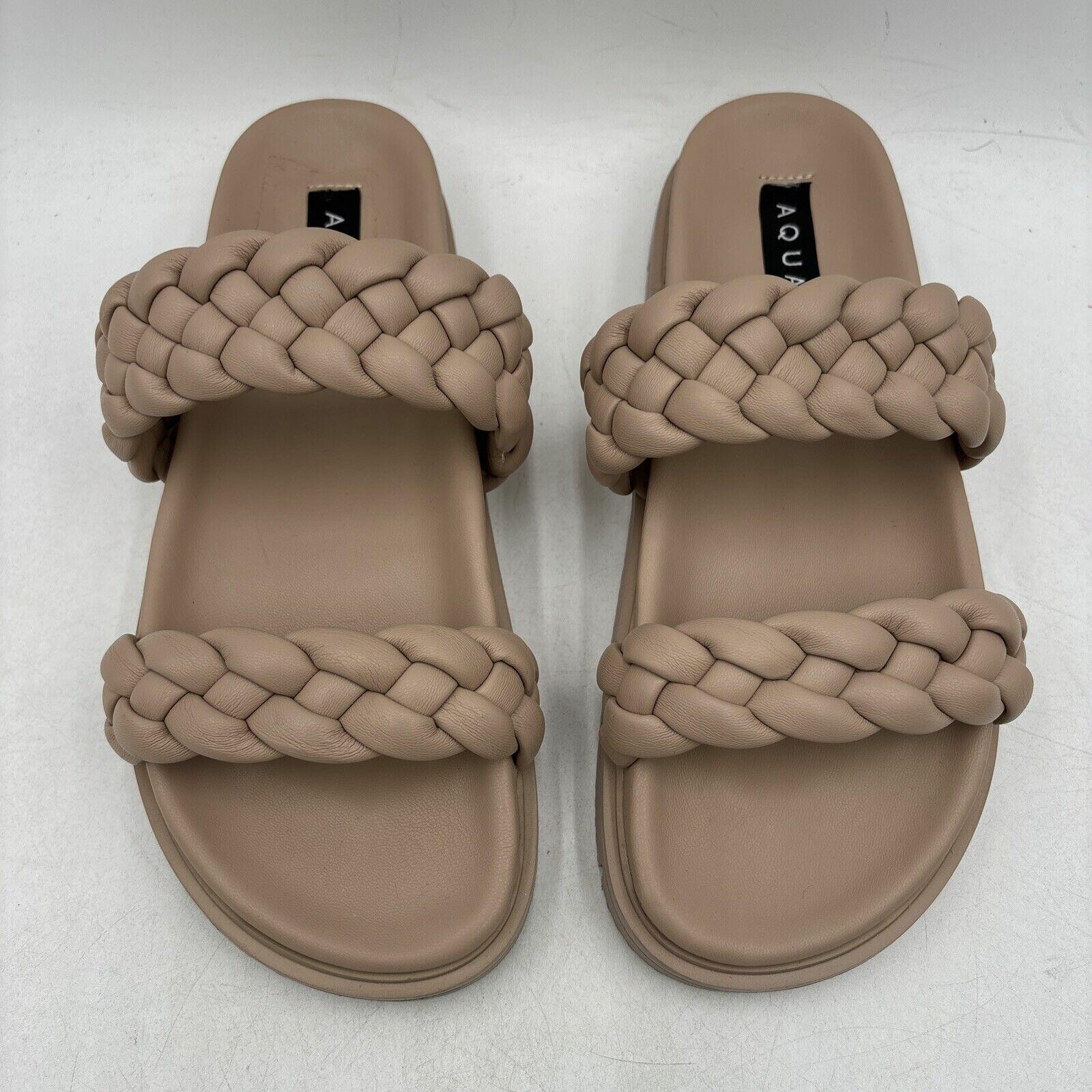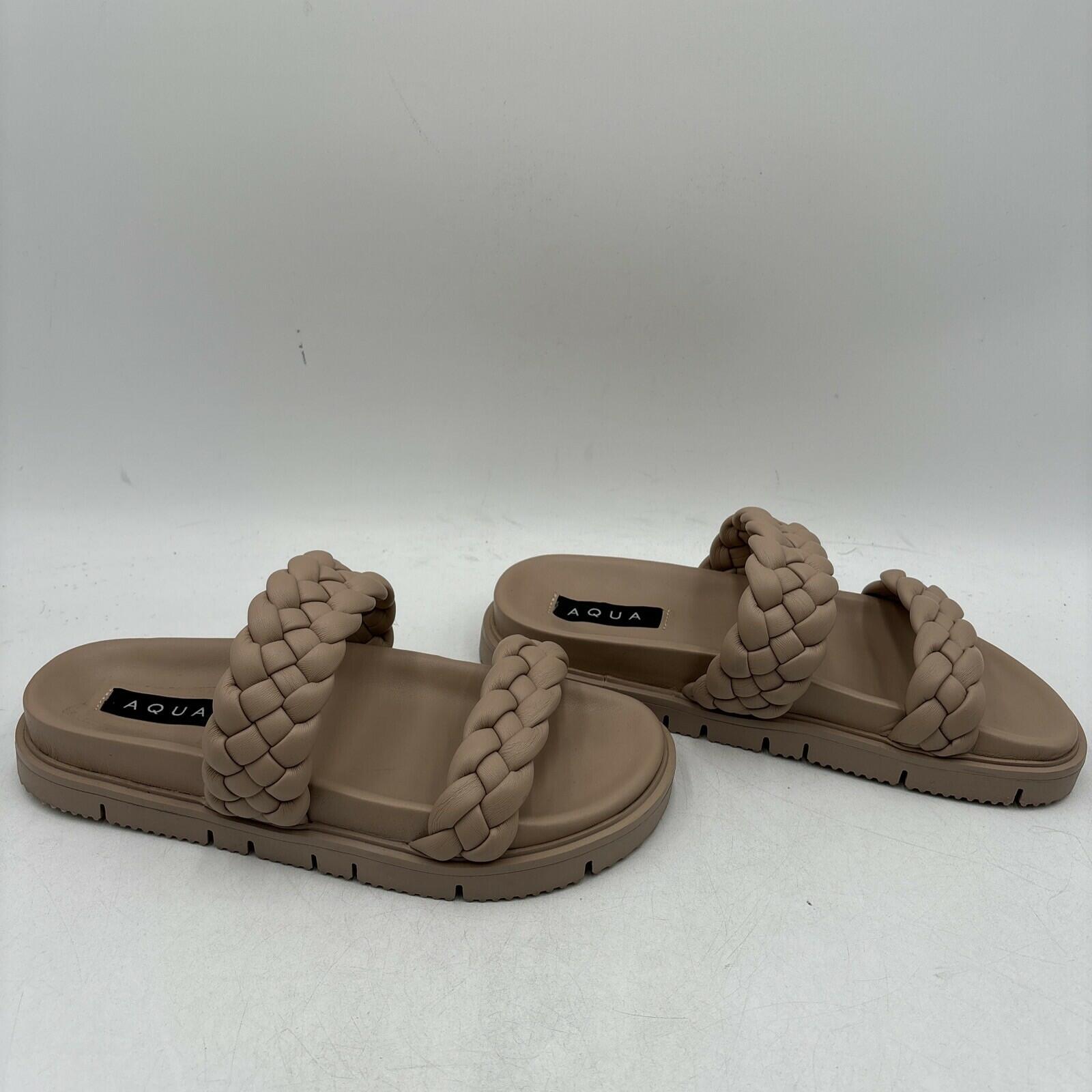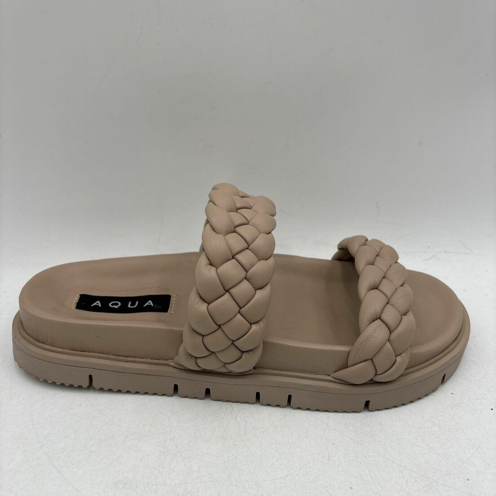 NWB AQUA Brade Nude Faux Leather Open Toe Two Strap Slip On Sandals, Size 8.5M - Ufashion