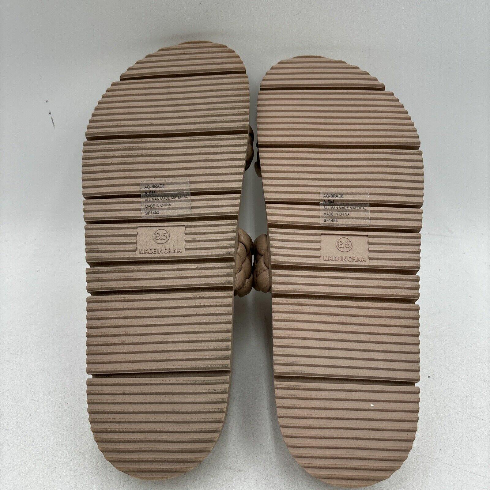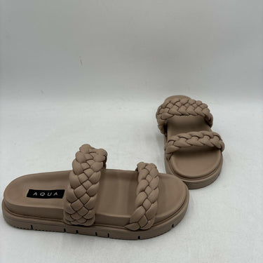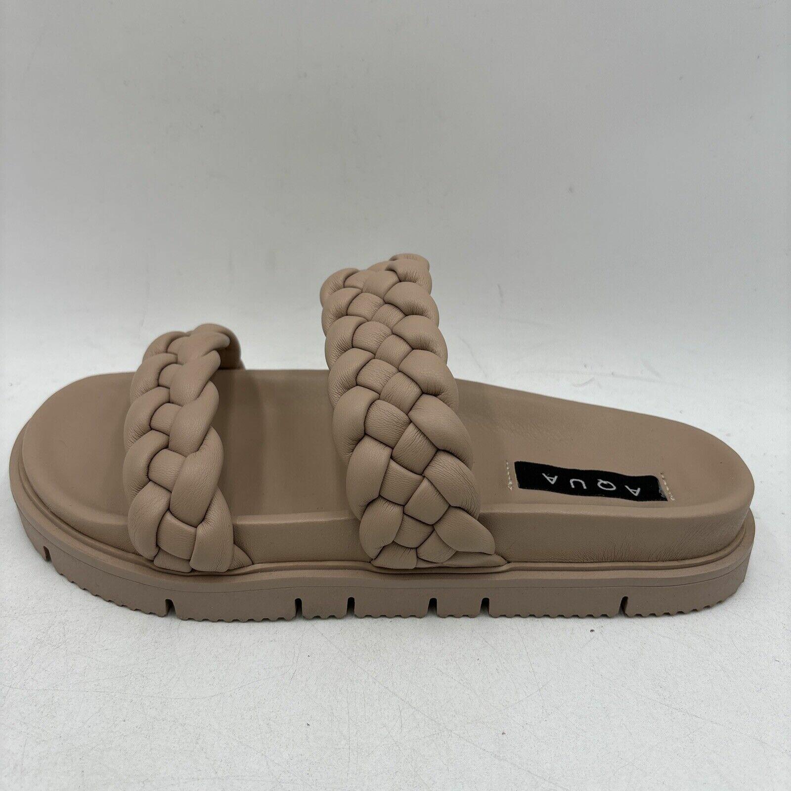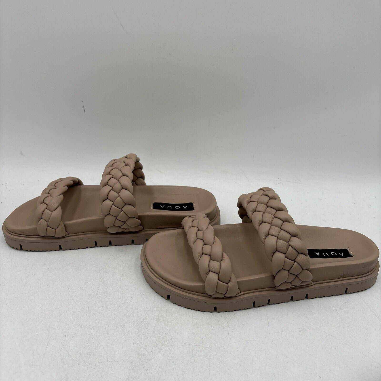 NWB AQUA Brade Nude Faux Leather Open Toe Two Strap Slip On Sandals, Size 8.5M - Ufashion