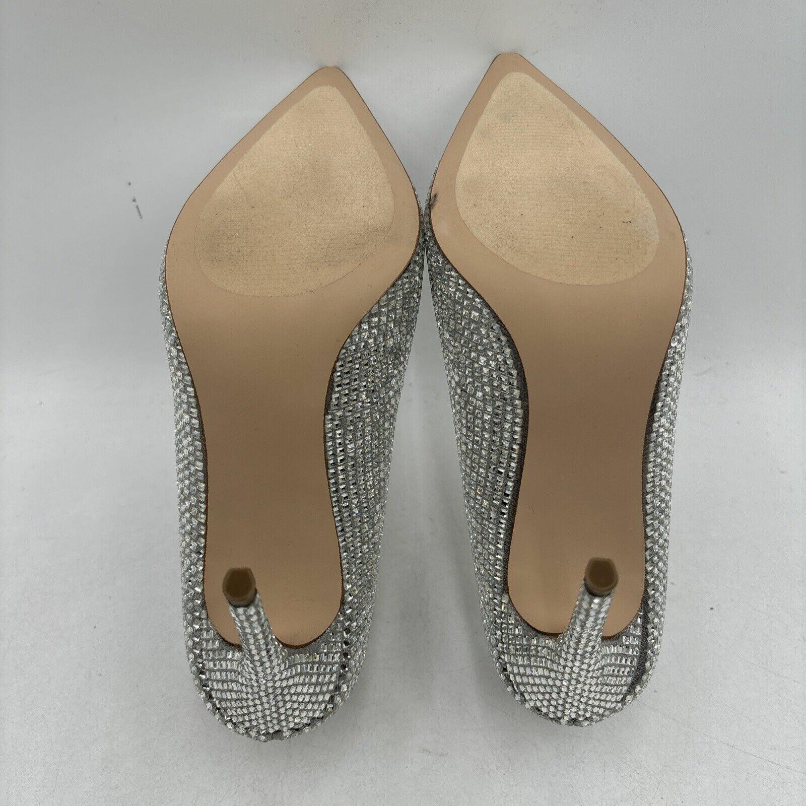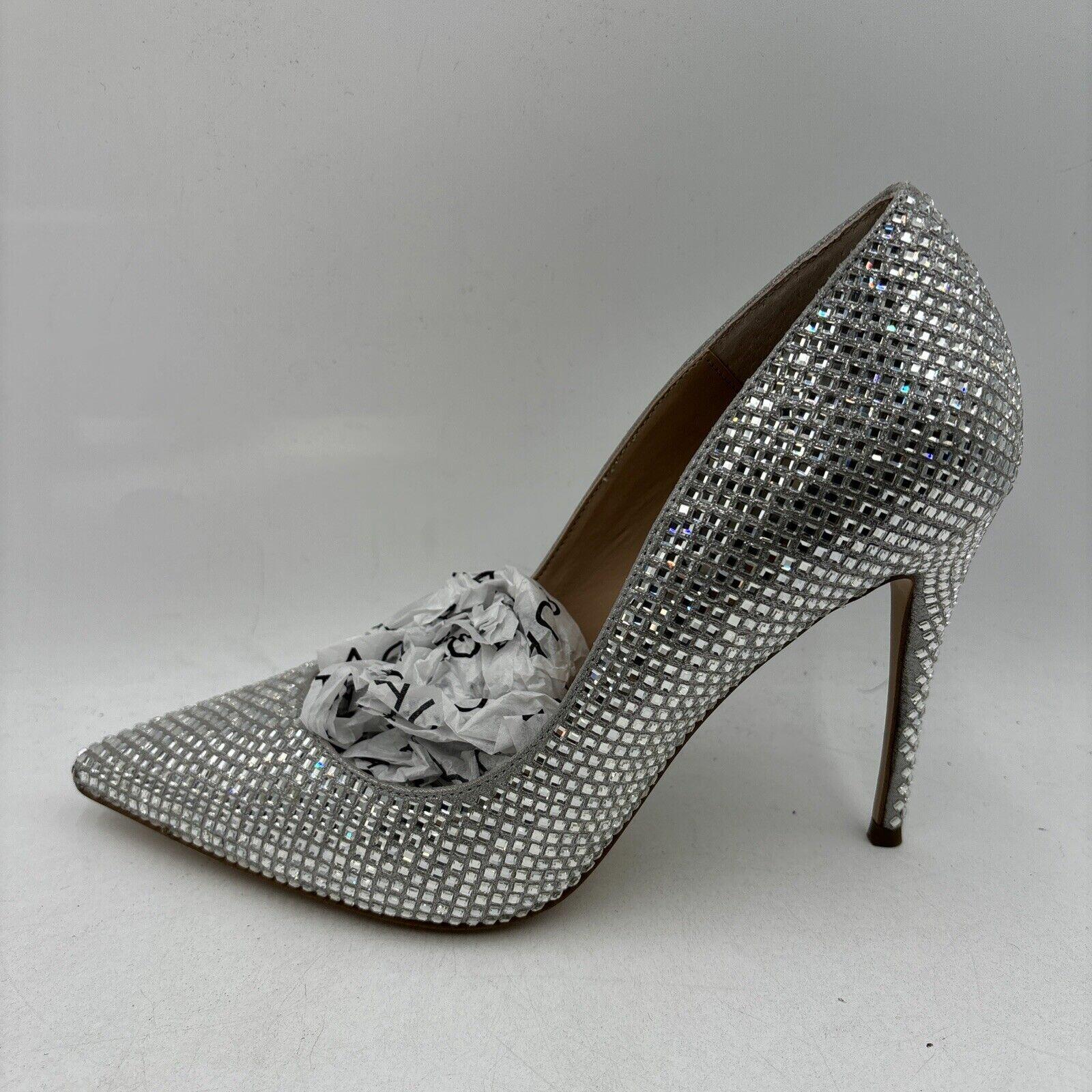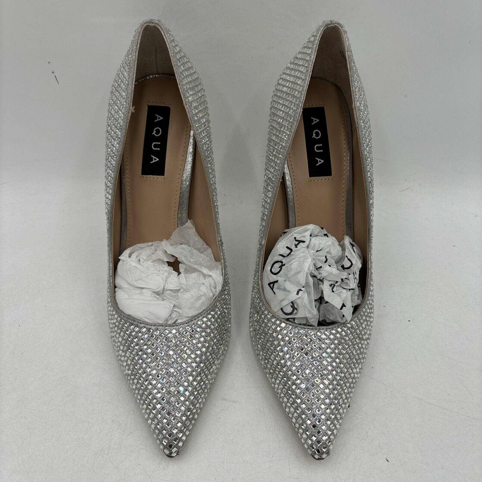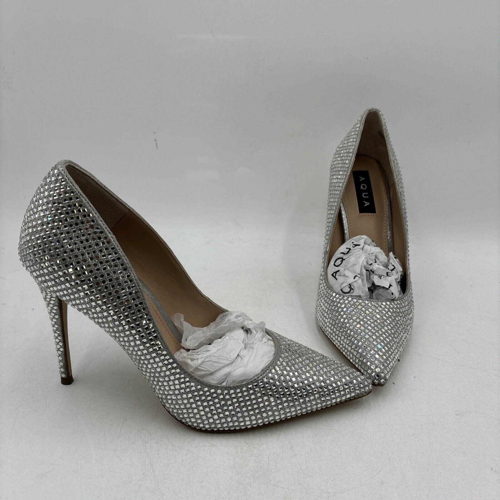 NWB AQUA Britr Silver Embellished Point Toe Slip On Stiletto High Heels, 10M