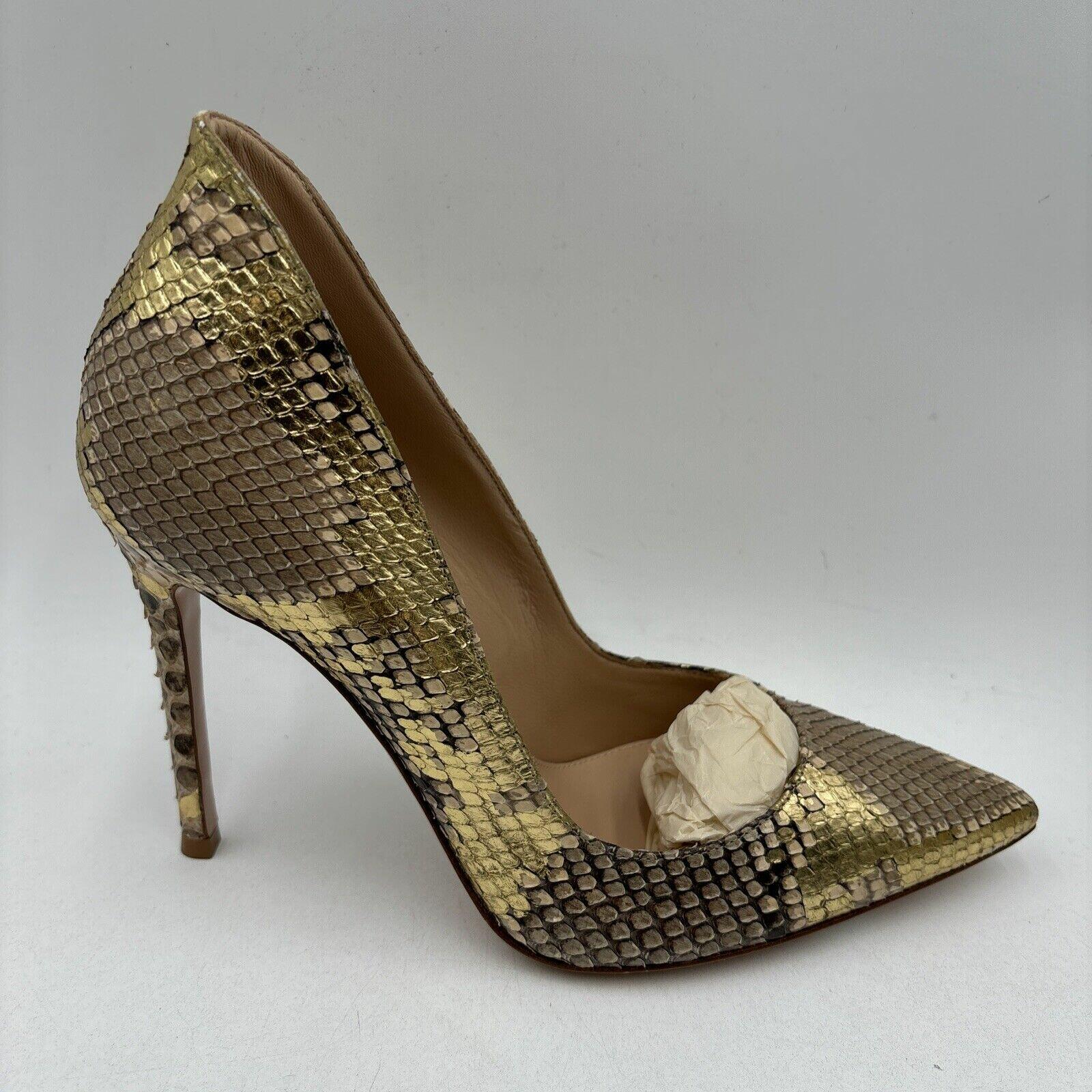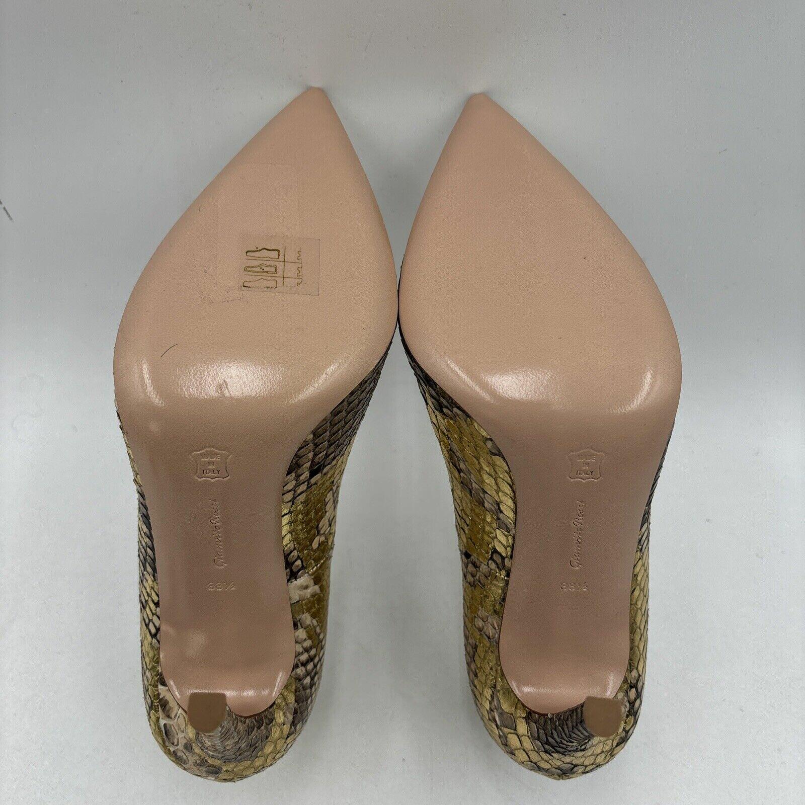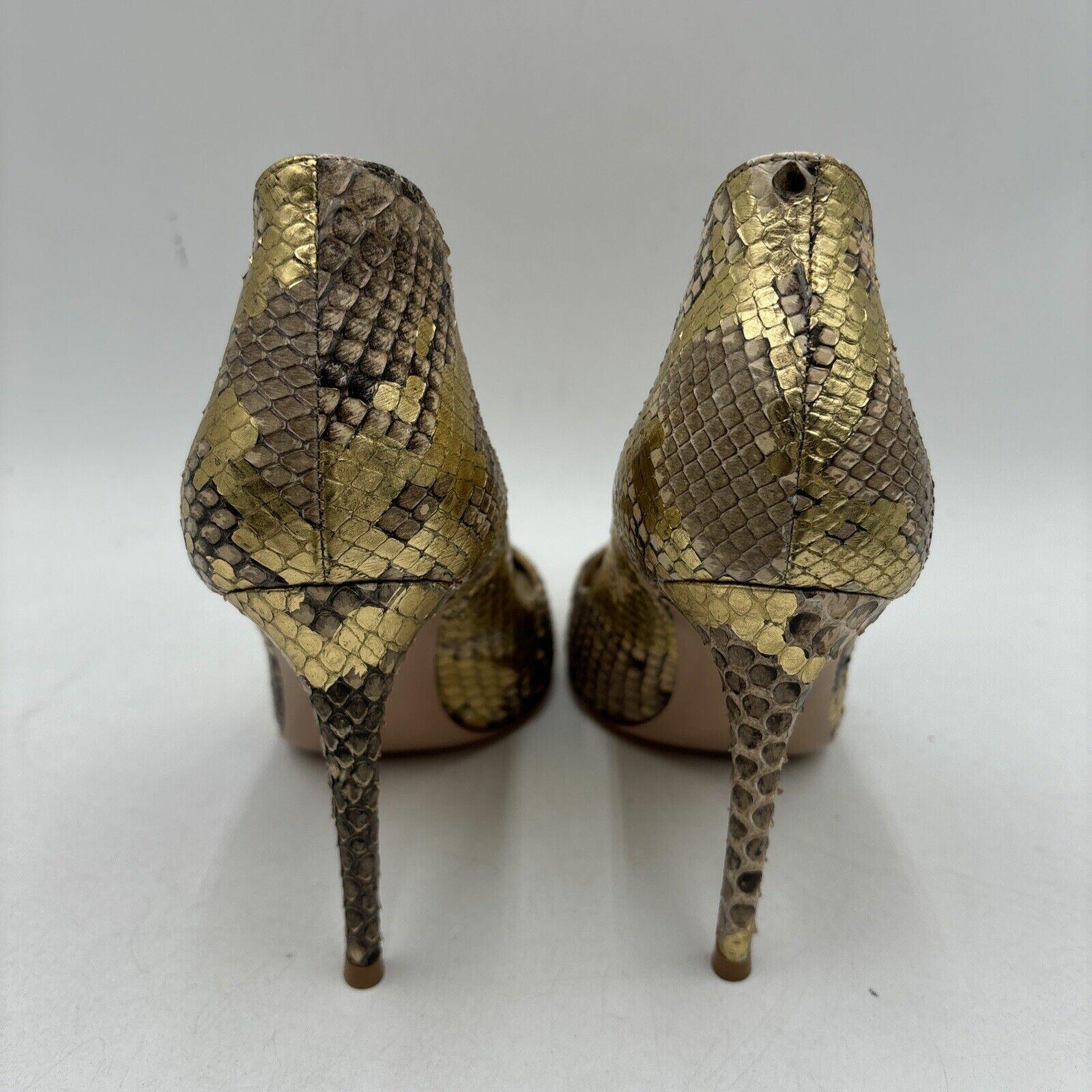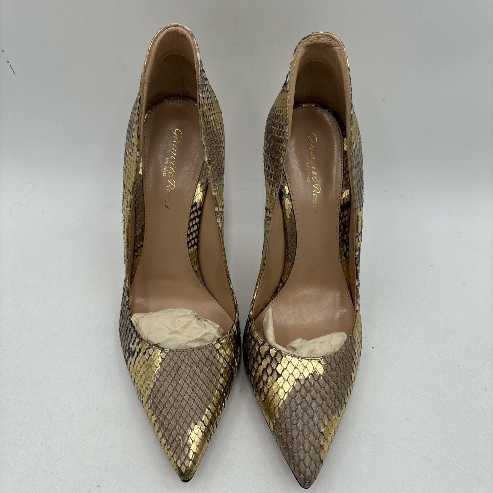 NWB Gianvito Rossi Gold Metallic Python Leather Point Toe Slip On High Heel 38.5