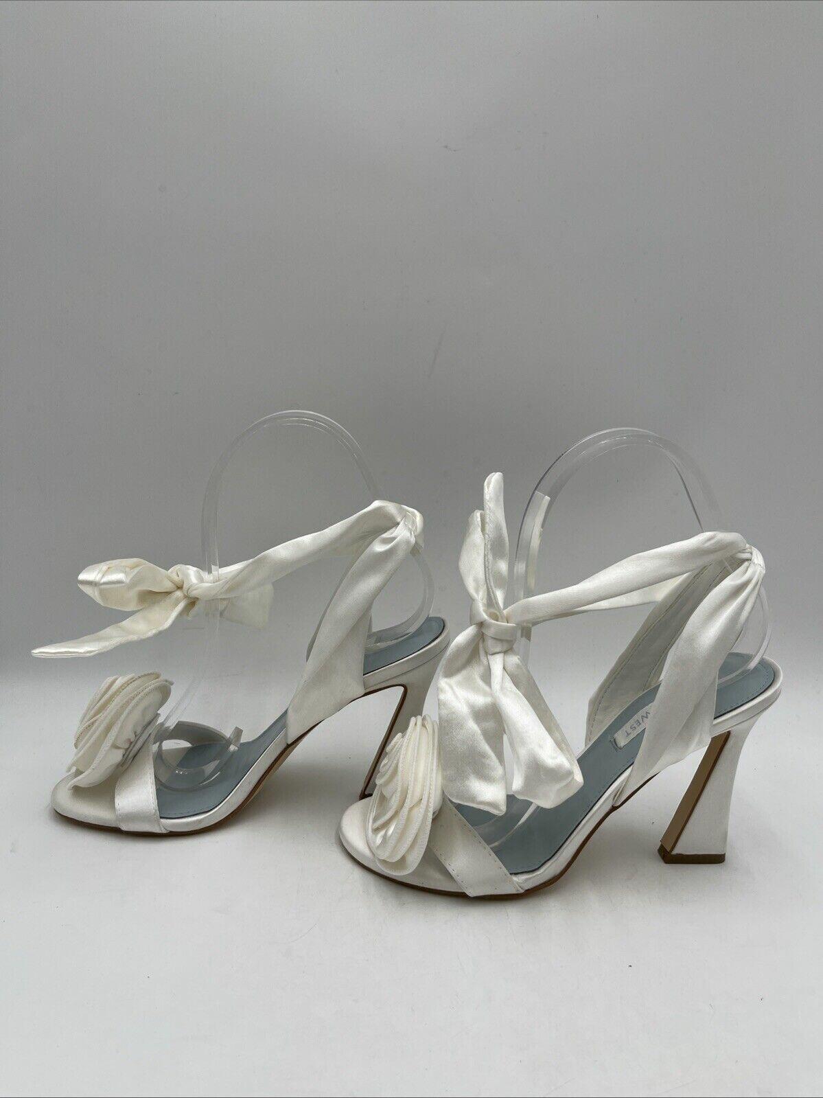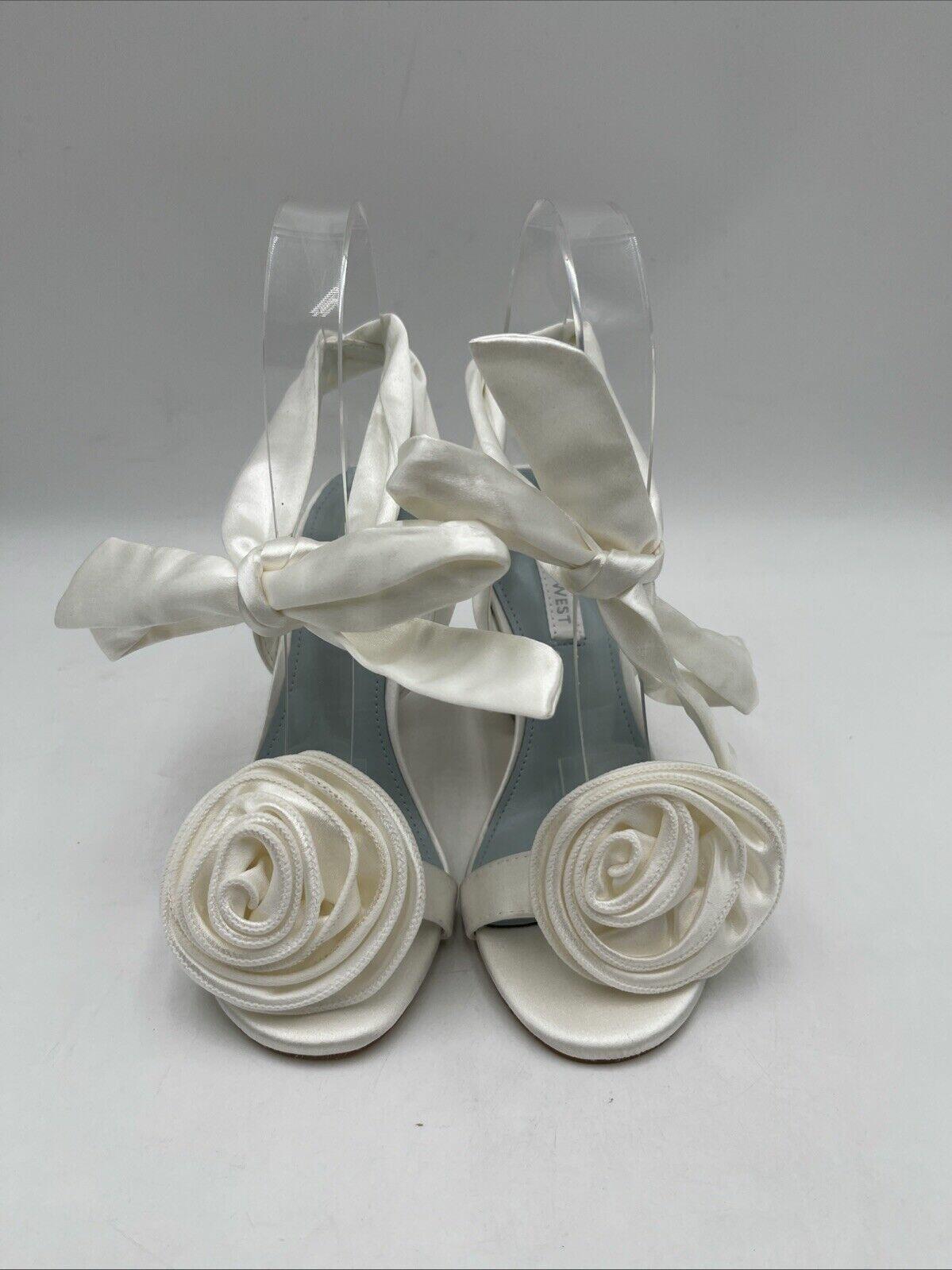 NWB Nine West Women's Krave Bridal Tapered Heel Dress Sandals White Size 5M