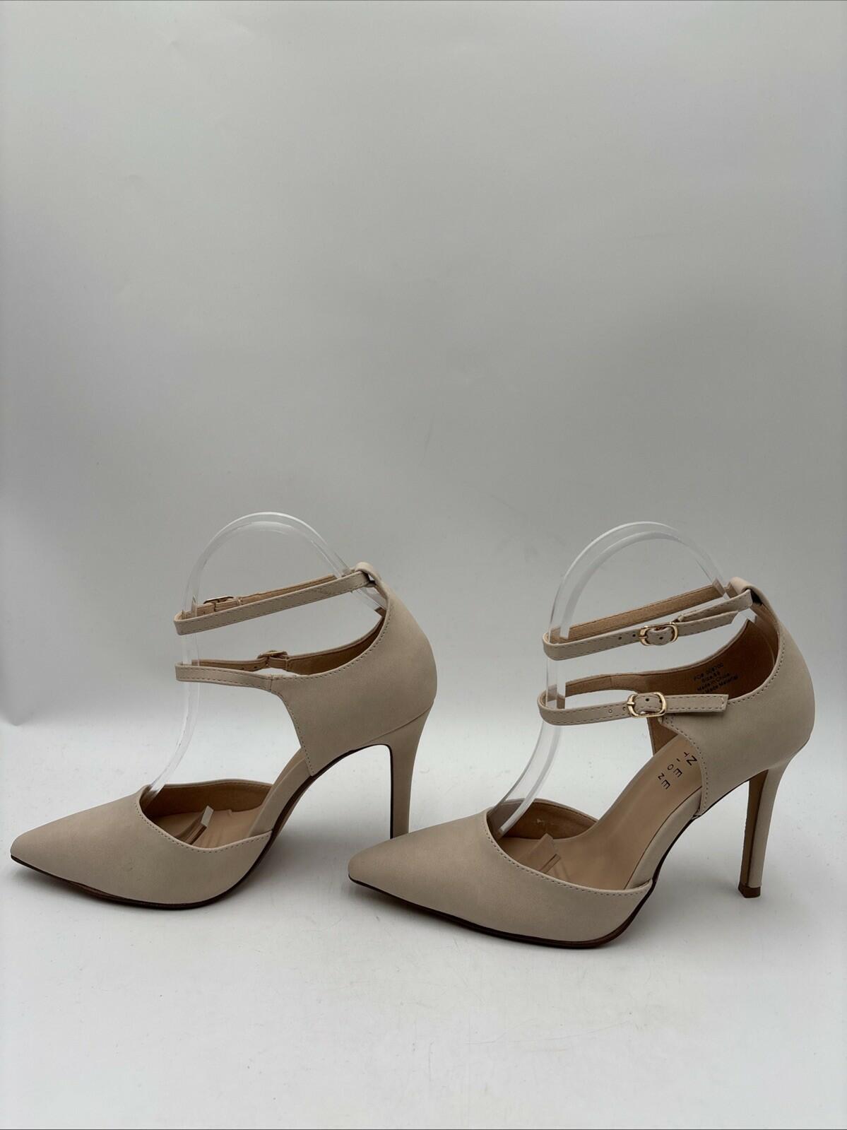 NWOB Journee Collection Lilyann Multi Strap Stiletto Pointed Toe Pumps Beige 8.5