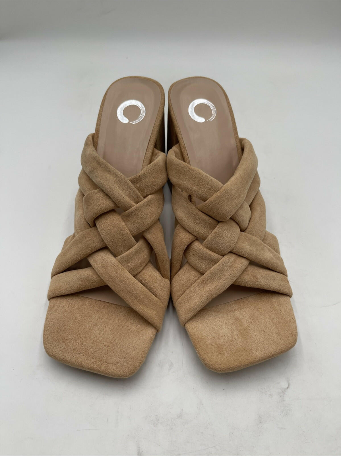 The NWOB Journee Collection Women's Dorisa Pumps in Tan are stylish heels for women in US shoe size 9.5. These pumps feature an open toe design with an ultra high heel height, making them perfect for adding a touch of sophistication to any outfit. The brown color and man-made upper material give these heels a versatile and chic look, ideal for a variety of occasions. Perfect for those who appreciate a solid-colored pump with a modern twist.D3