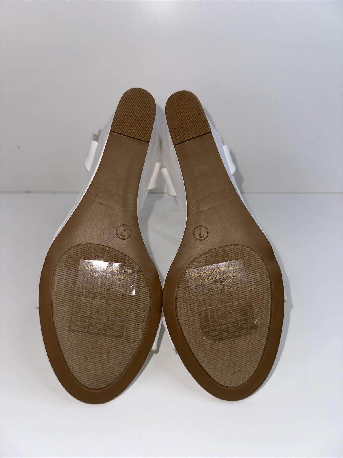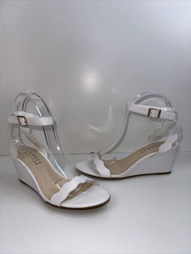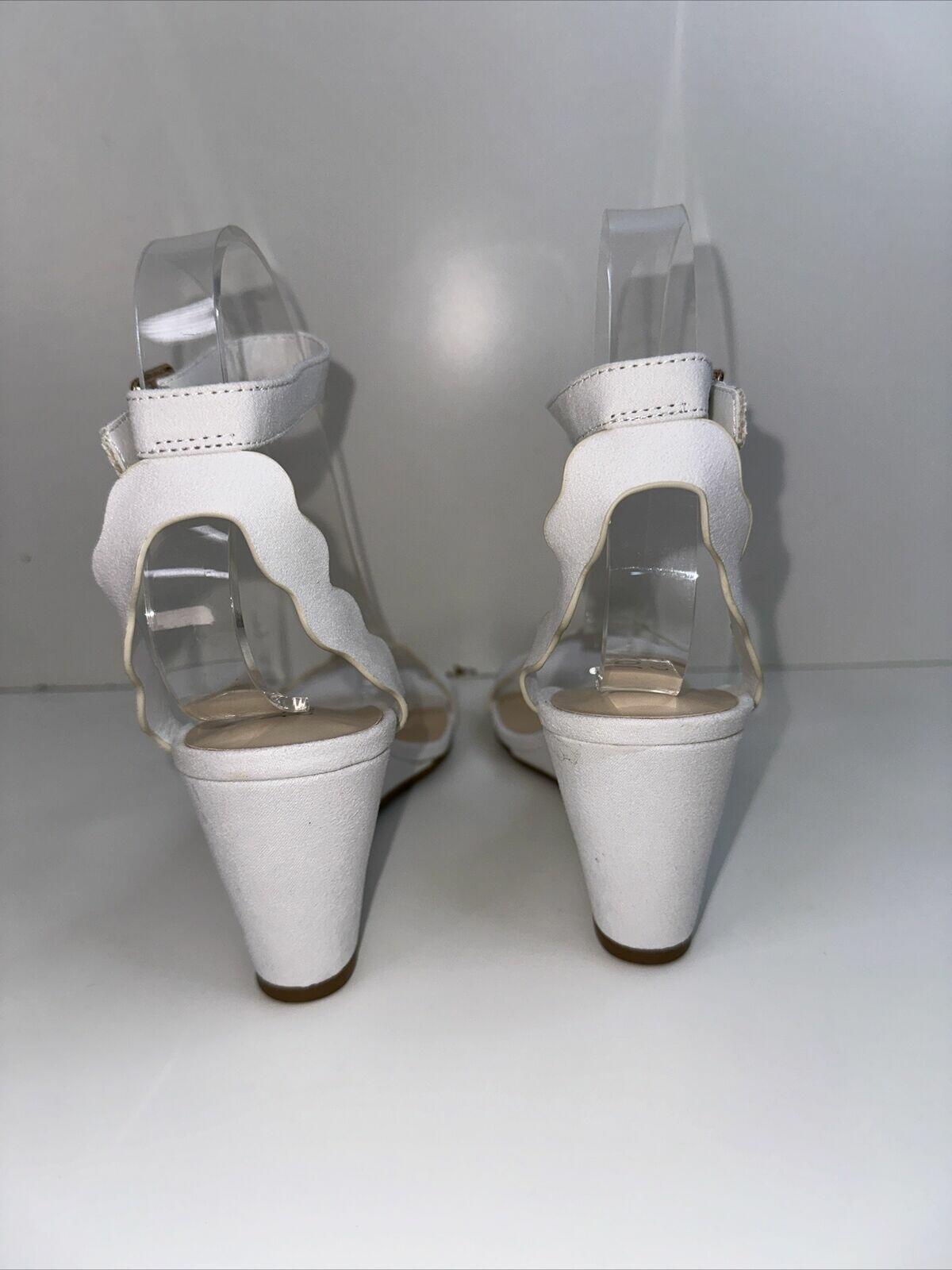 NWOB Journee Collection Womens Wedge Heel Loucia White Suede Sandal Size 7 - Like New