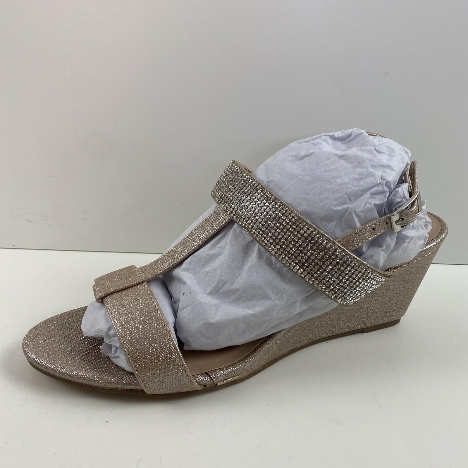 Paradox London JACEY Shimmer Leather Stud Wedge Slingback Sandals Womens Size 9M - Very Good