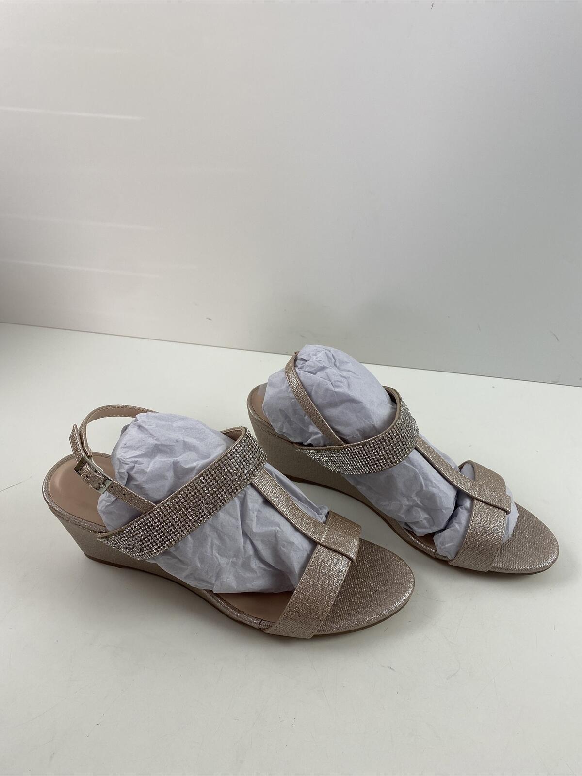 Paradox London JACEY Shimmer Leather Studded Wedge Slingback Sandals Womens Size 9 MThe shoes are in good condition