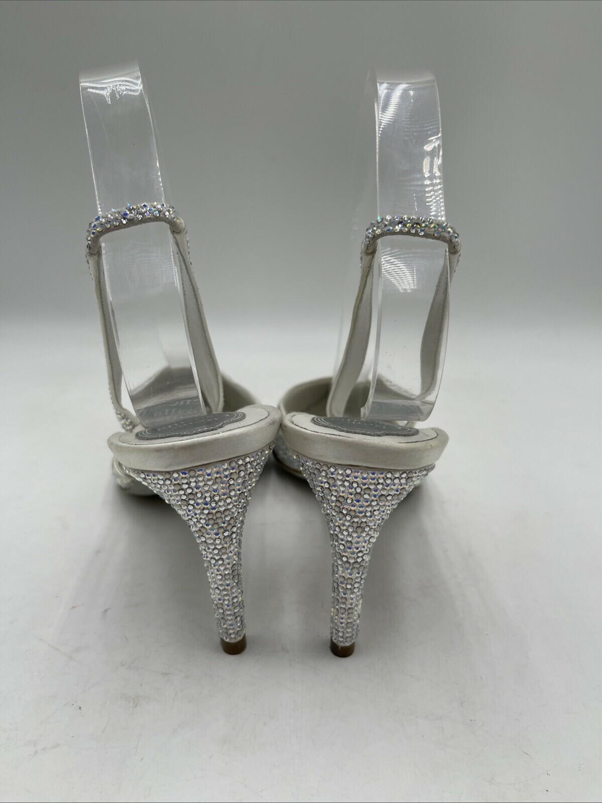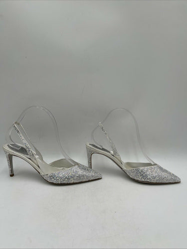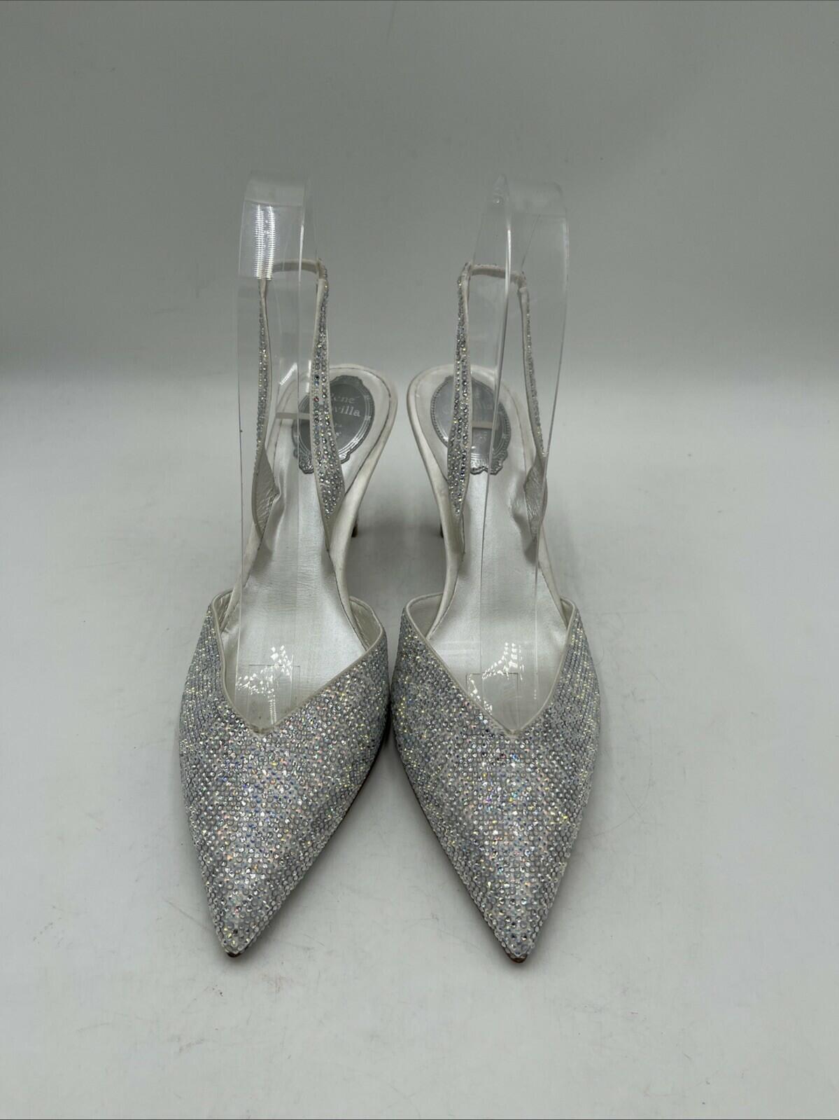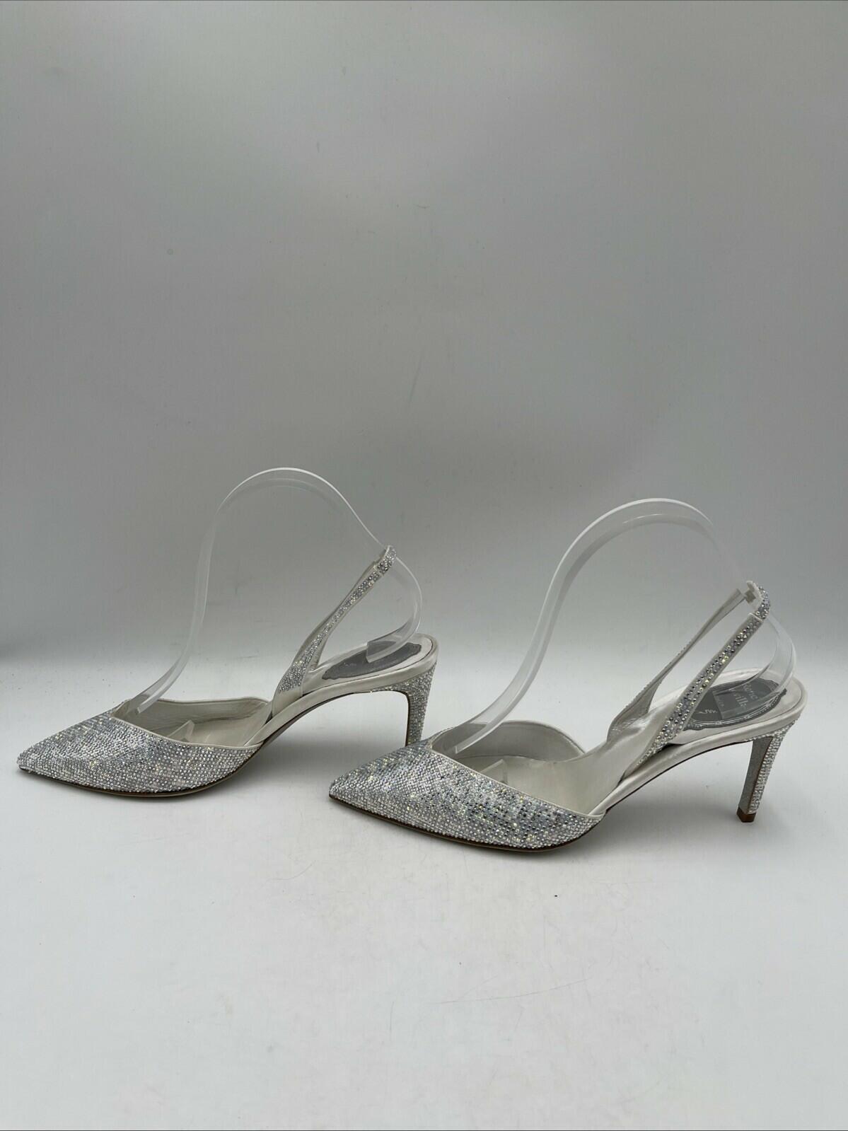 René Caovilla Embellished Crystal Pumps Crystal Slingback Silver Size 39.5 - Very Good