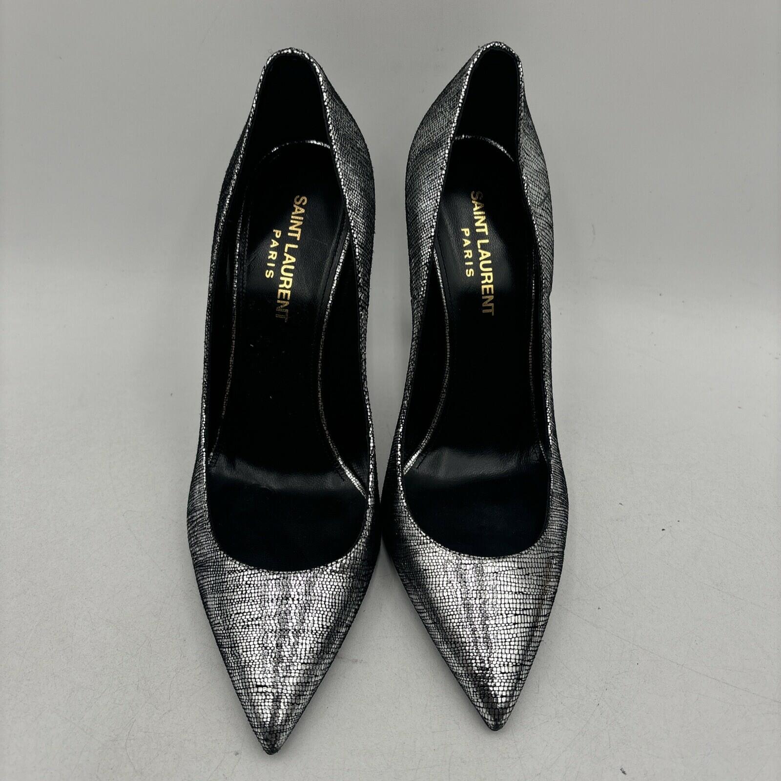 Saint Laurent Zoe Metallic Silver Pointed Toe High Heels Women’s Size 37.5 - Very Good - Ufashion Saint Laurent Zoe Metallic Silver Pointed Toe High Heels Women’s Size 37.5 - Very Good - Ufashion
