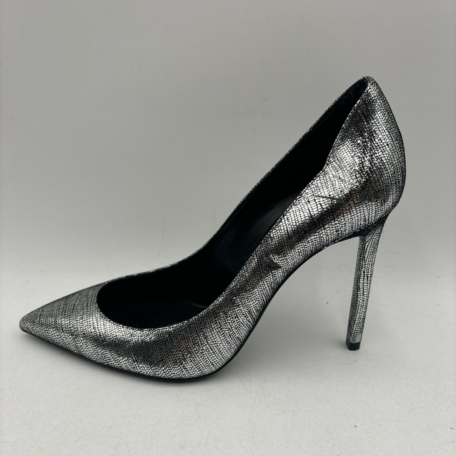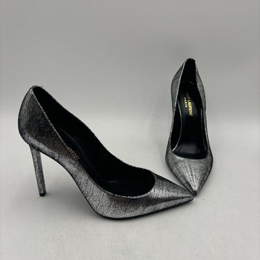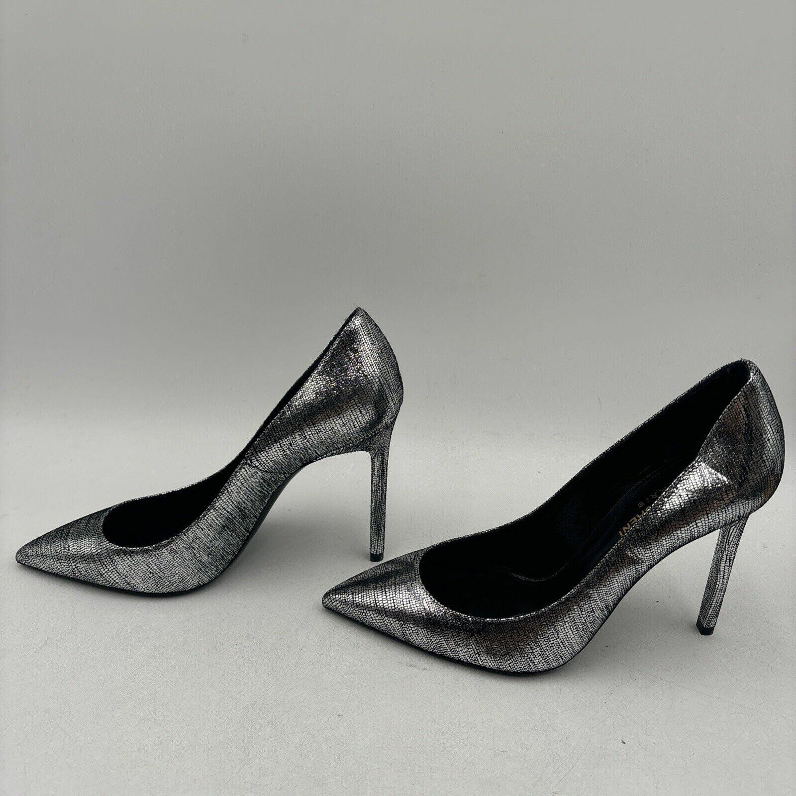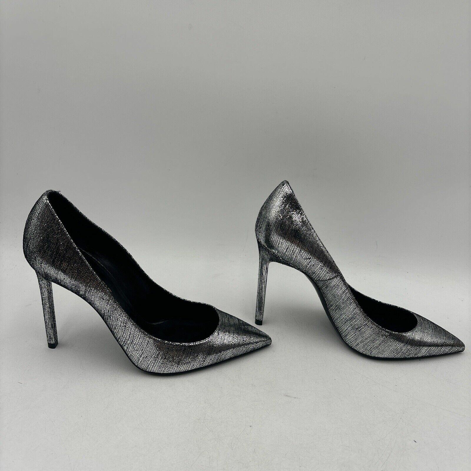 Saint Laurent Zoe Metallic Silver Pointed Toe High Heels Women’s Size 37.5 - Very Good