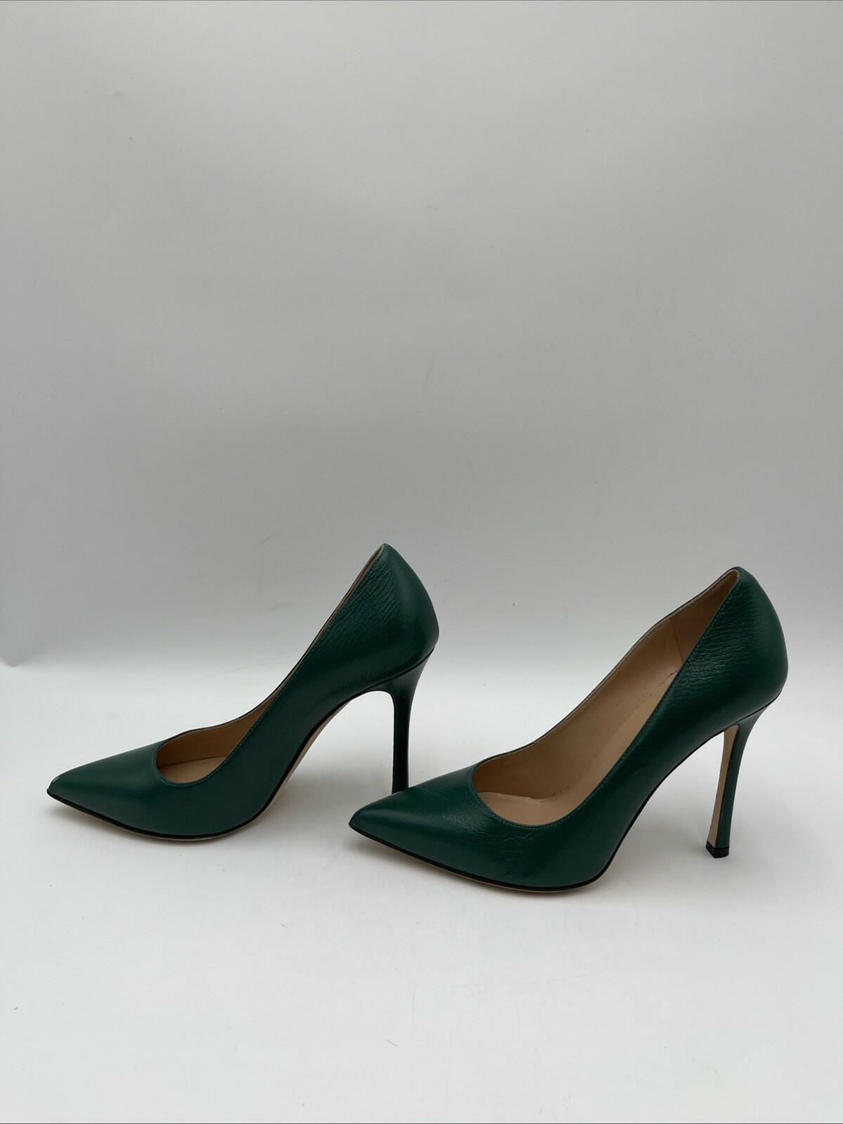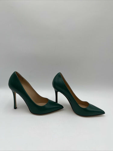 Sergio Rossi GODIVA Green Leather Point Toe Slip On Stiletto Pumps, Size 37 - Very Good