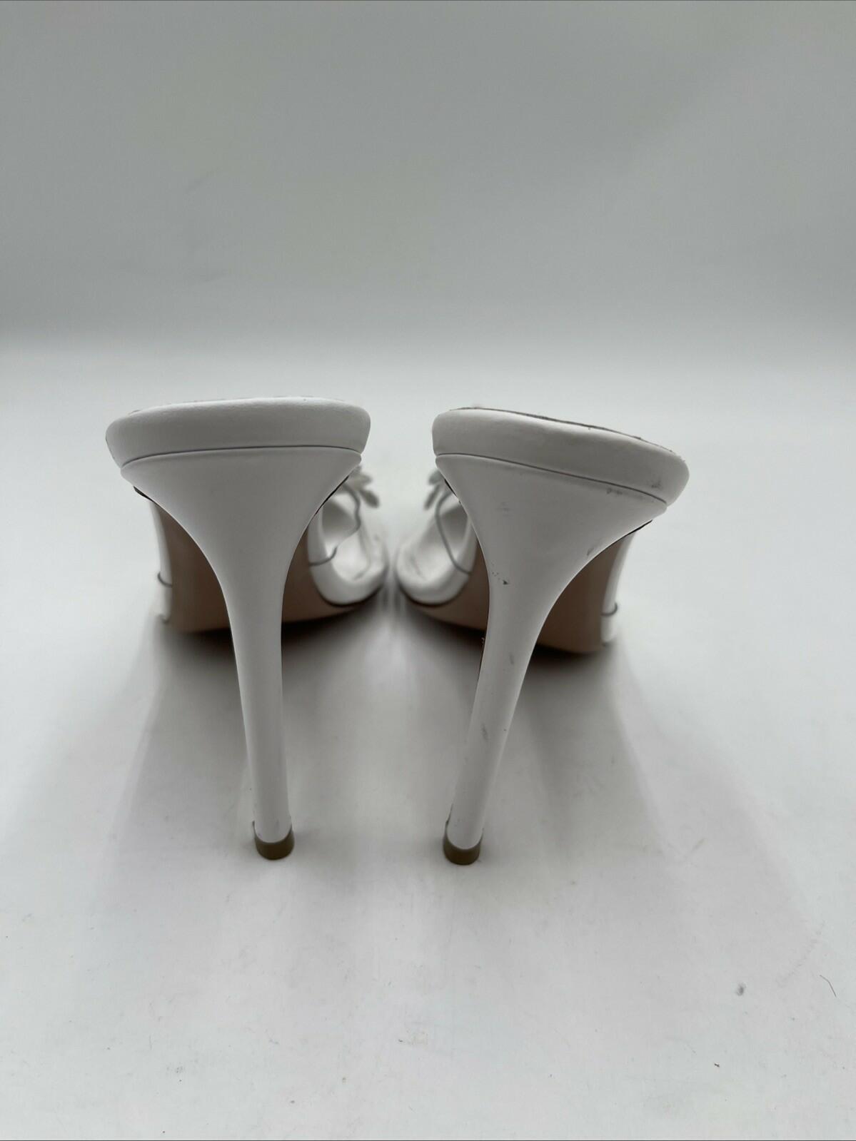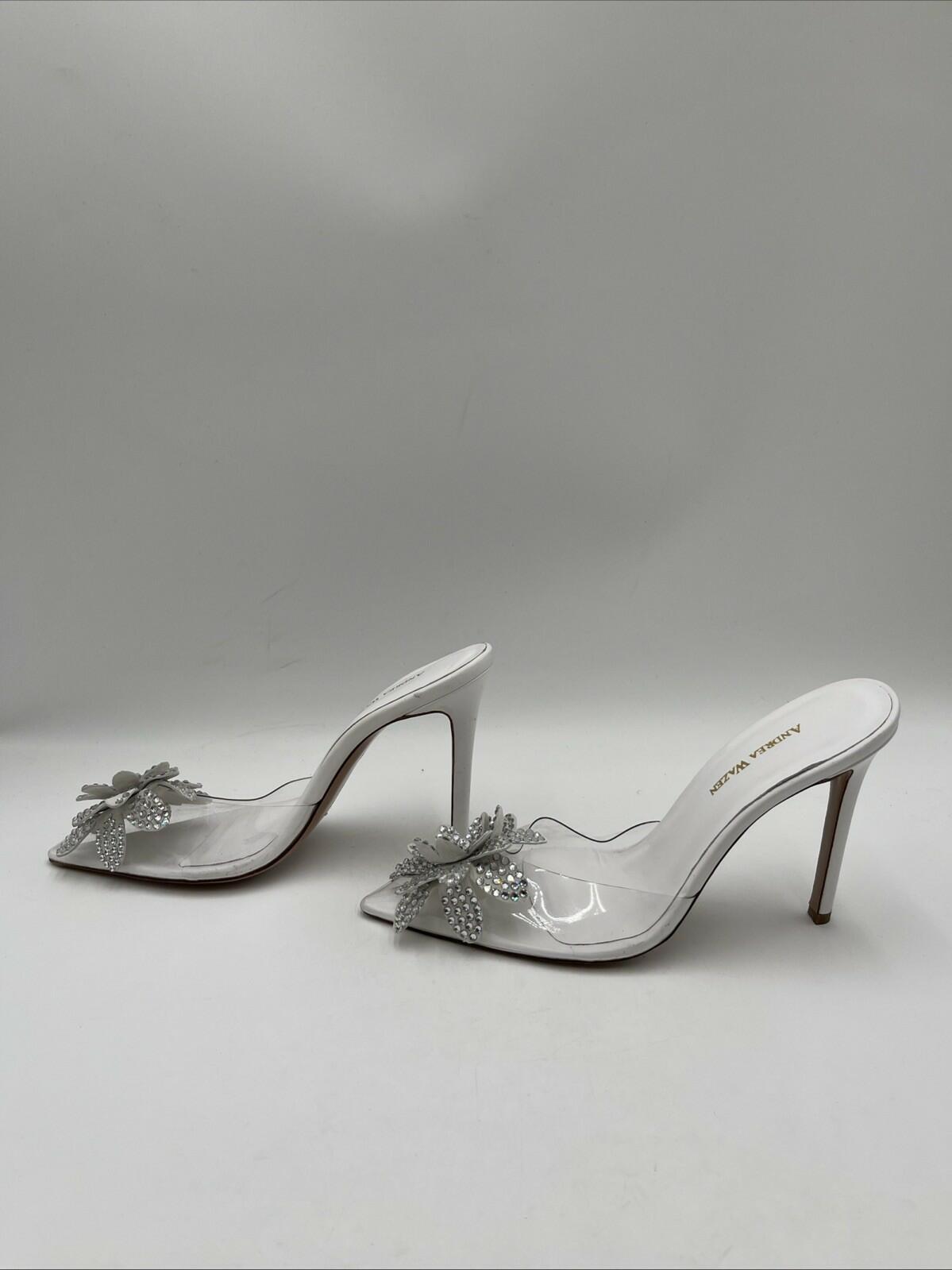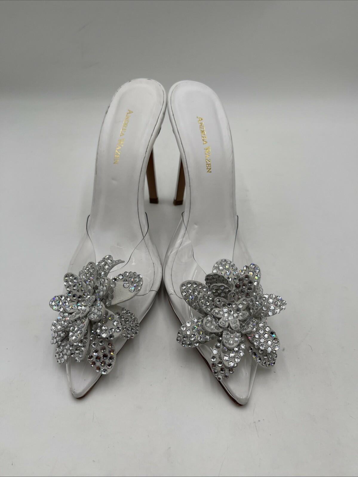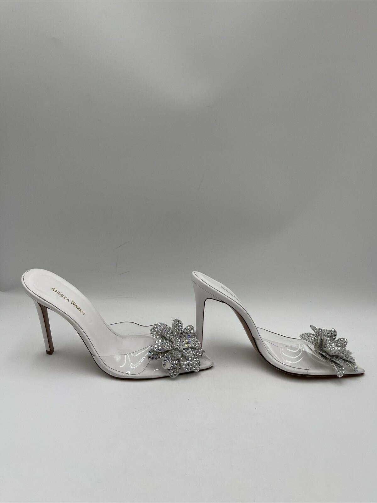 Women’s Andrea Wazen PVC Crystal Embellishments Mules White Size 40 - Very Good
